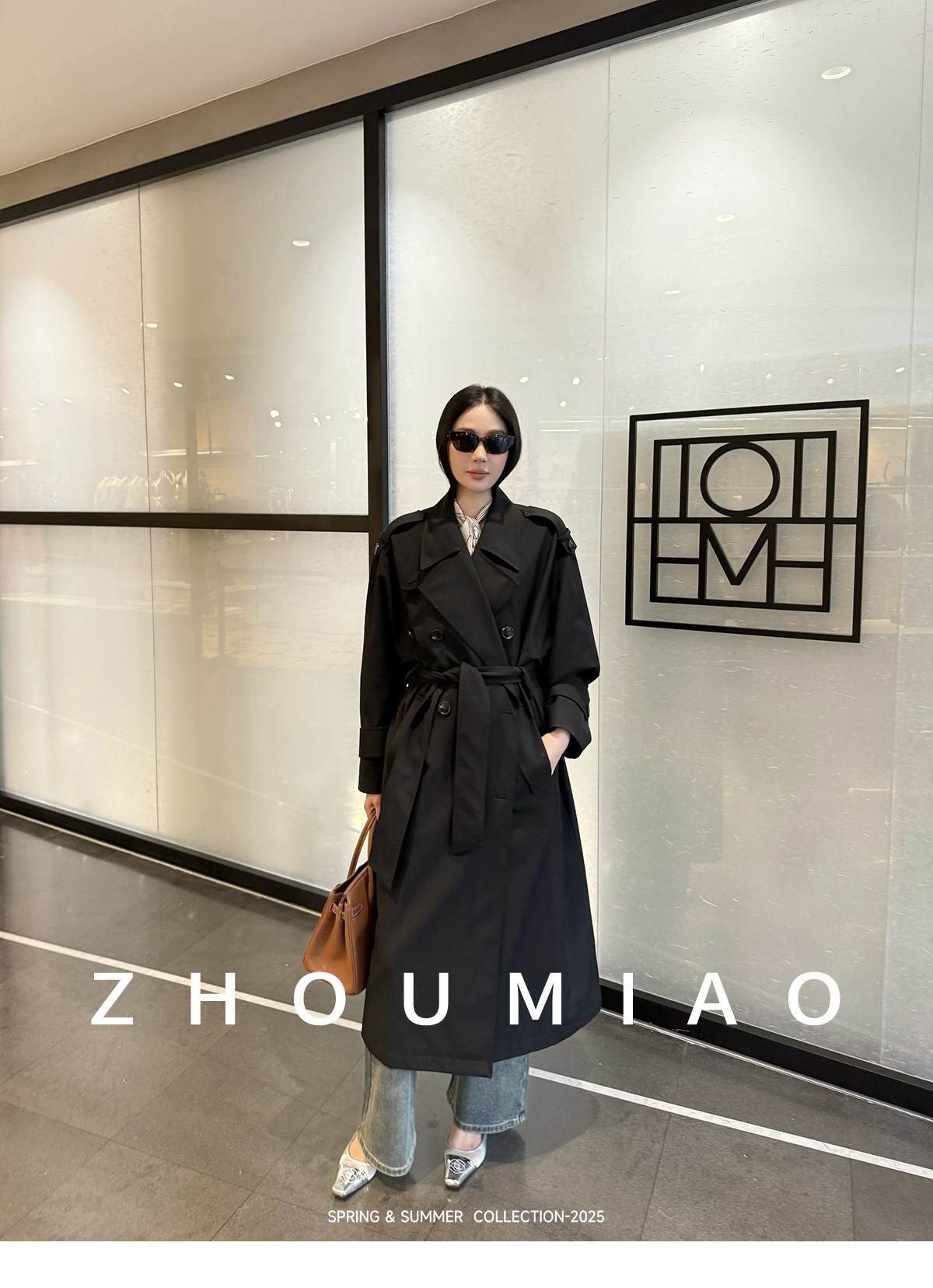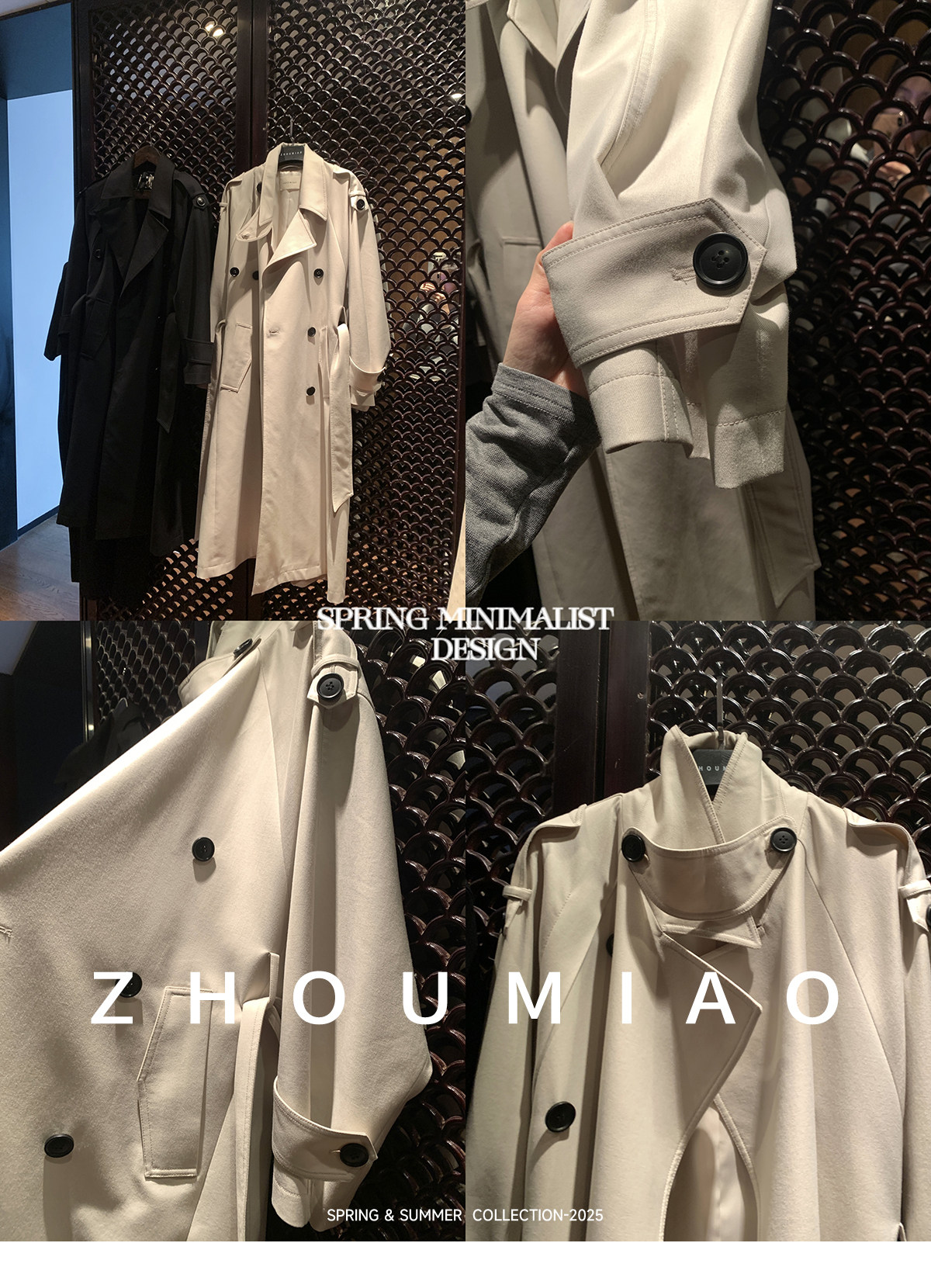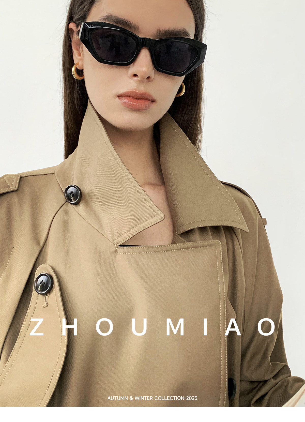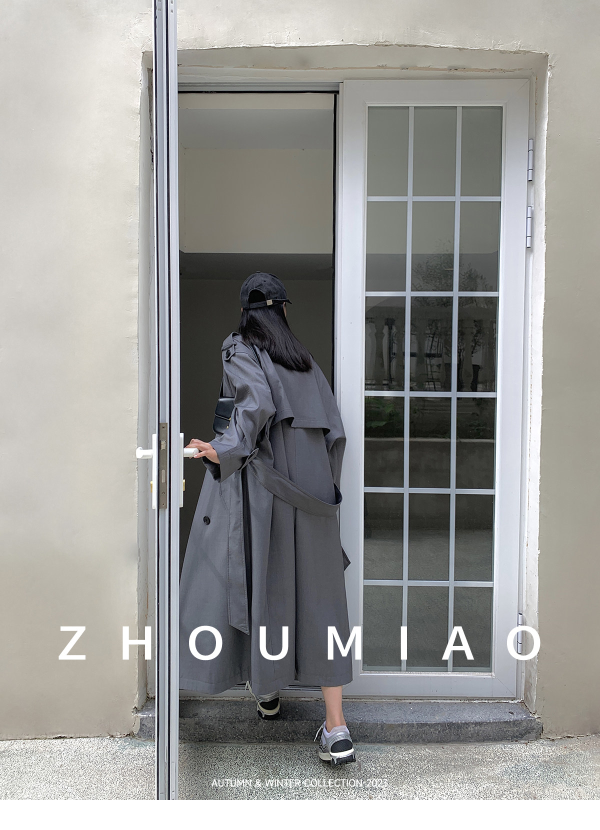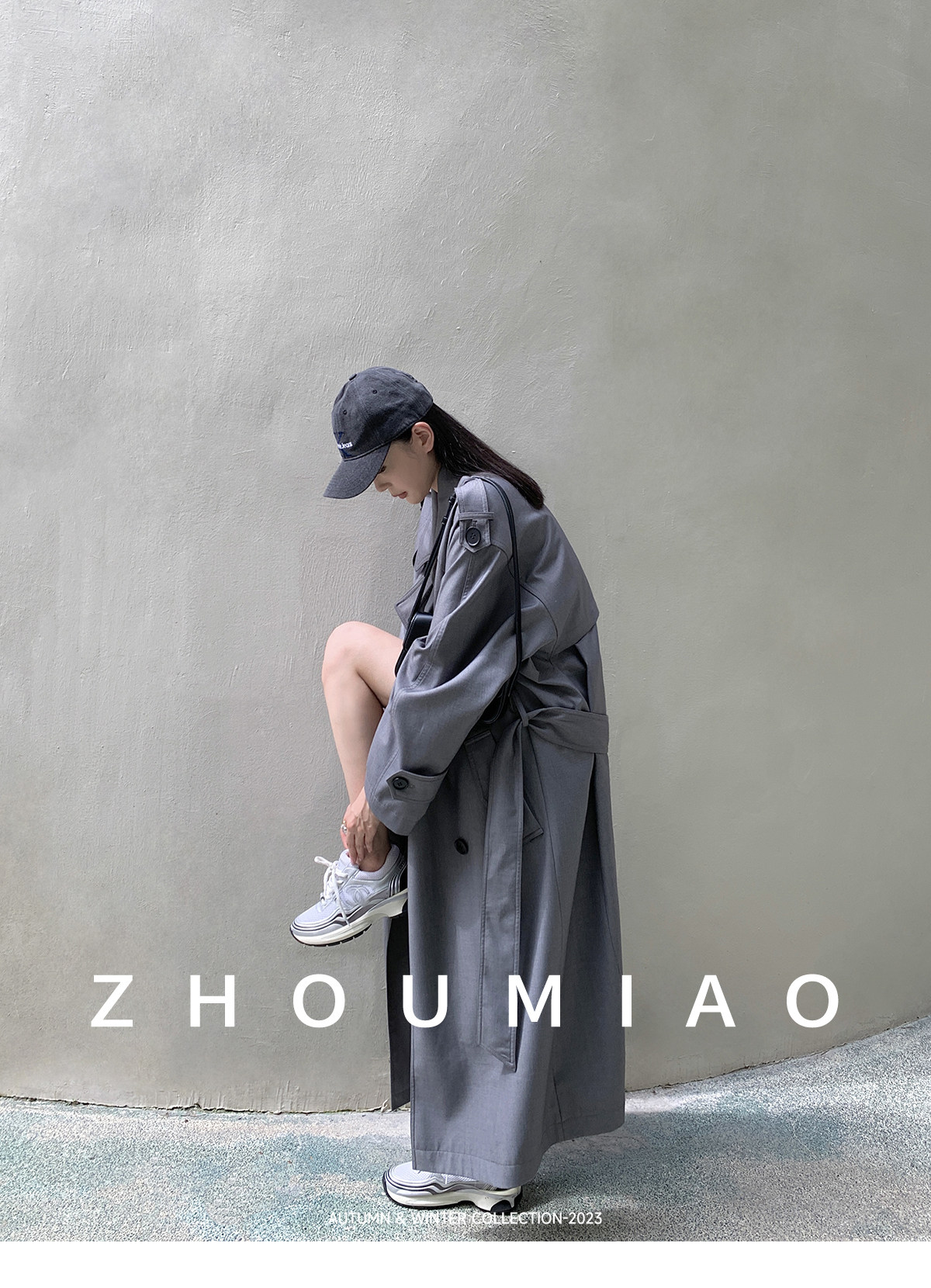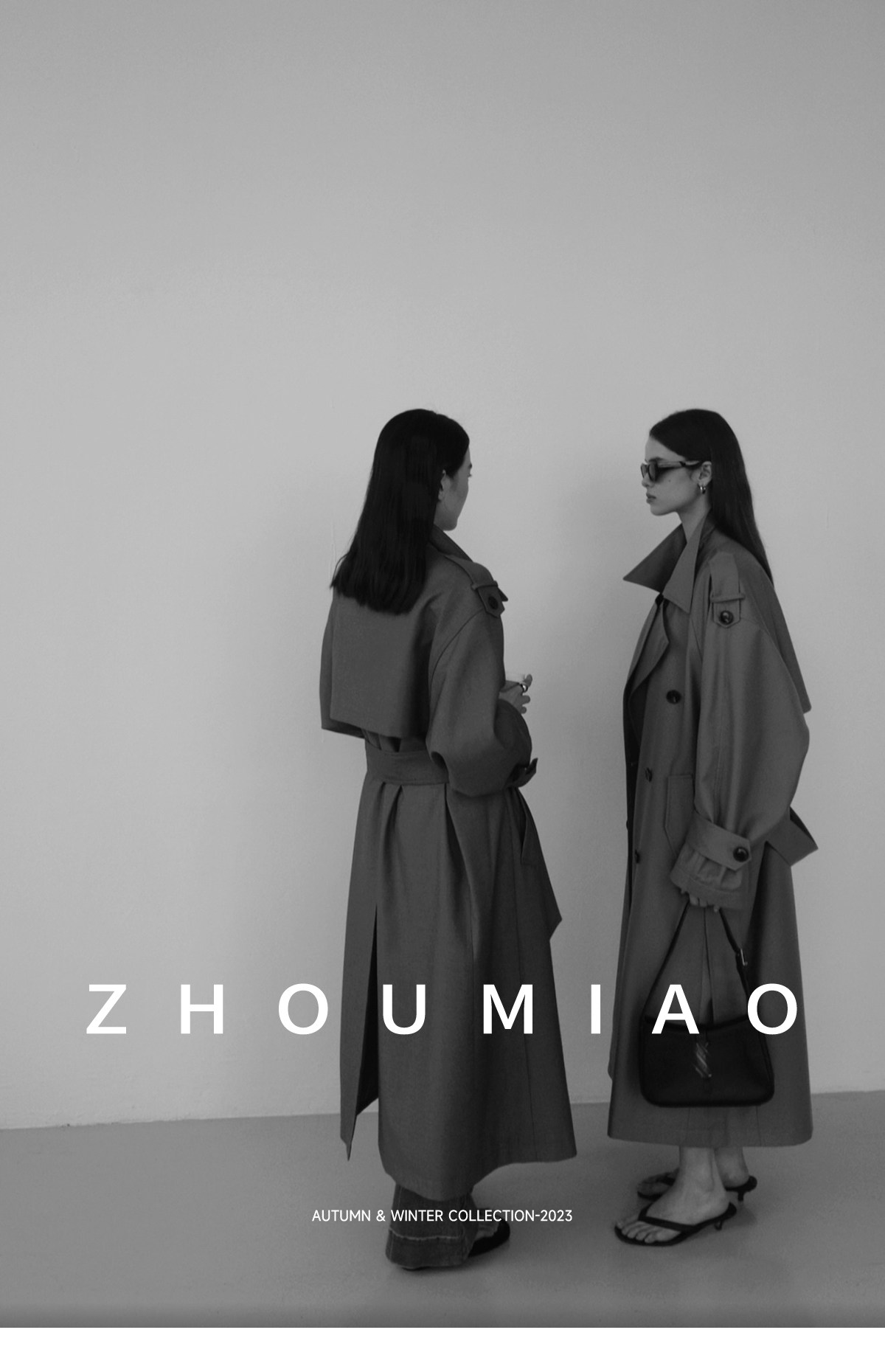周淼ZHOUMIAO巴黎旧梦经典廓形大翻领双排扣中长款气质风衣外套女