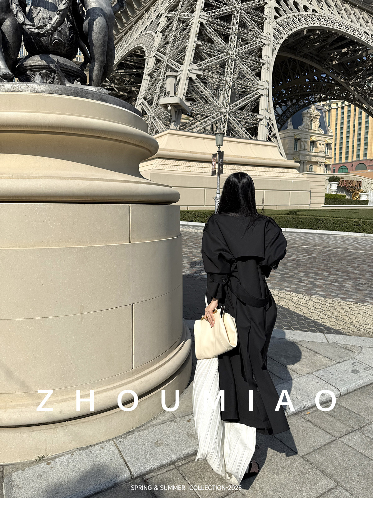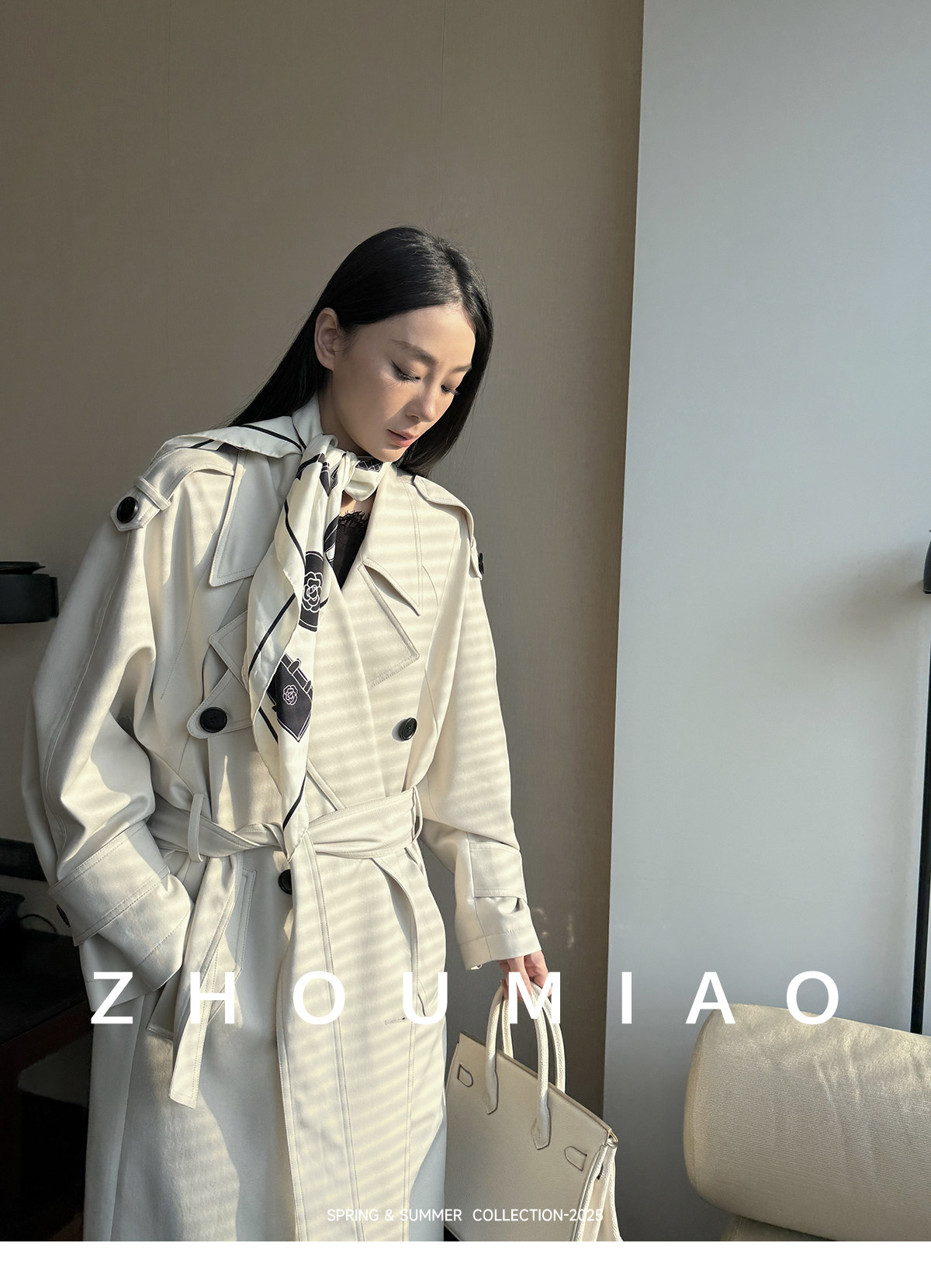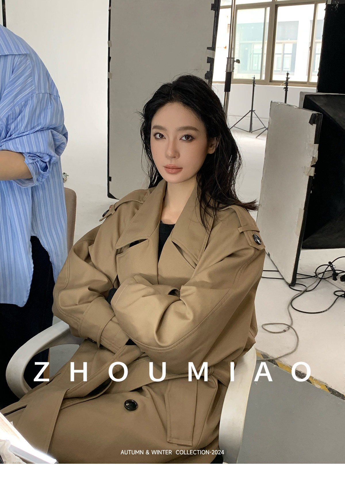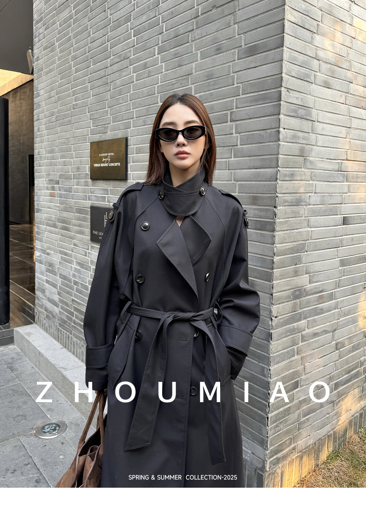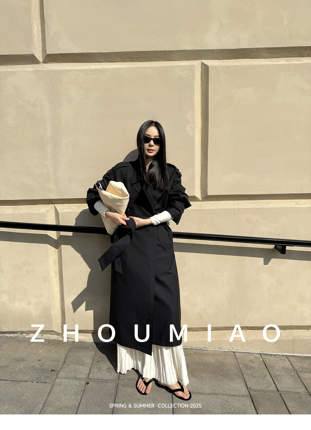 周淼ZHOUMIAO巴黎旧梦经典廓形大翻领双排扣中长款气质风衣外套女
