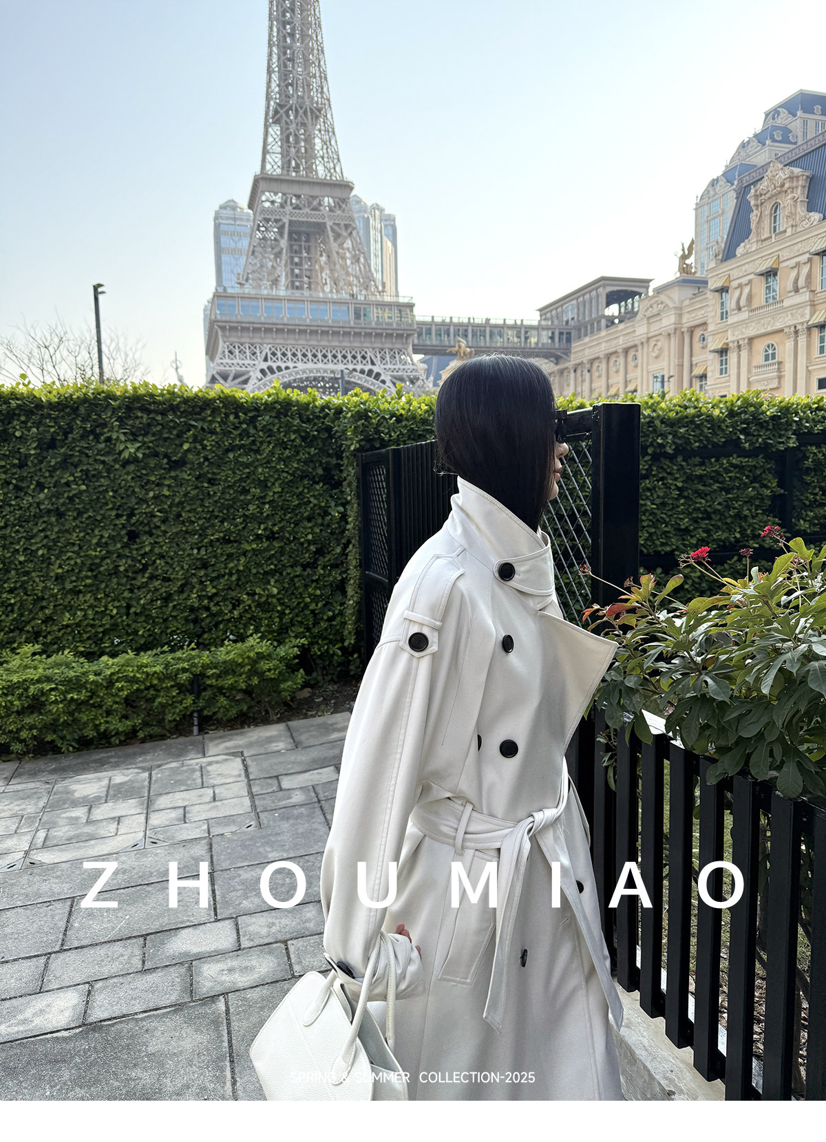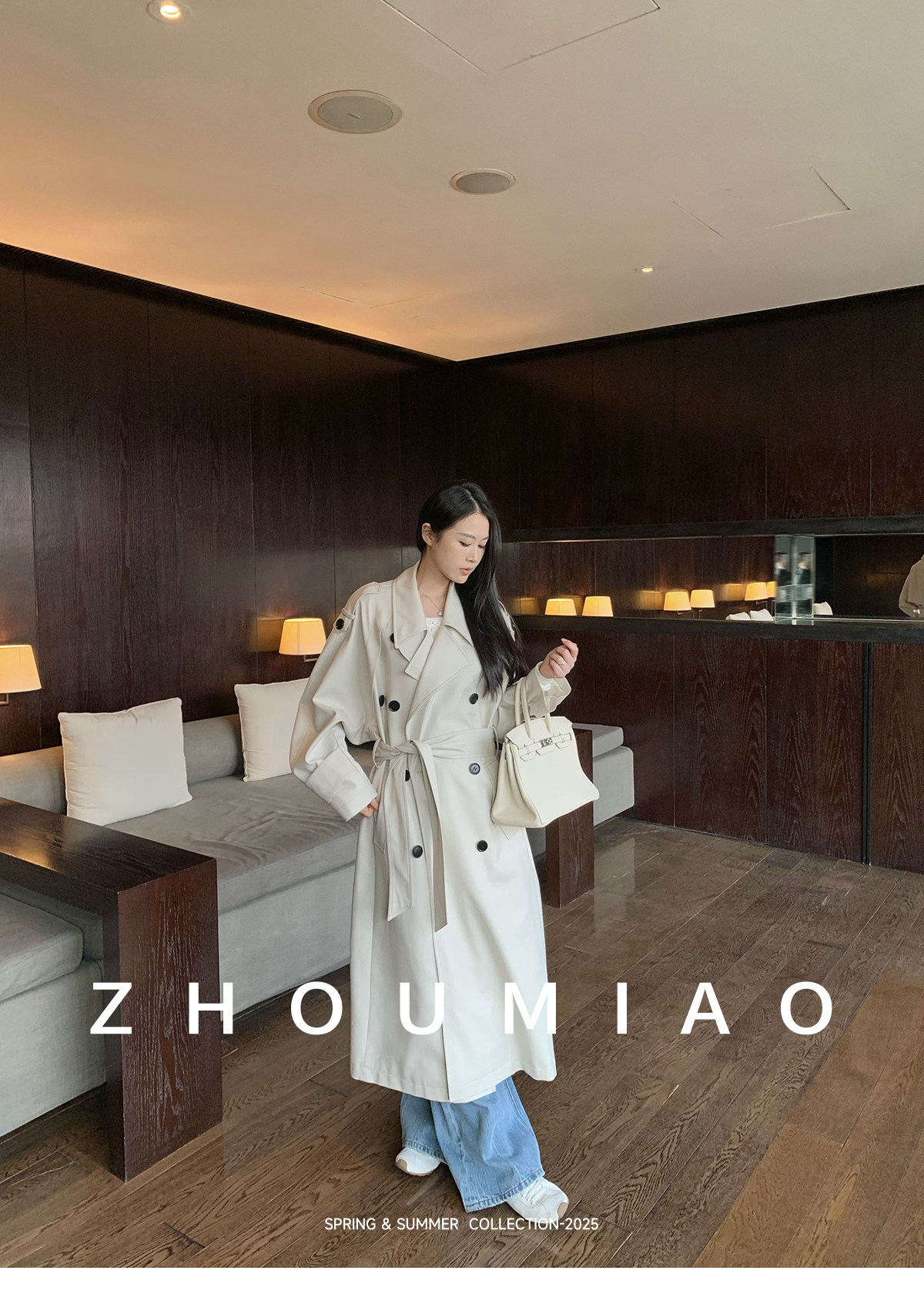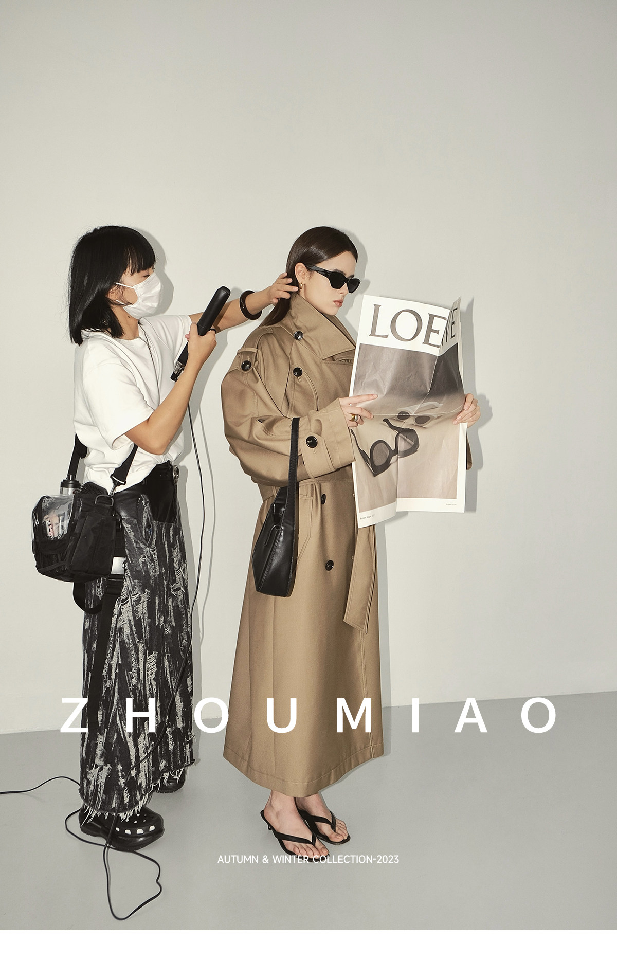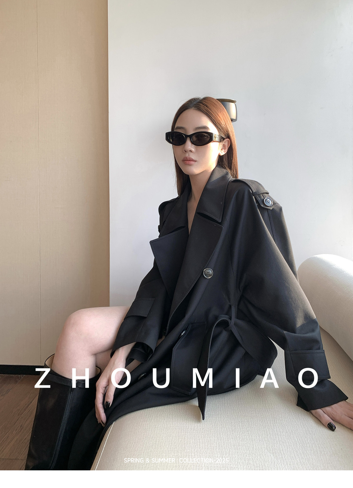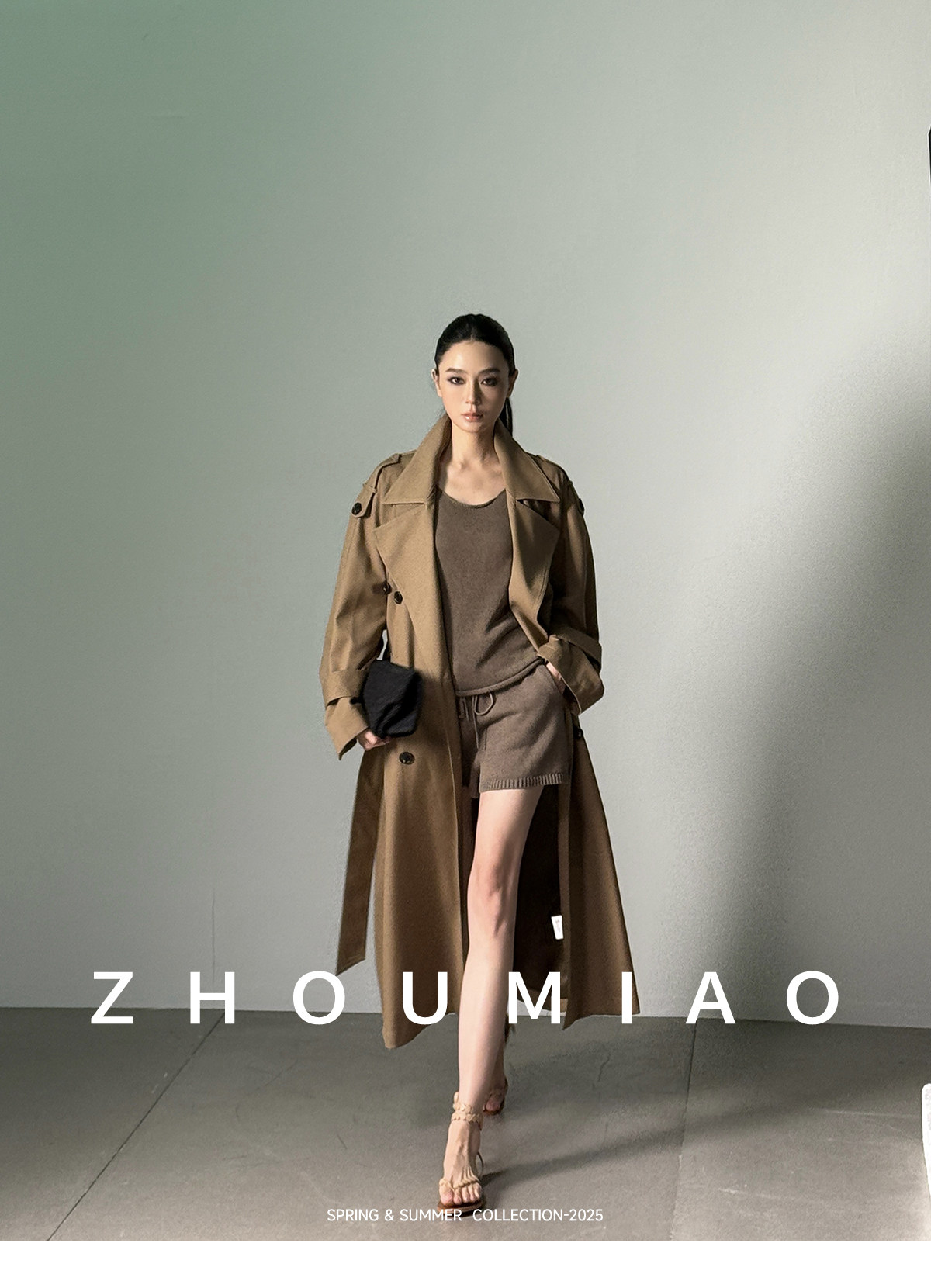 周淼ZHOUMIAO巴黎旧梦经典廓形大翻领双排扣中长款气质风衣外套女