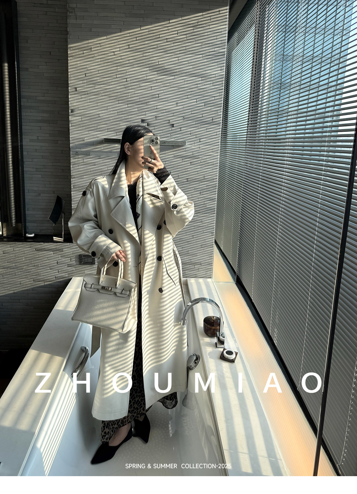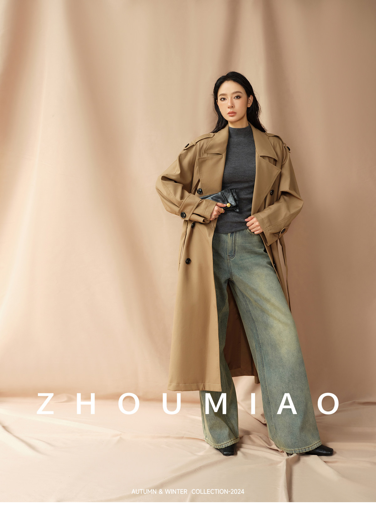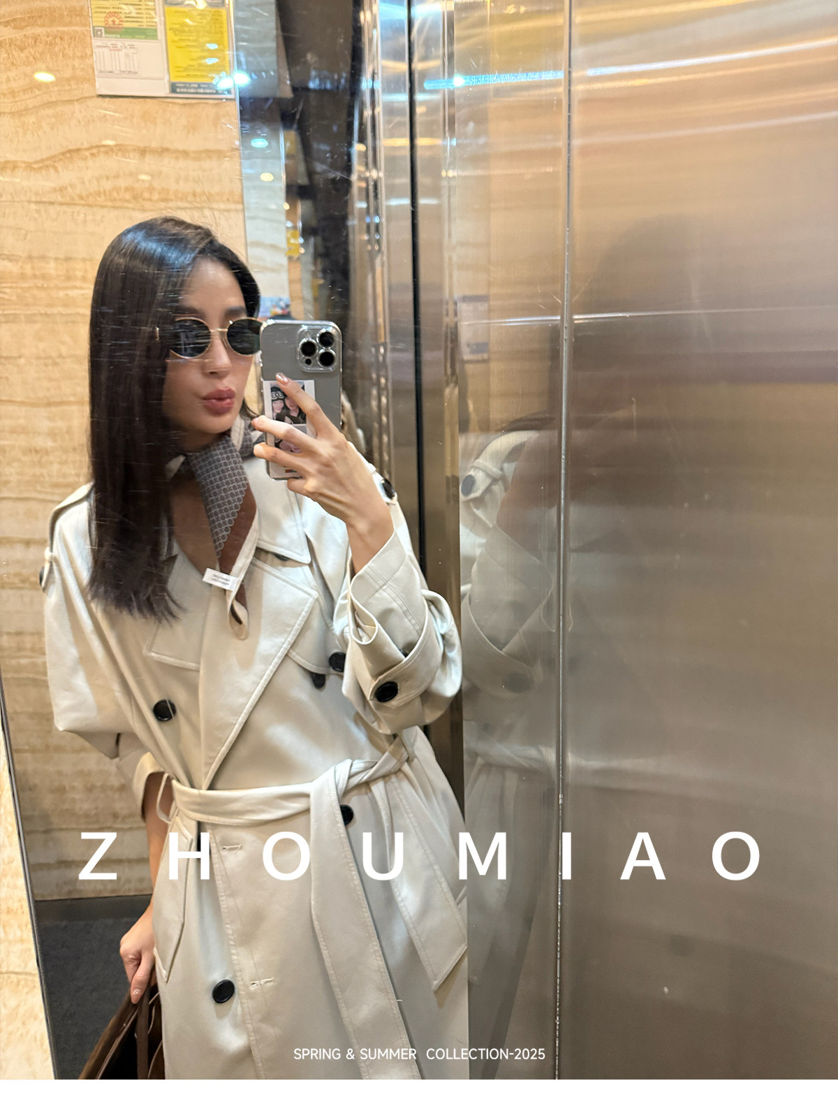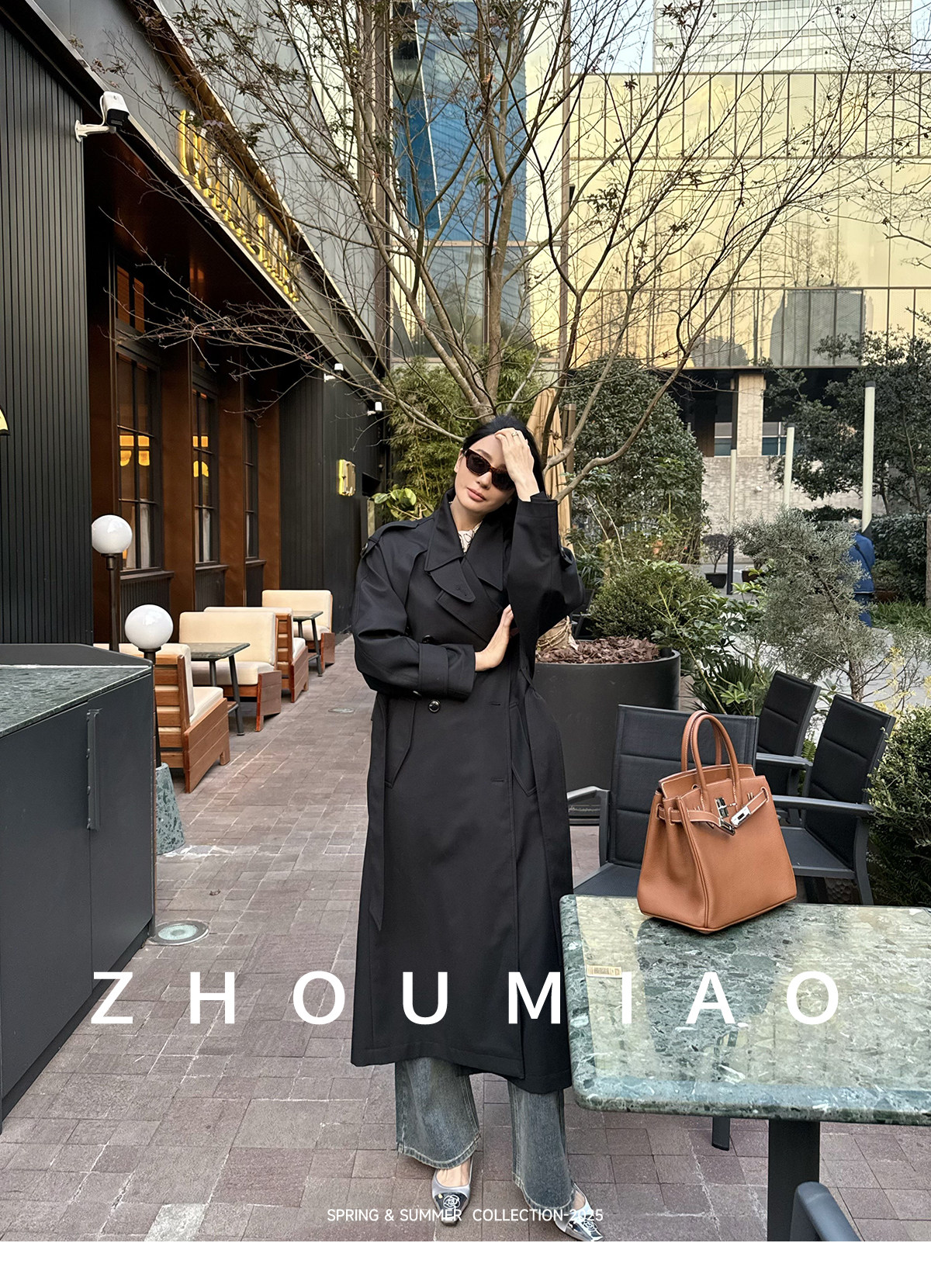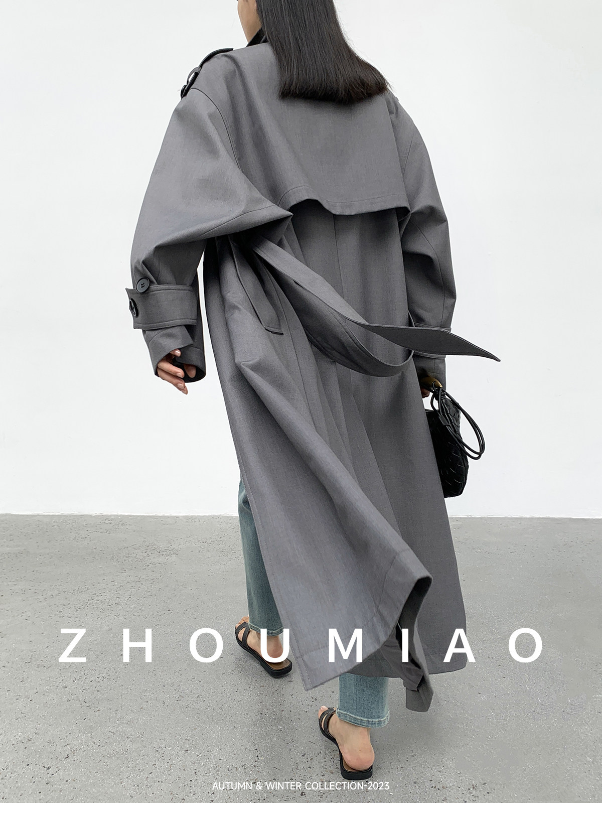 周淼ZHOUMIAO巴黎旧梦经典廓形大翻领双排扣中长款气质风衣外套女