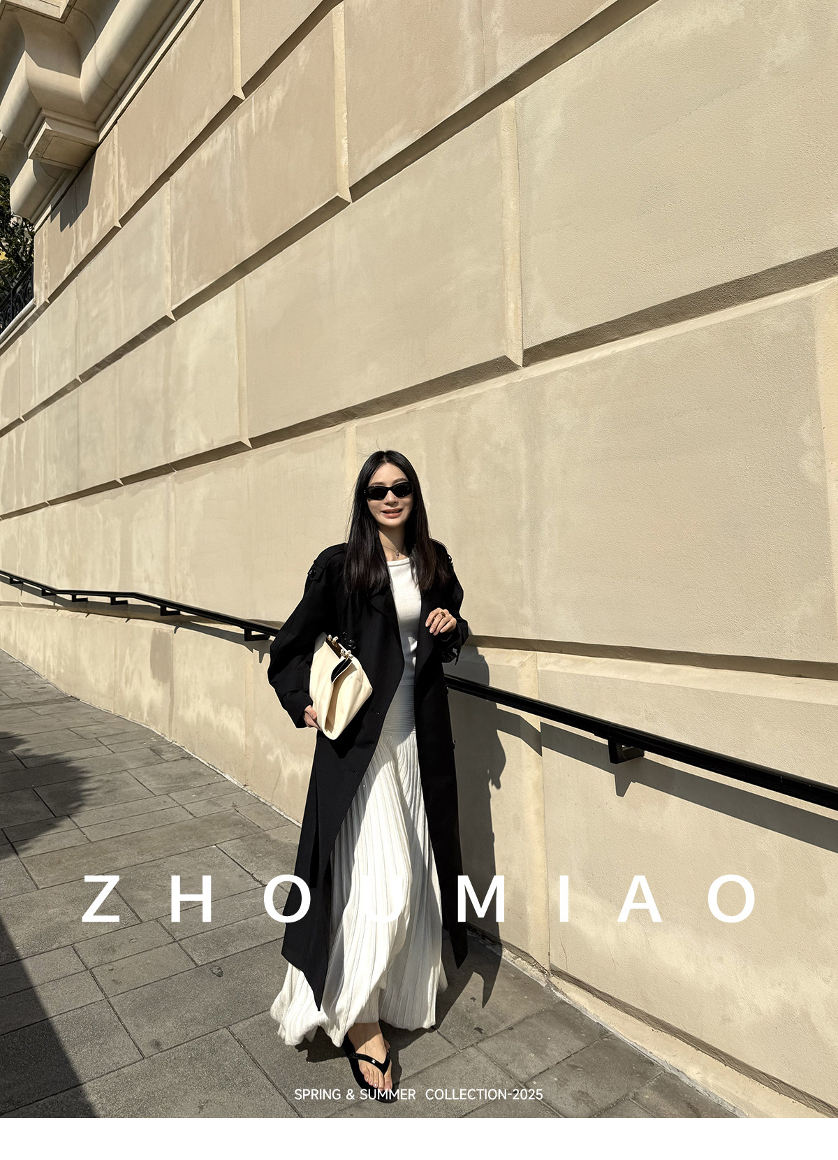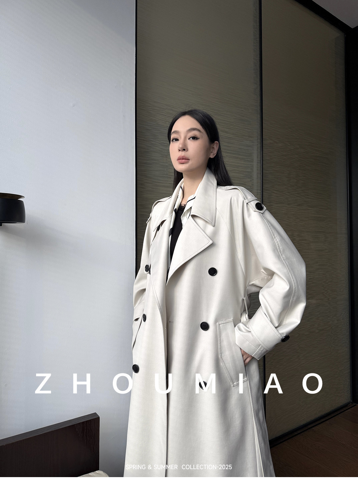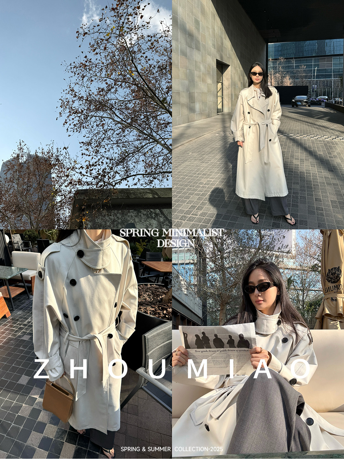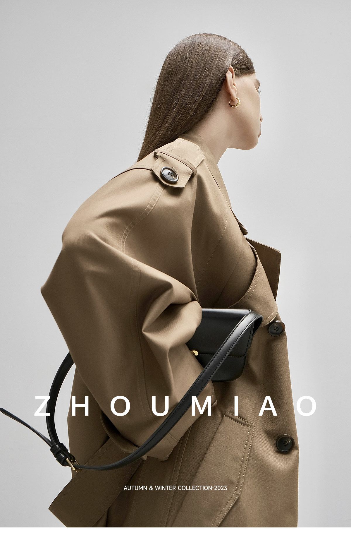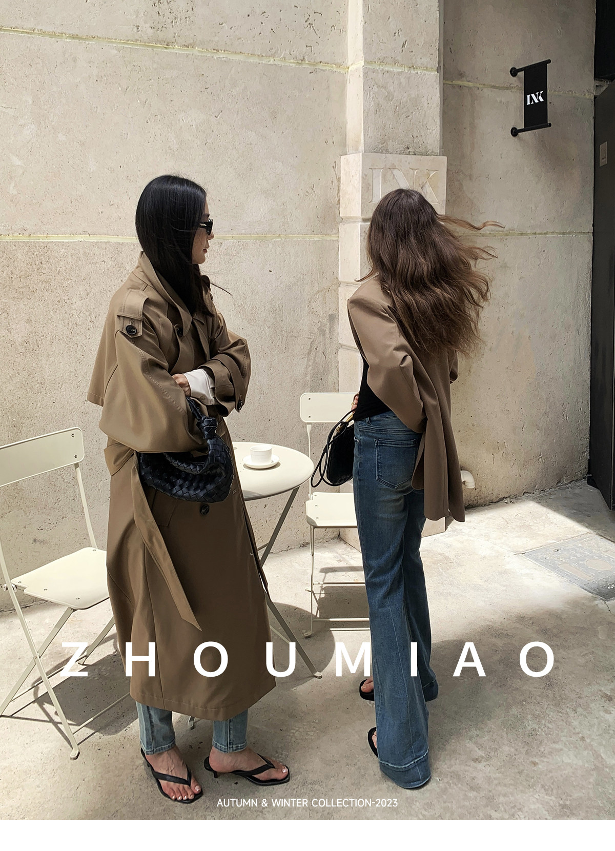 周淼ZHOUMIAO巴黎旧梦经典廓形大翻领双排扣中长款气质风衣外套女