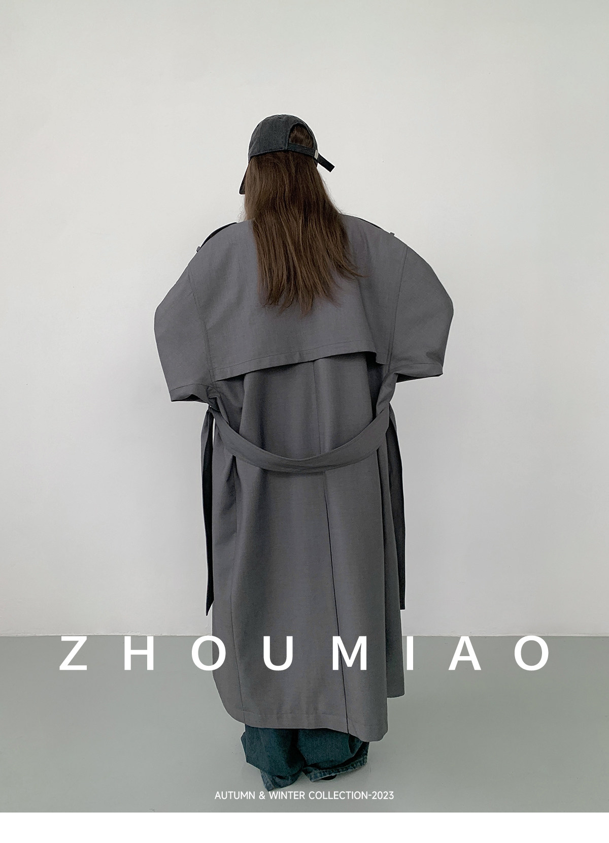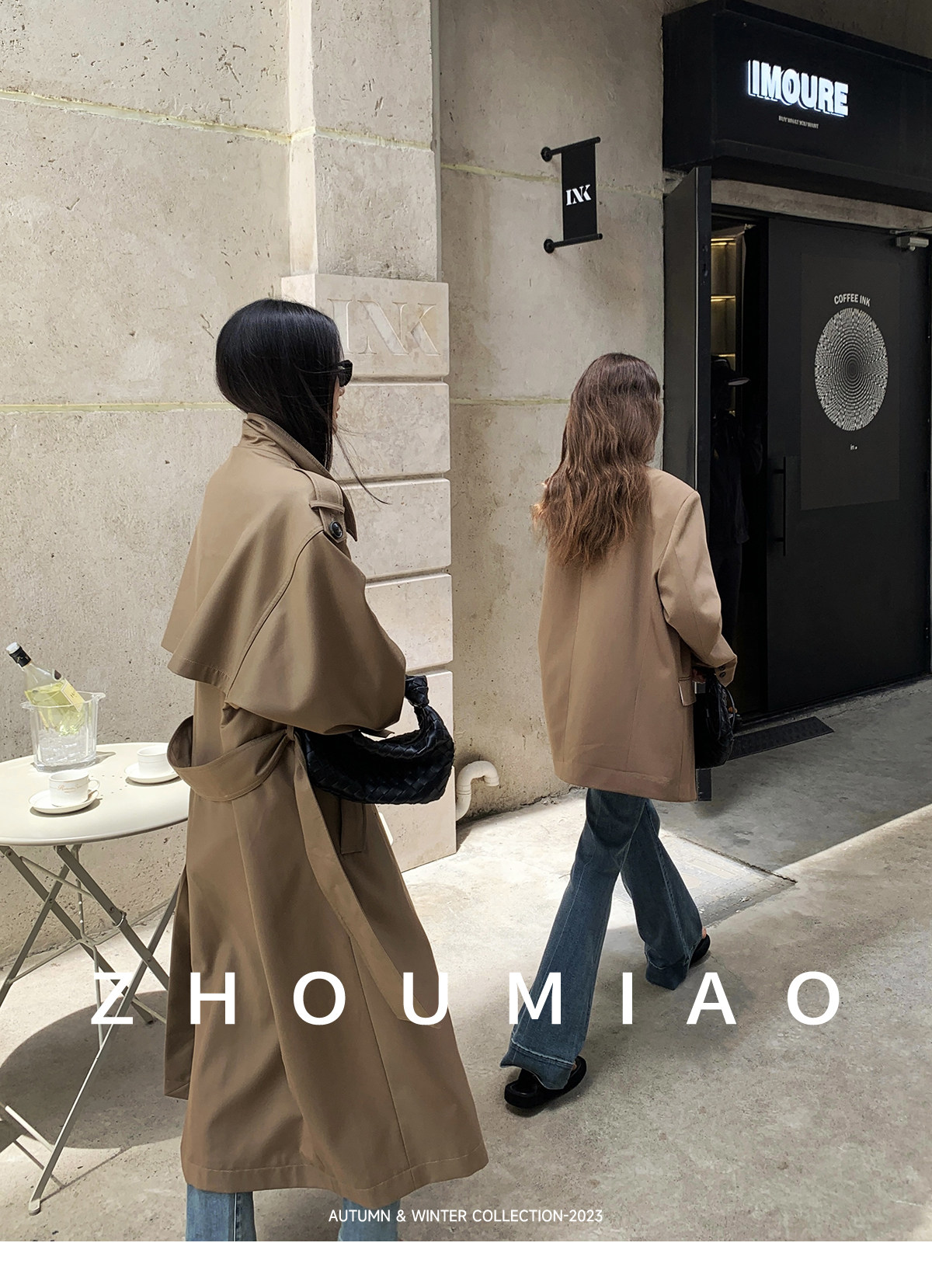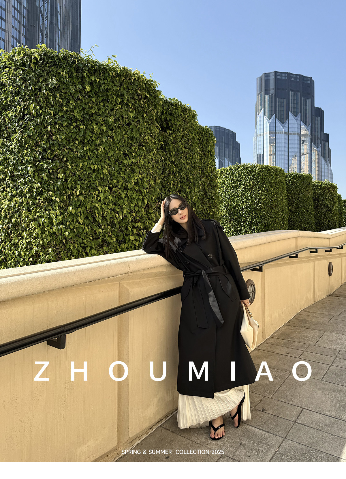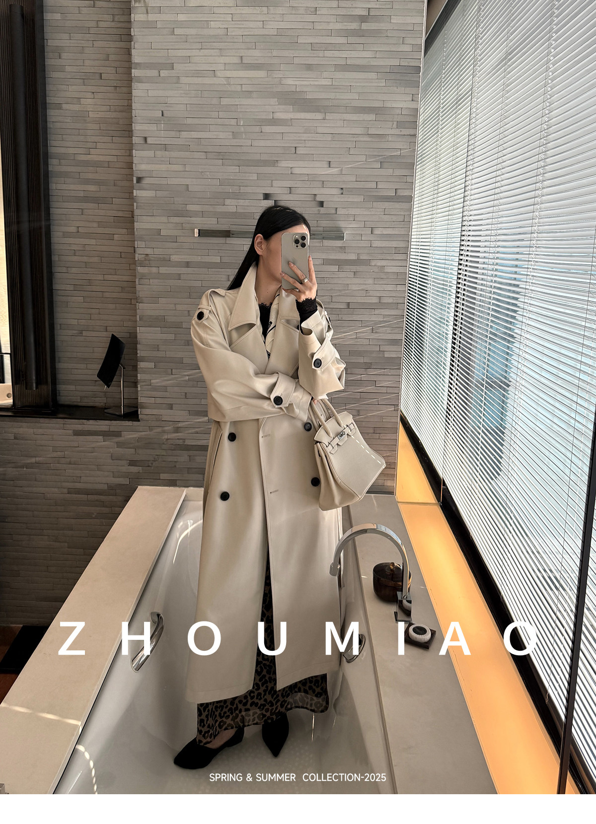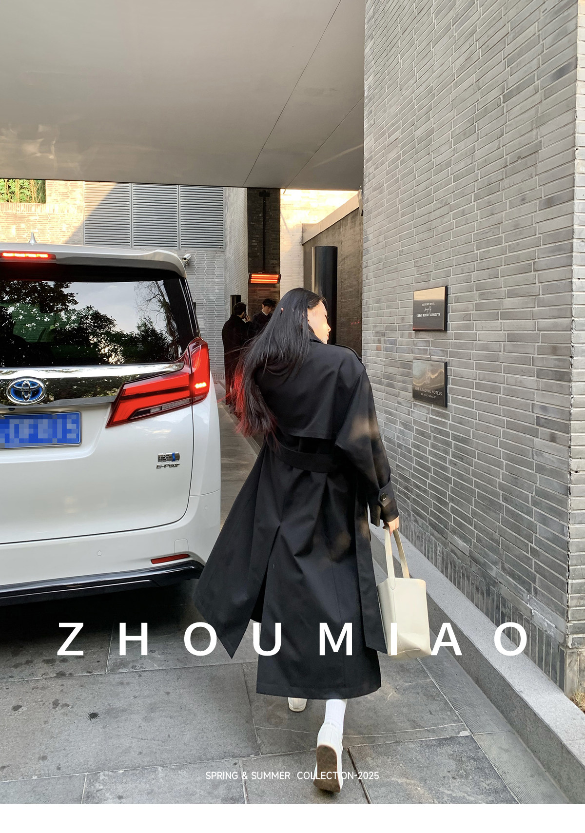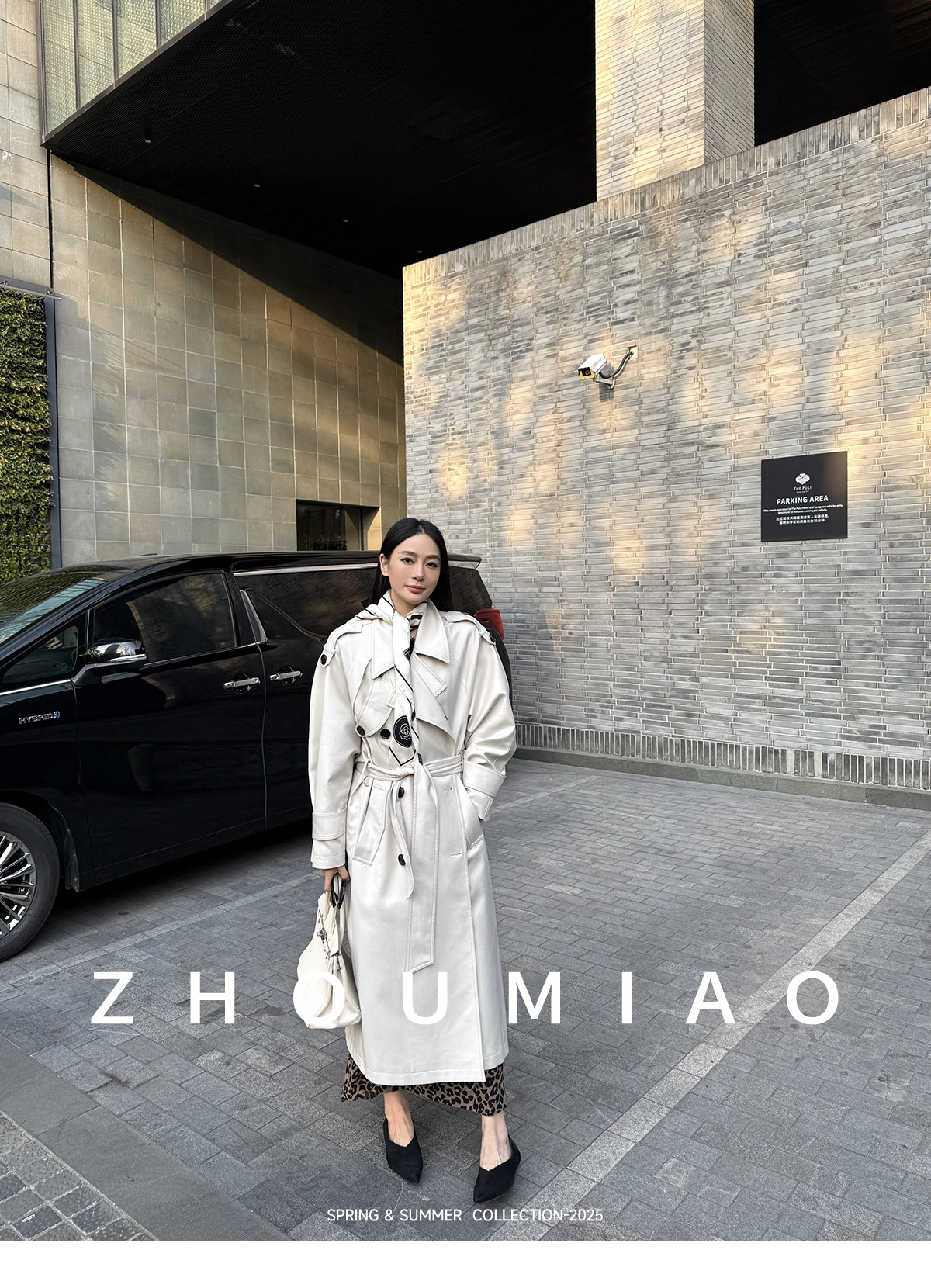 周淼ZHOUMIAO巴黎旧梦经典廓形大翻领双排扣中长款气质风衣外套女