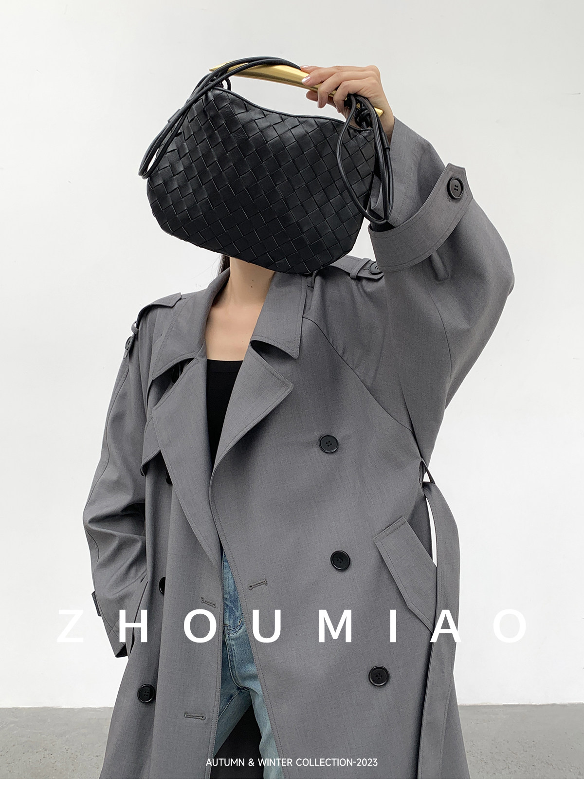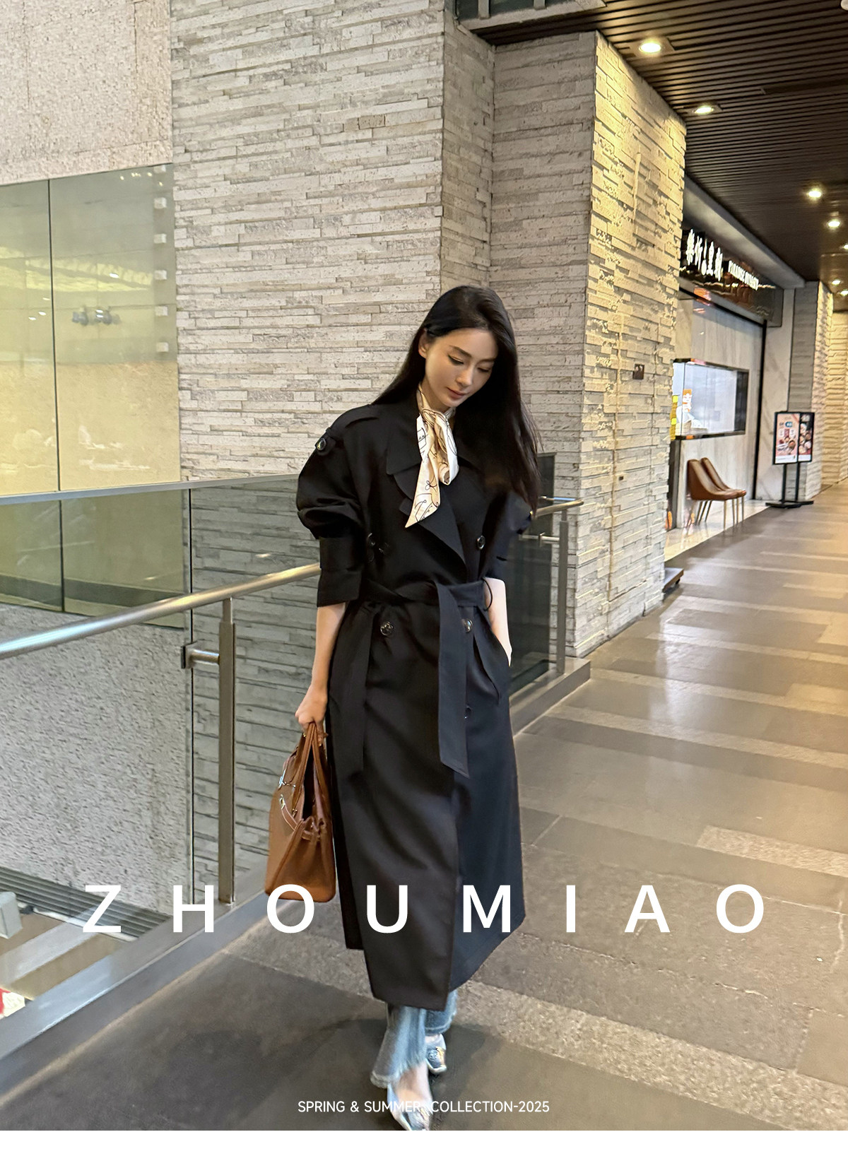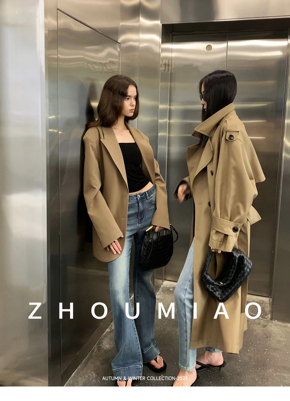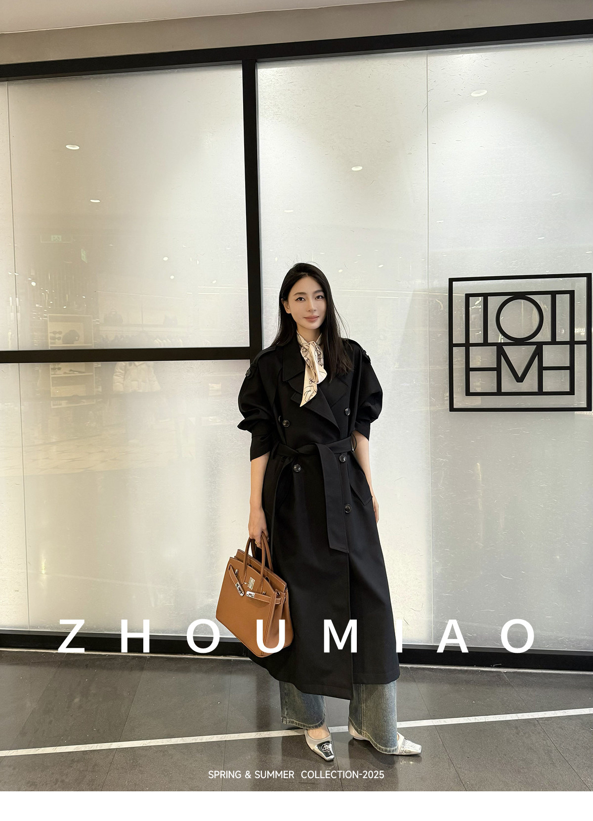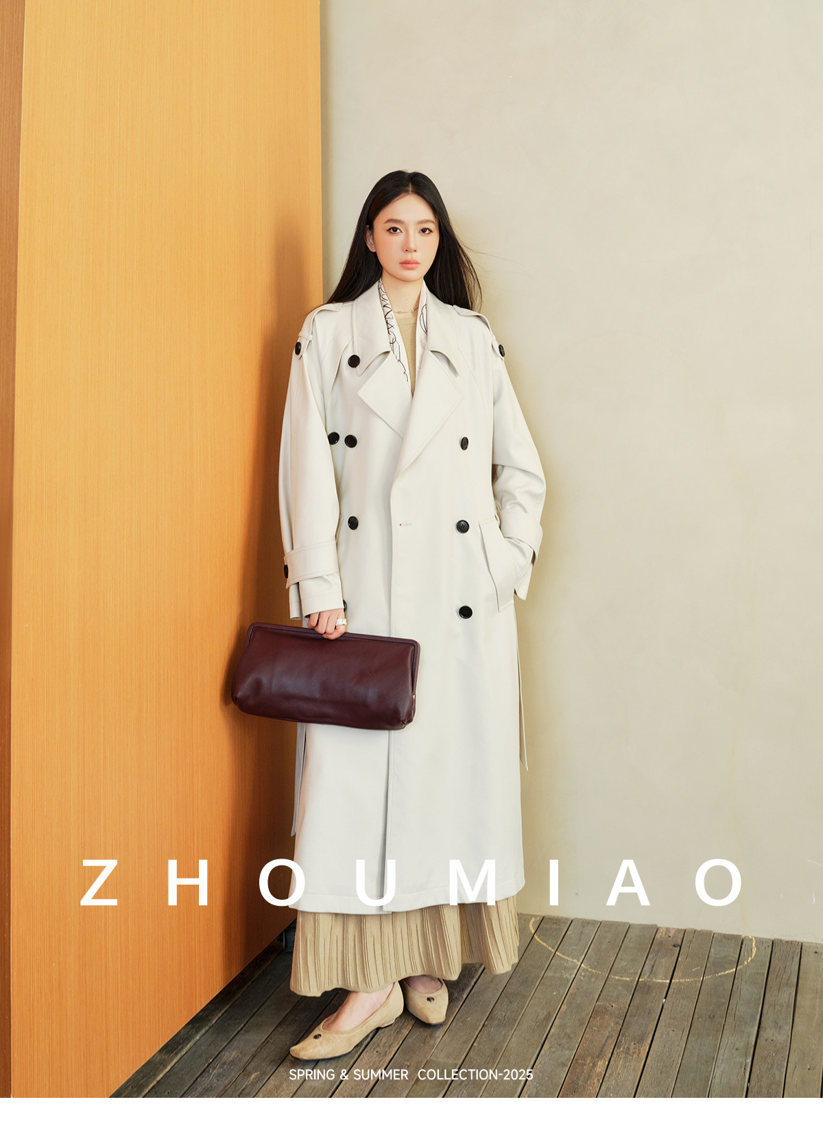 周淼ZHOUMIAO巴黎旧梦经典廓形大翻领双排扣中长款气质风衣外套女
