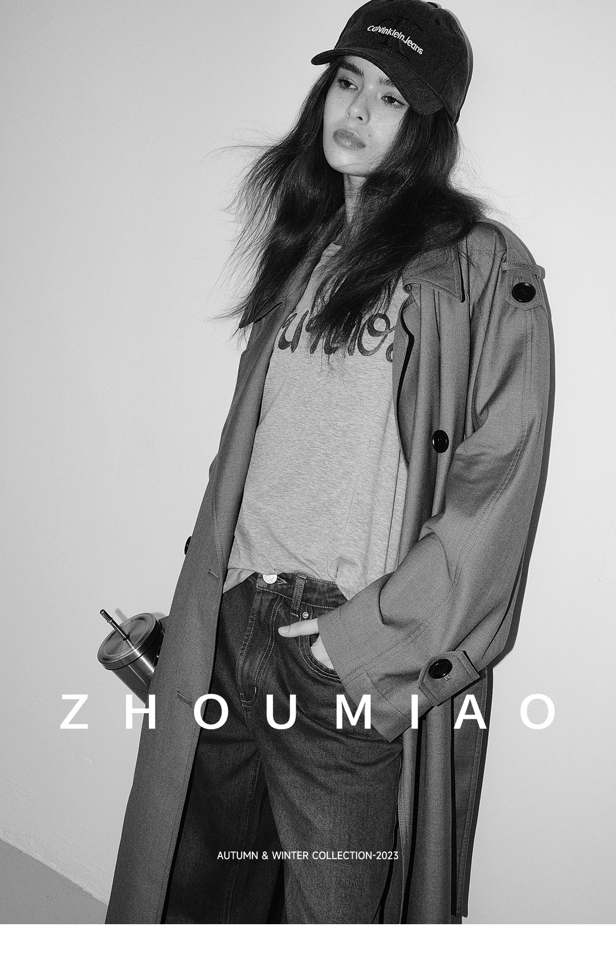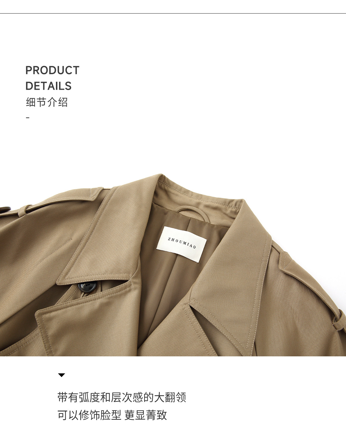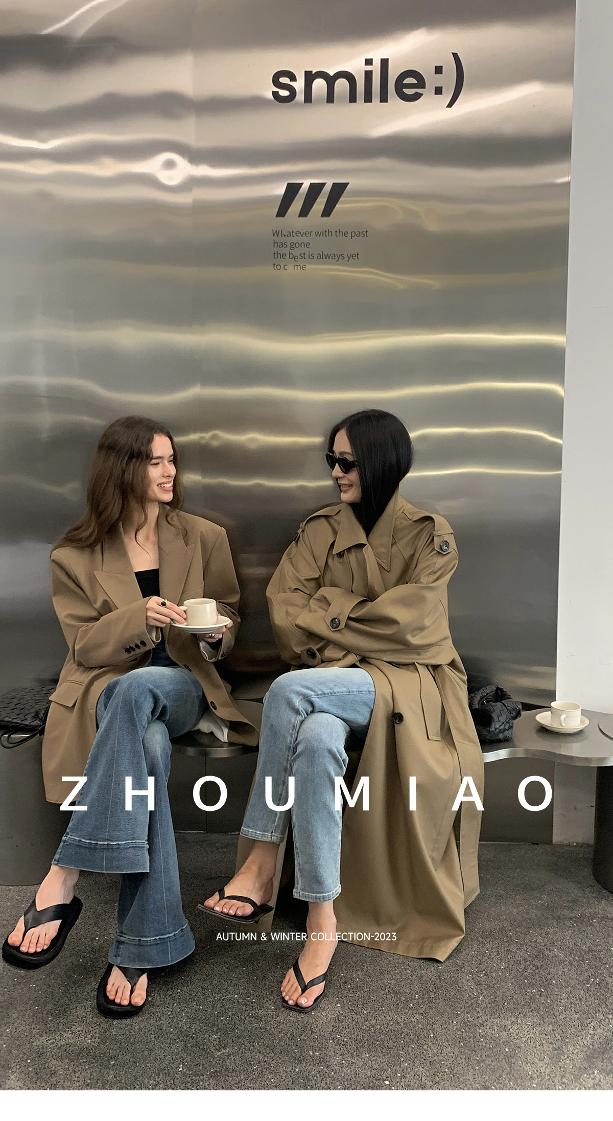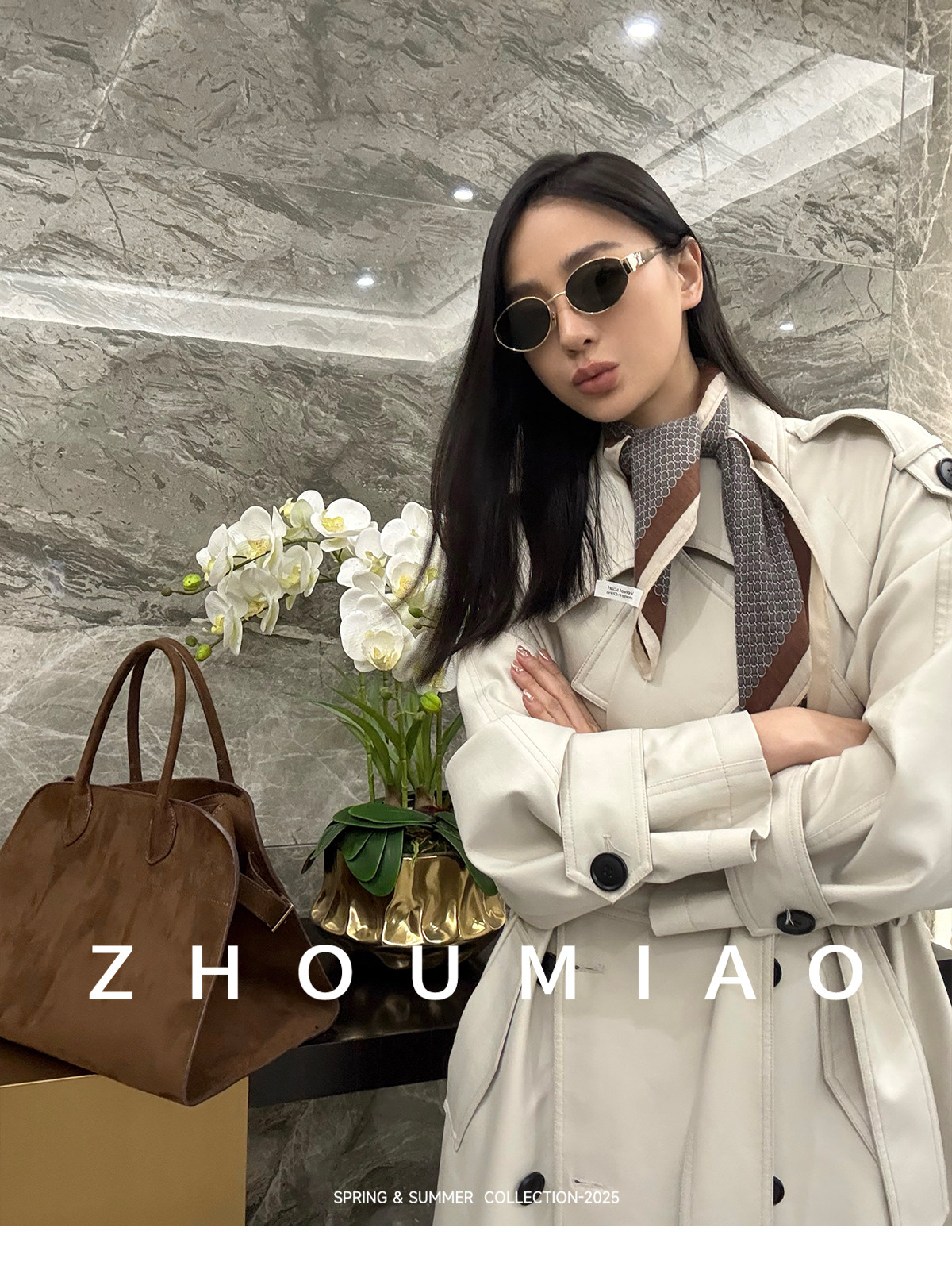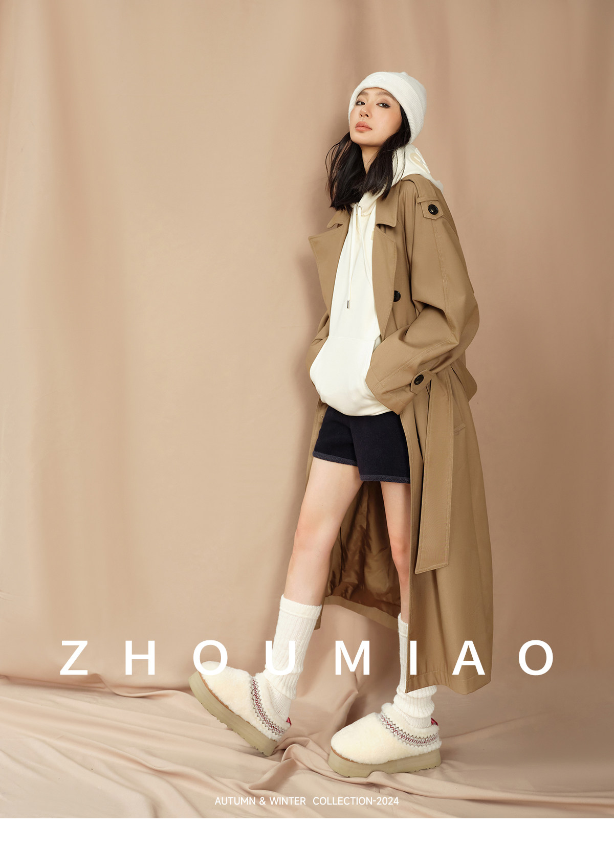 周淼ZHOUMIAO巴黎旧梦经典廓形大翻领双排扣中长款气质风衣外套女