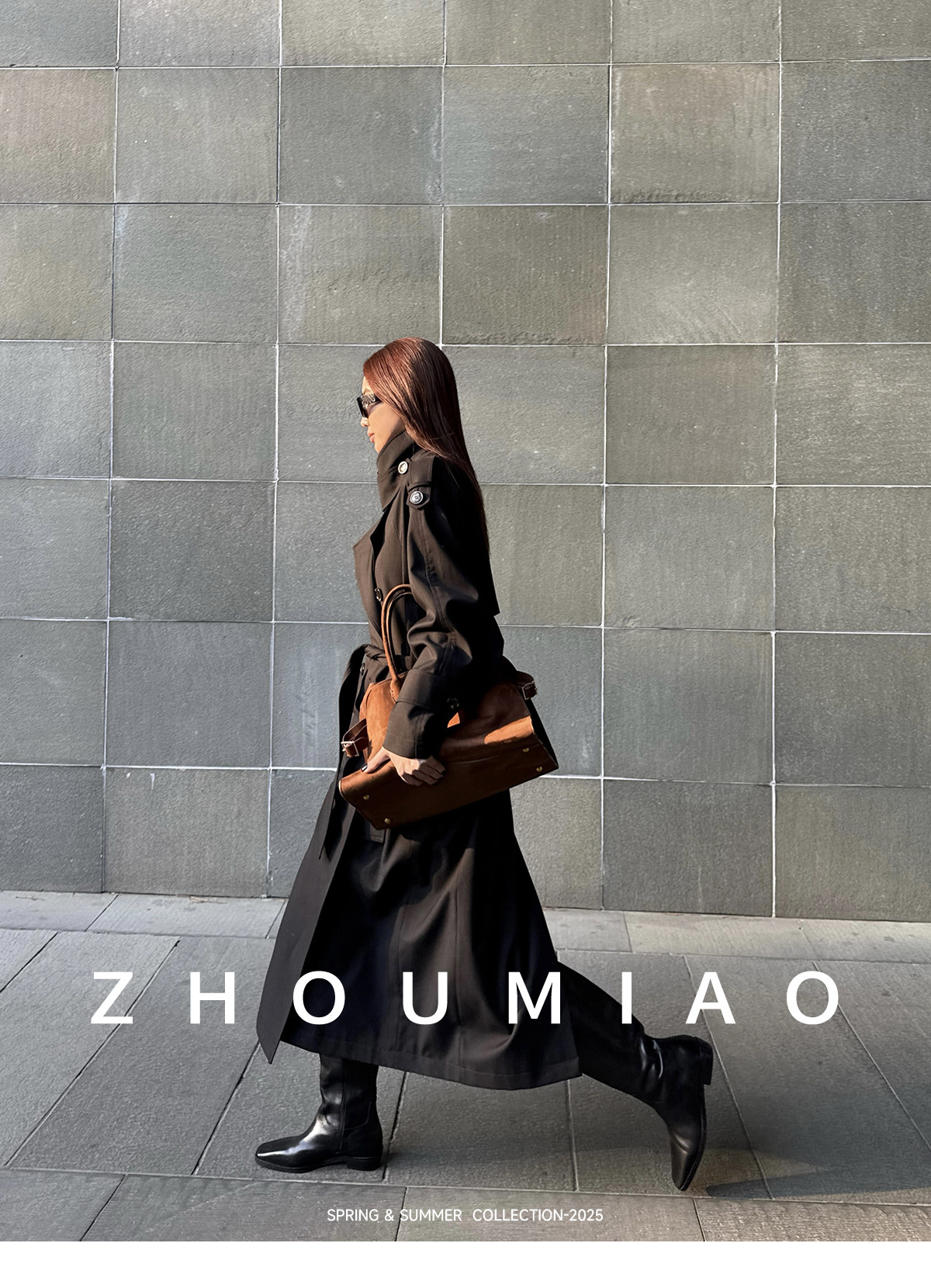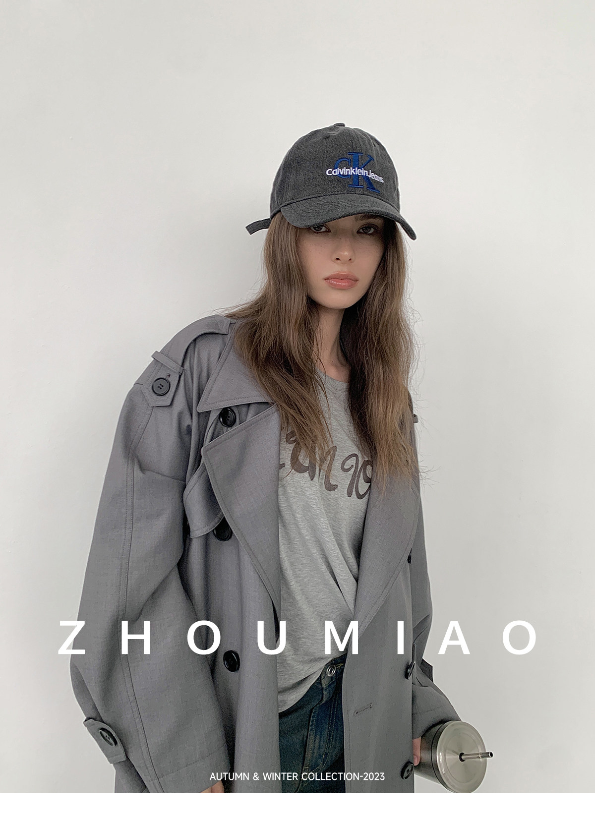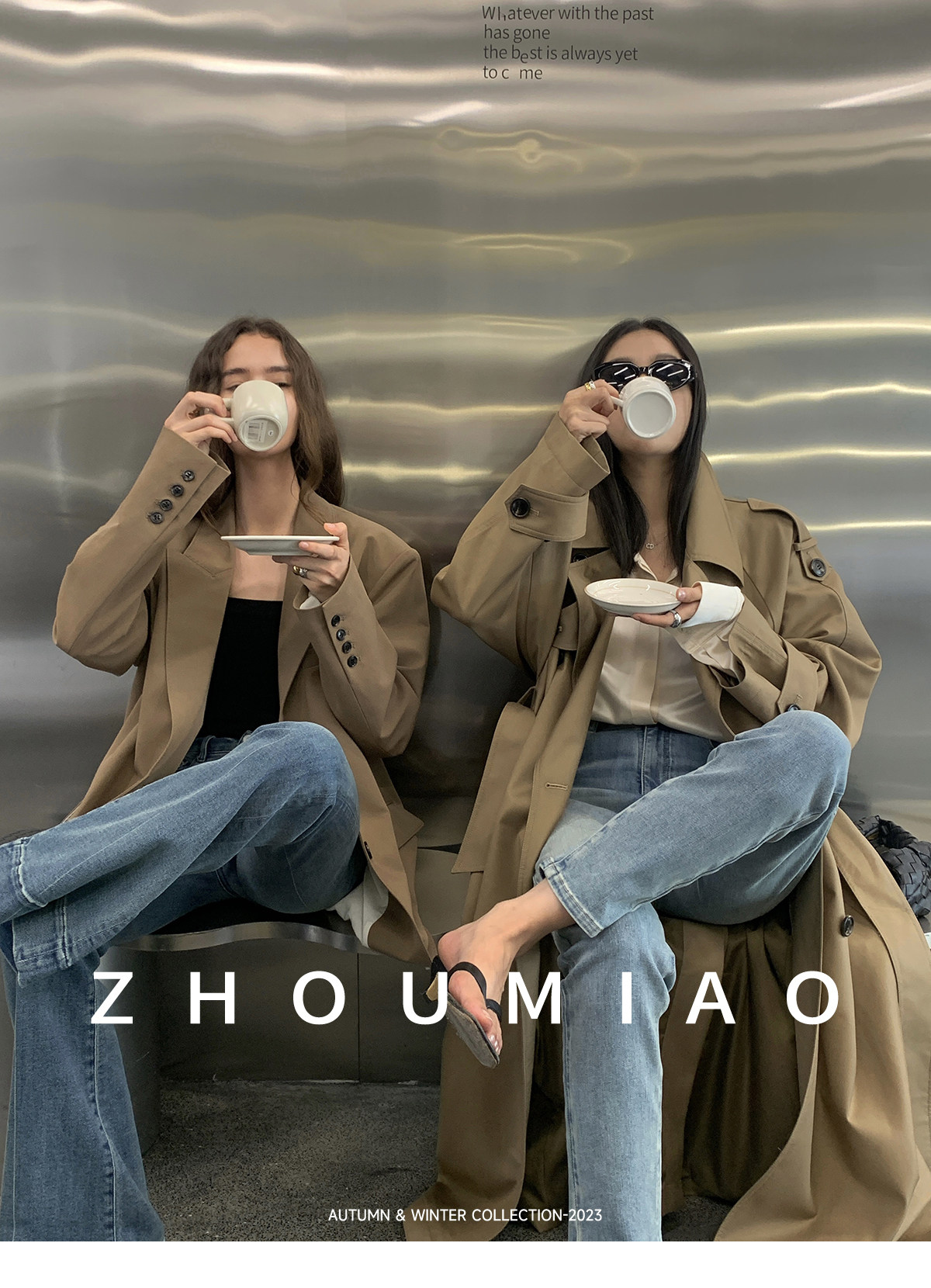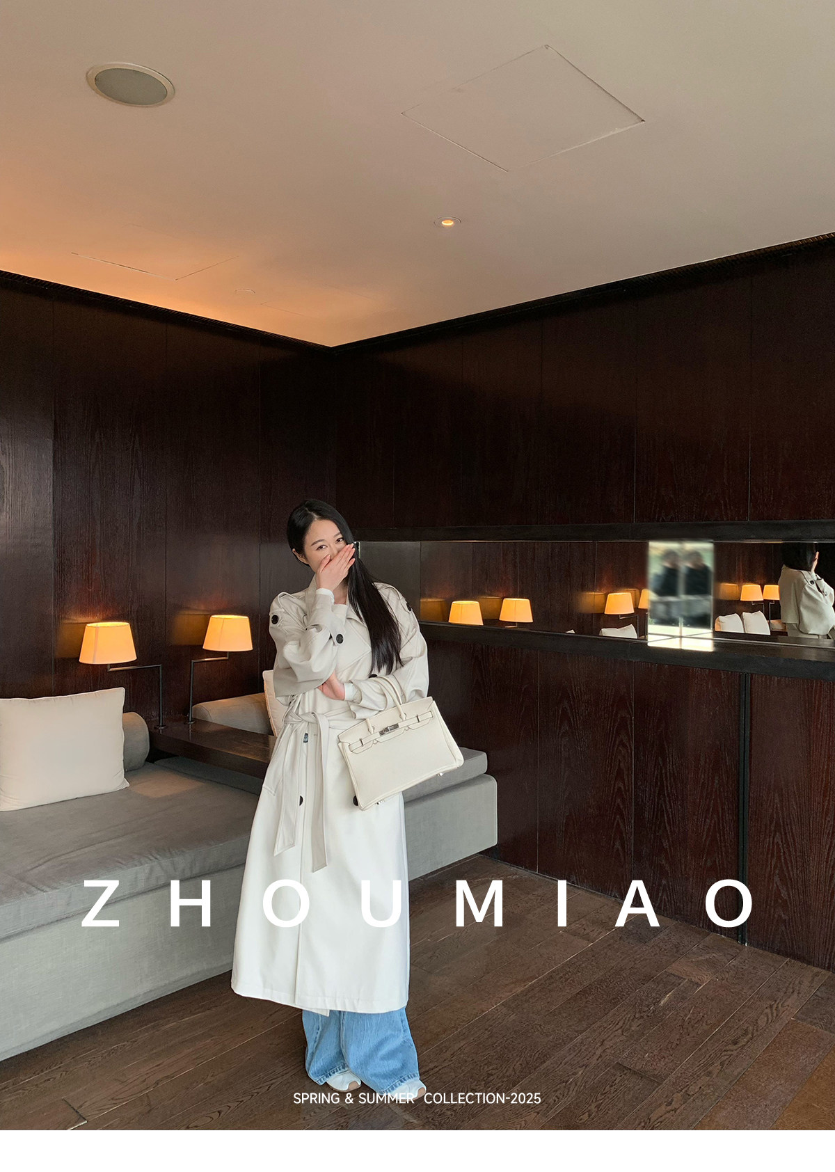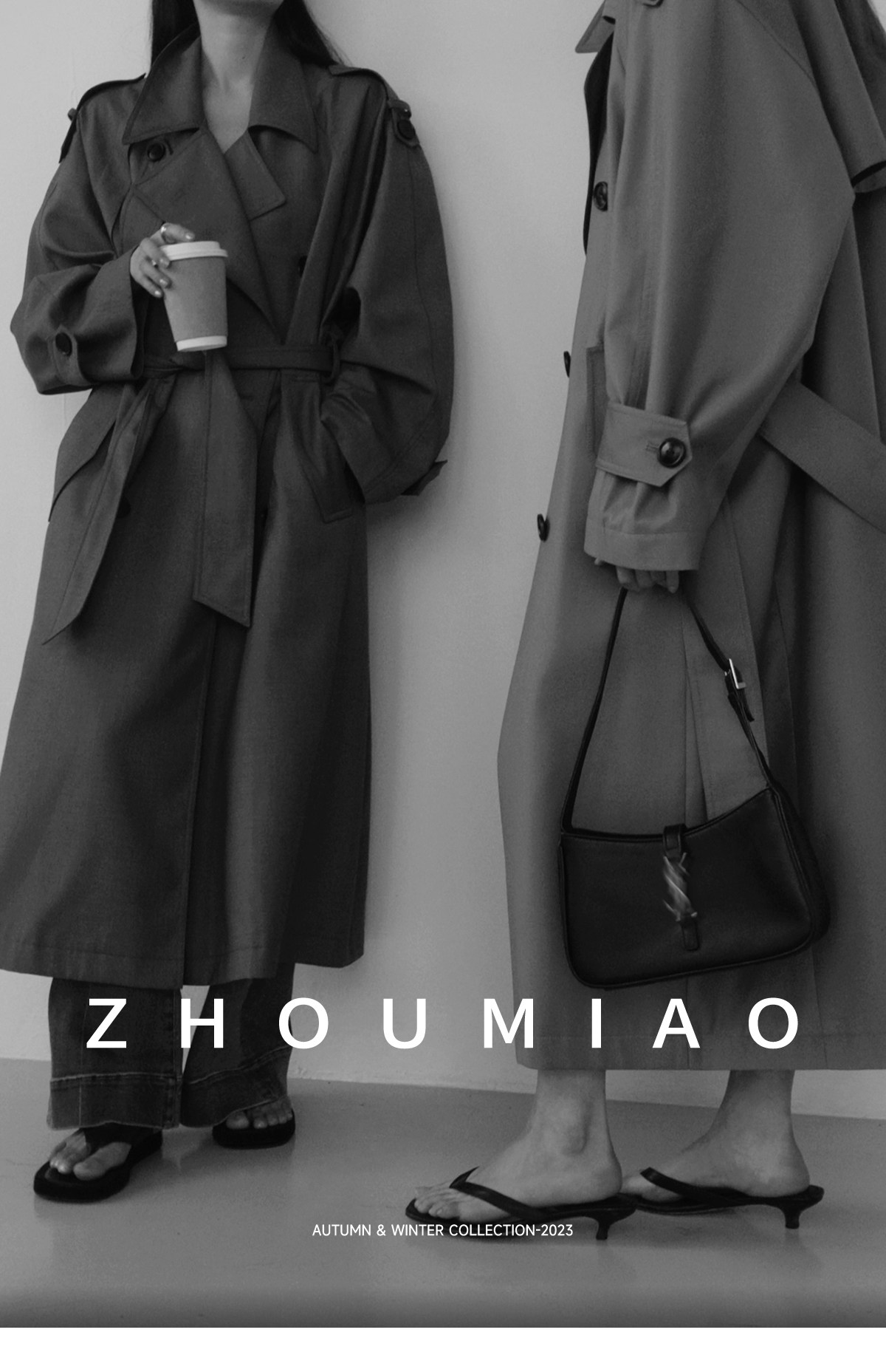 周淼ZHOUMIAO巴黎旧梦经典廓形大翻领双排扣中长款气质风衣外套女
