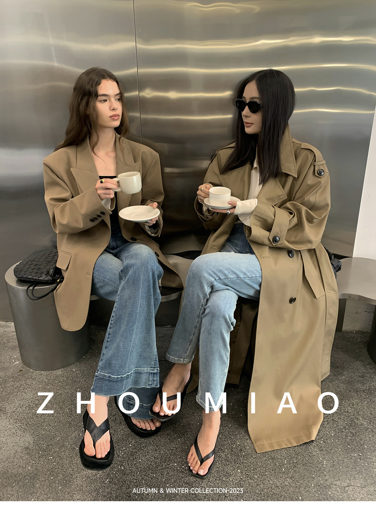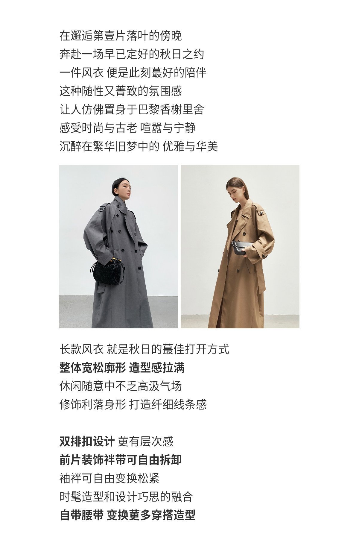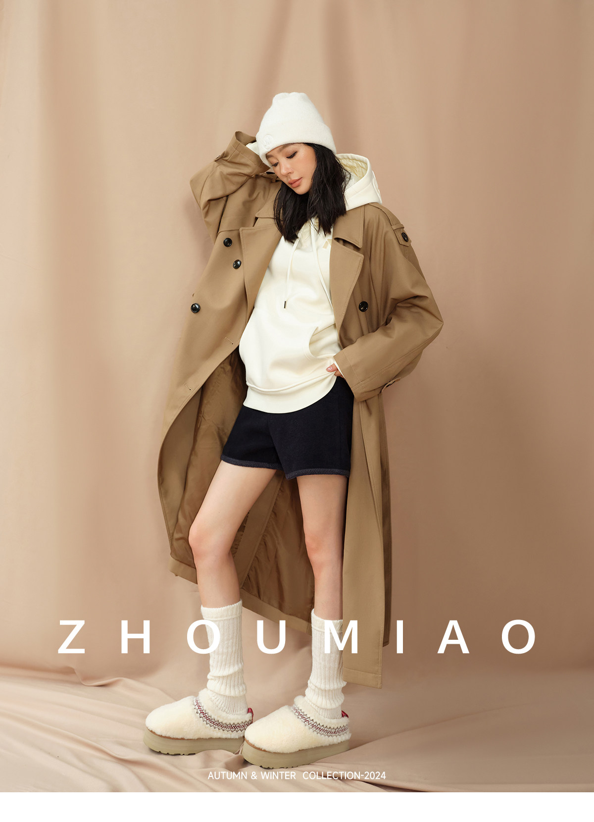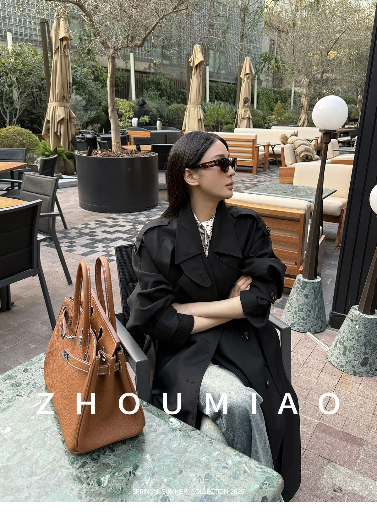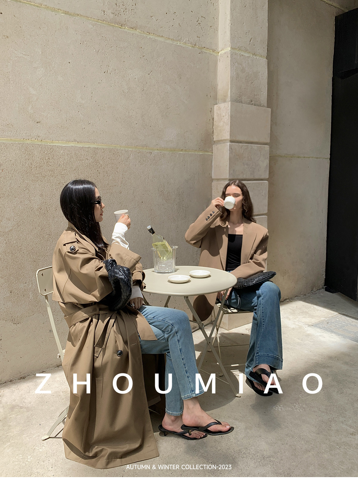 周淼ZHOUMIAO巴黎旧梦经典廓形大翻领双排扣中长款气质风衣外套女