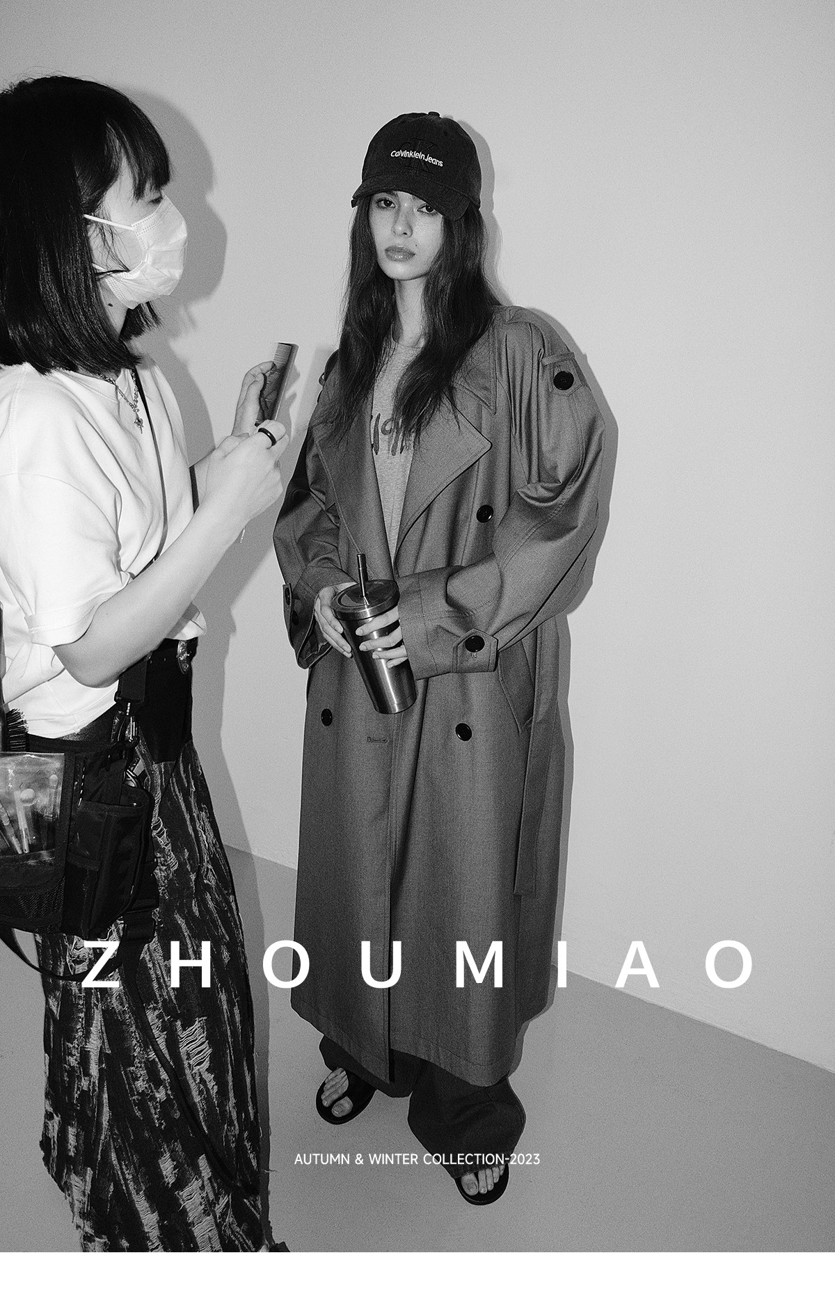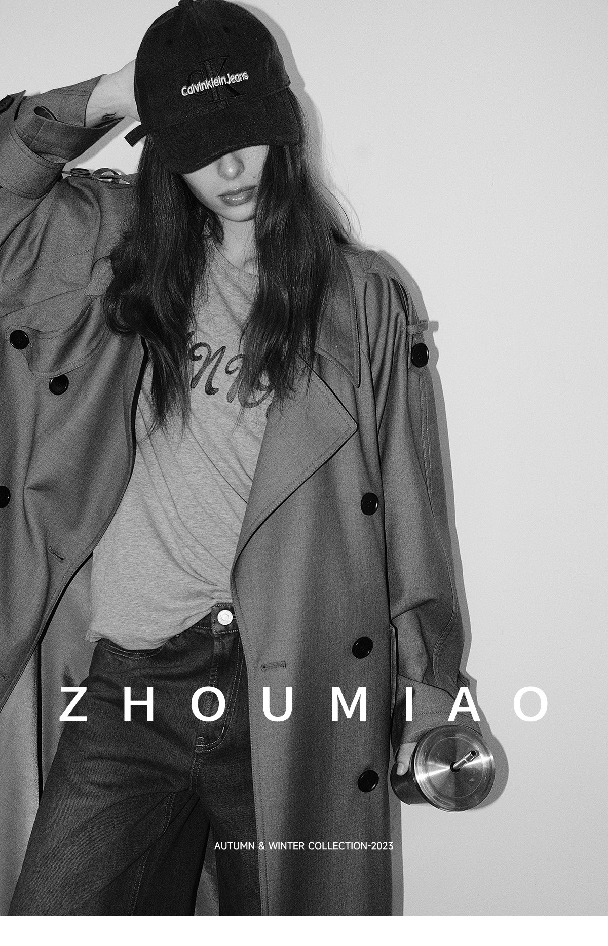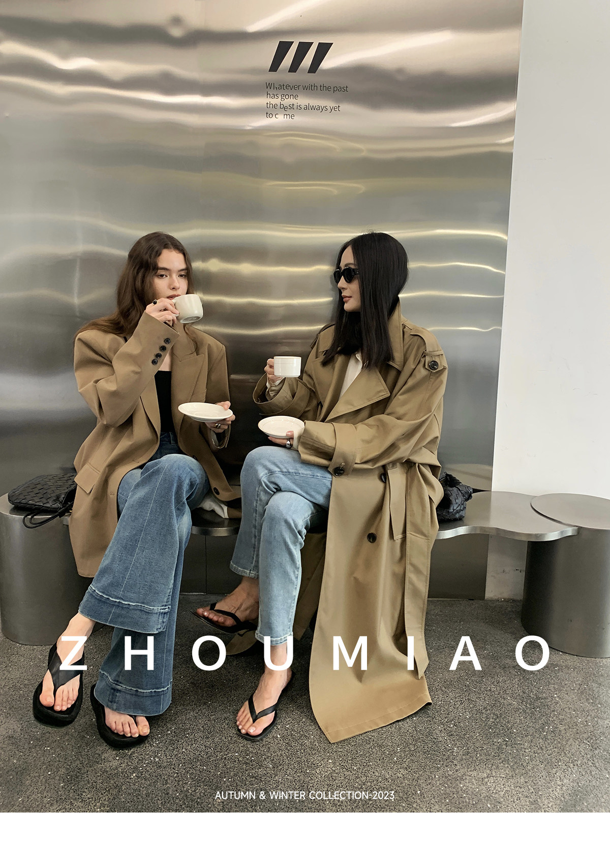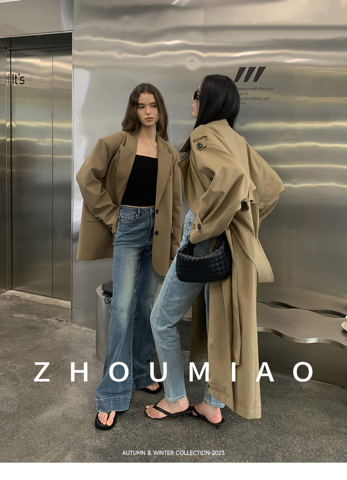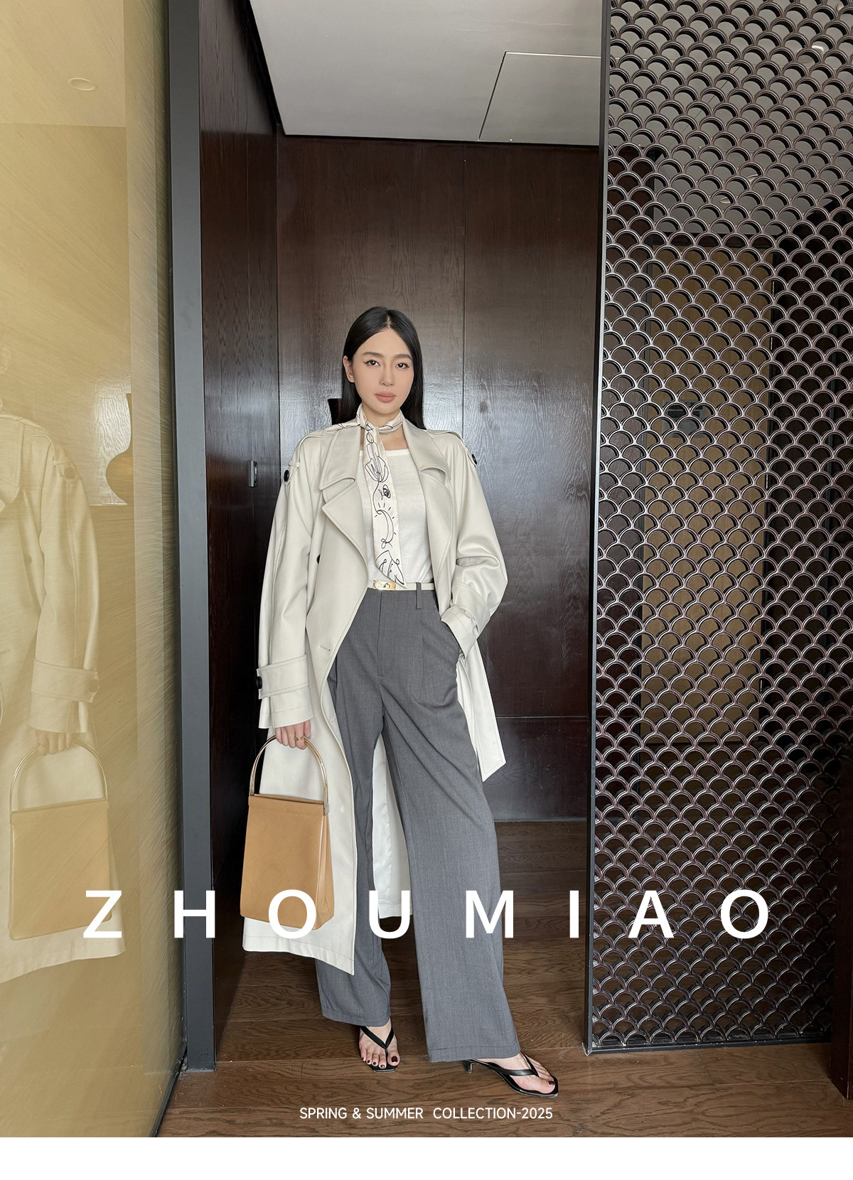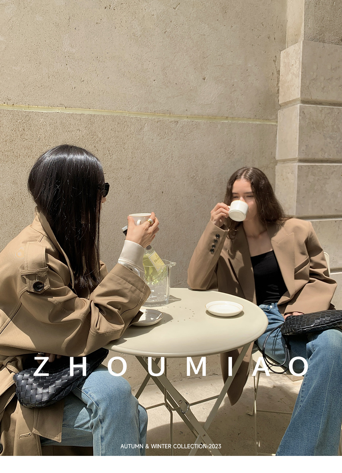 周淼ZHOUMIAO巴黎旧梦经典廓形大翻领双排扣中长款气质风衣外套女