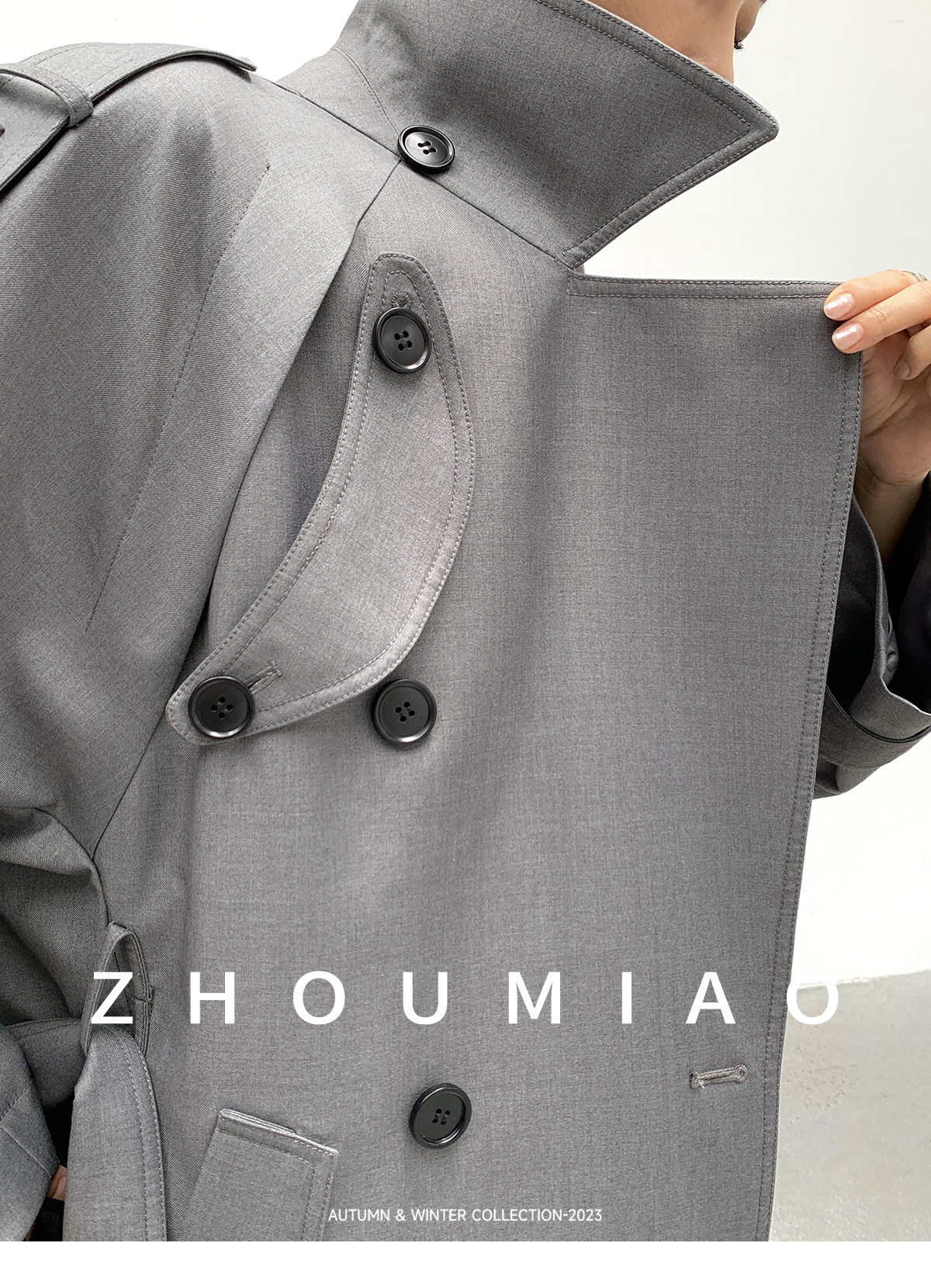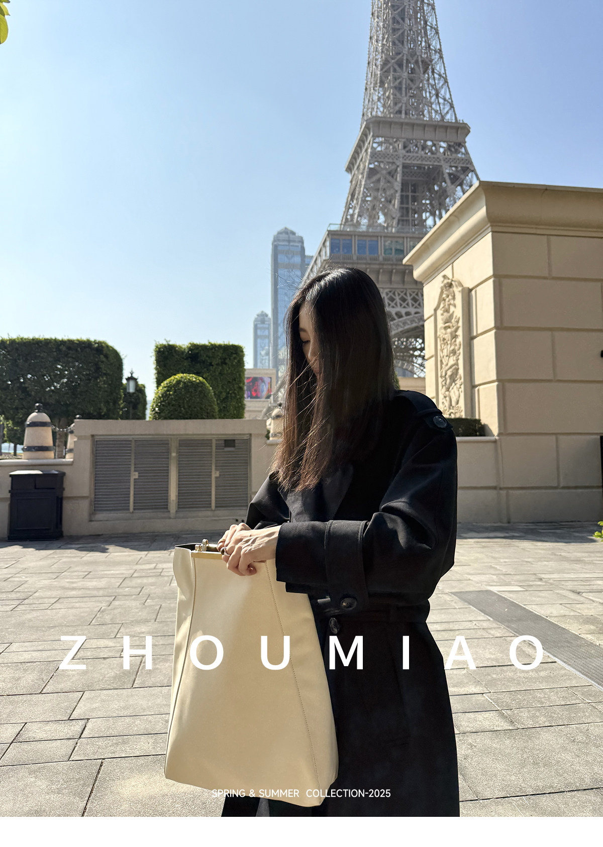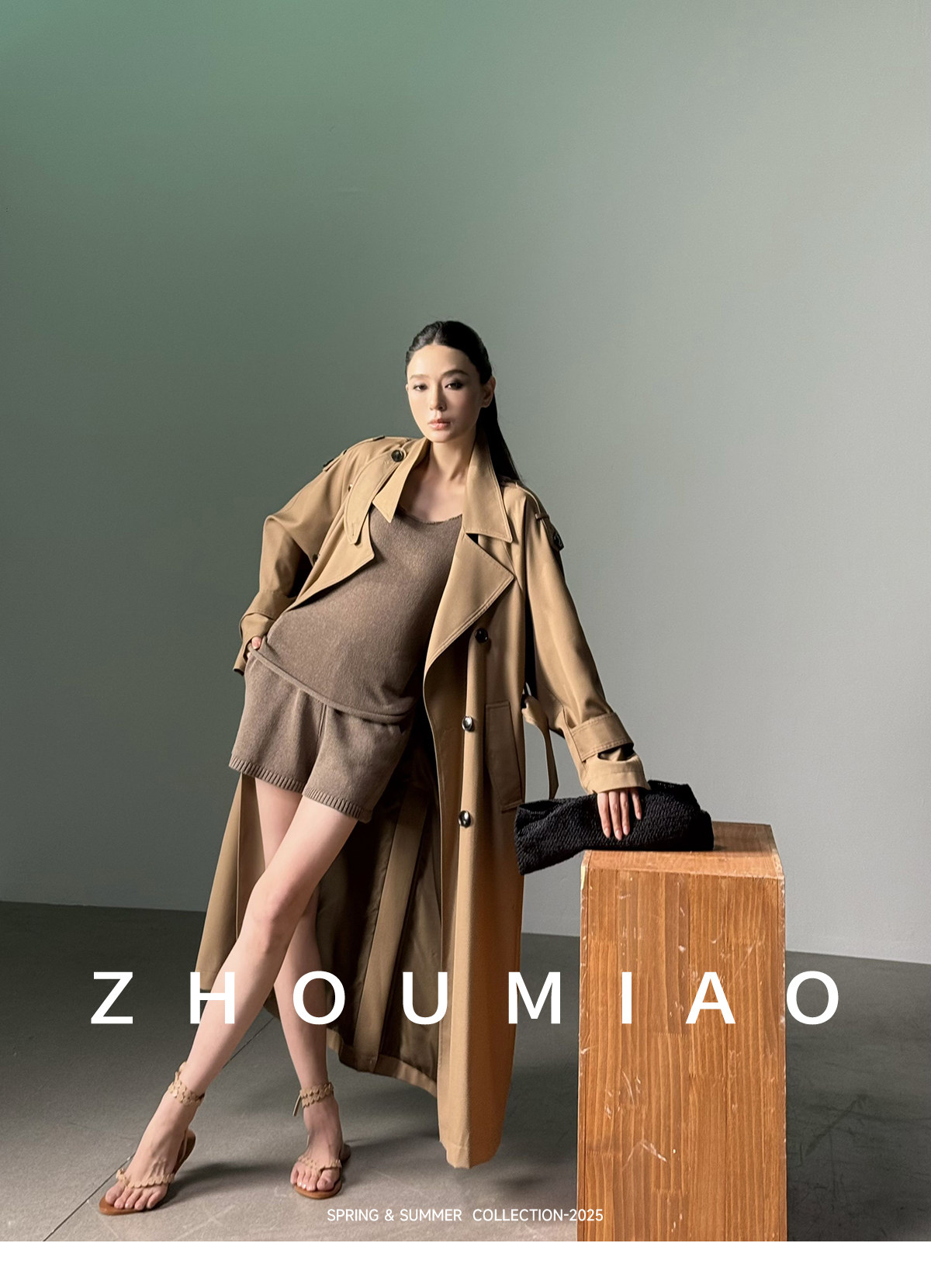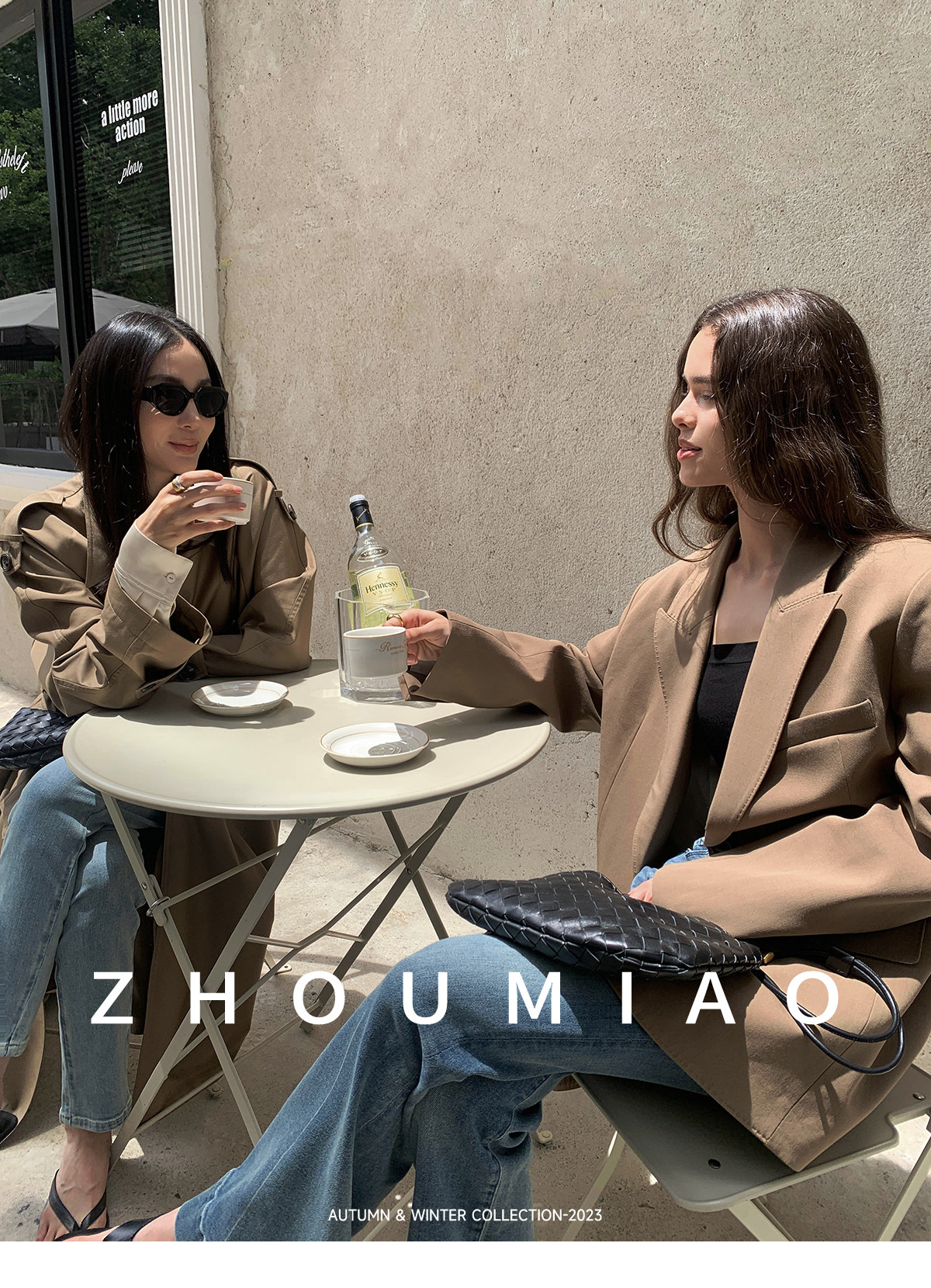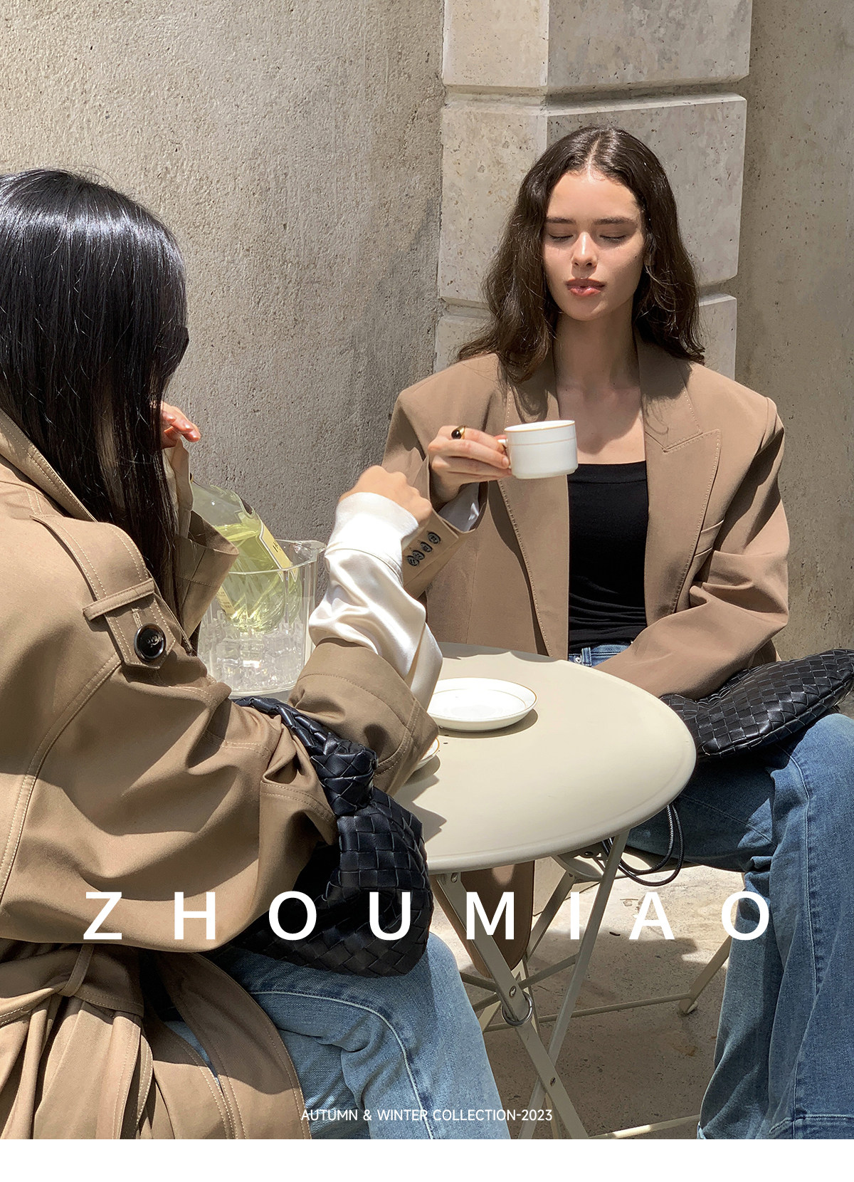 周淼ZHOUMIAO巴黎旧梦经典廓形大翻领双排扣中长款气质风衣外套女