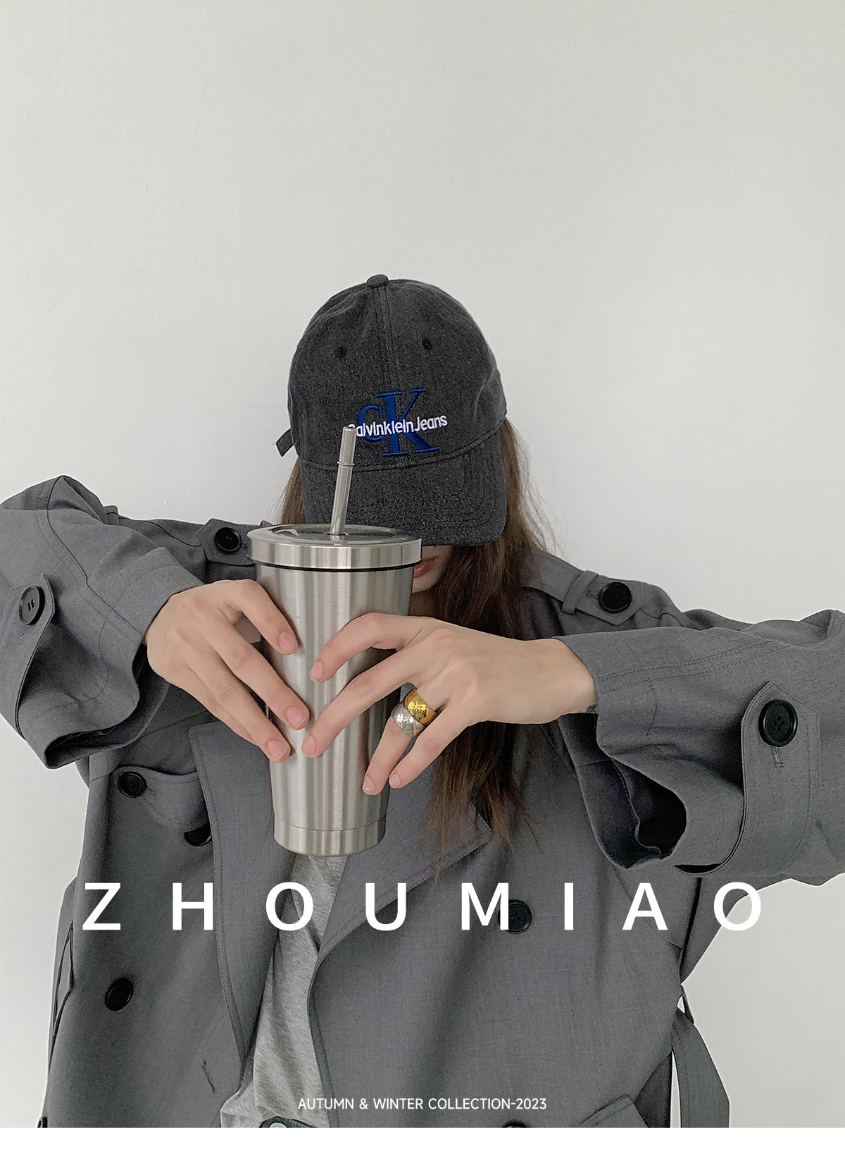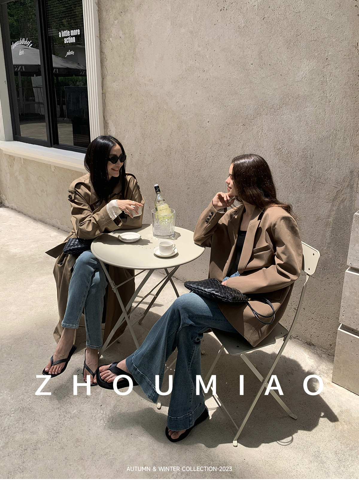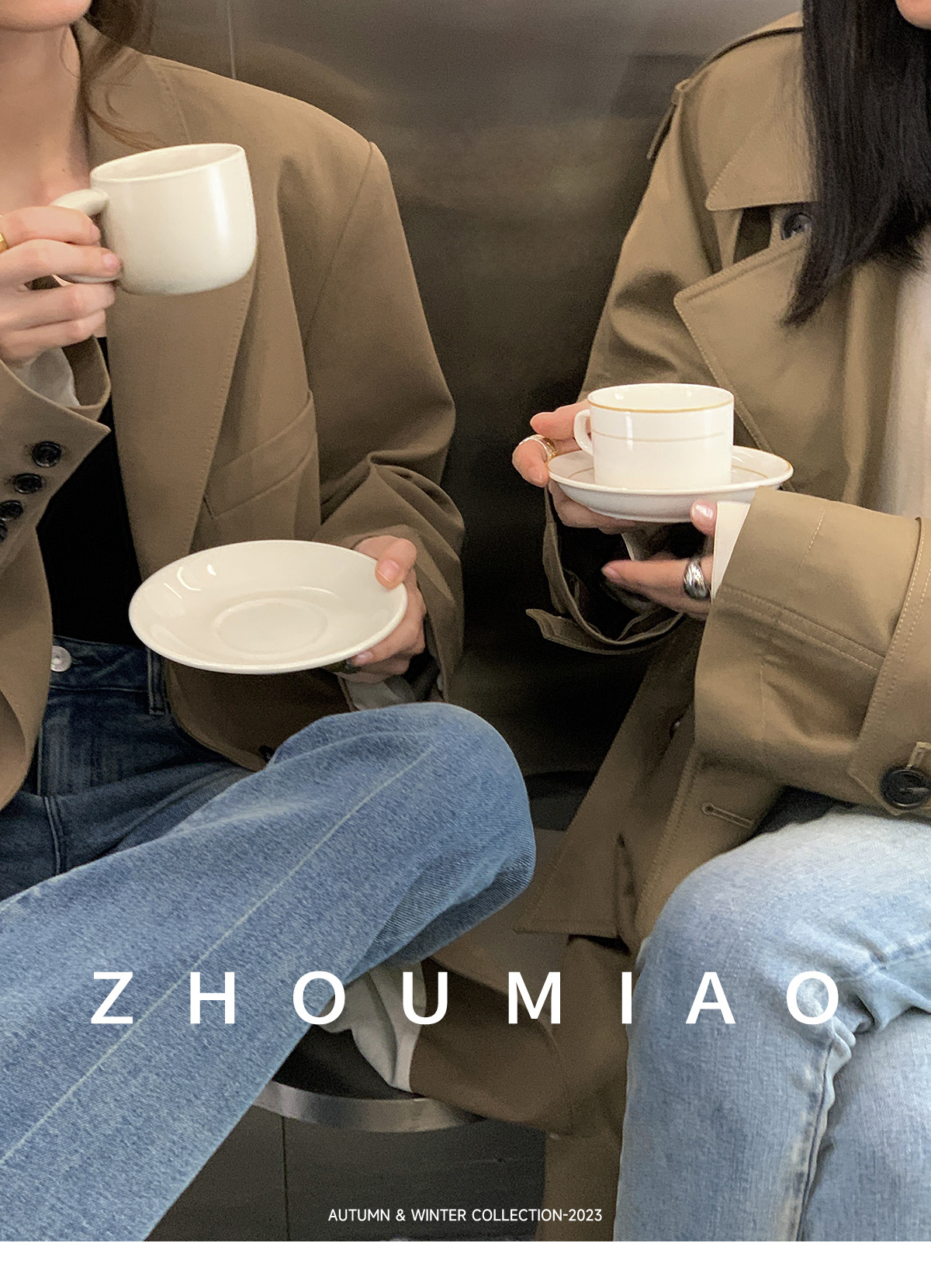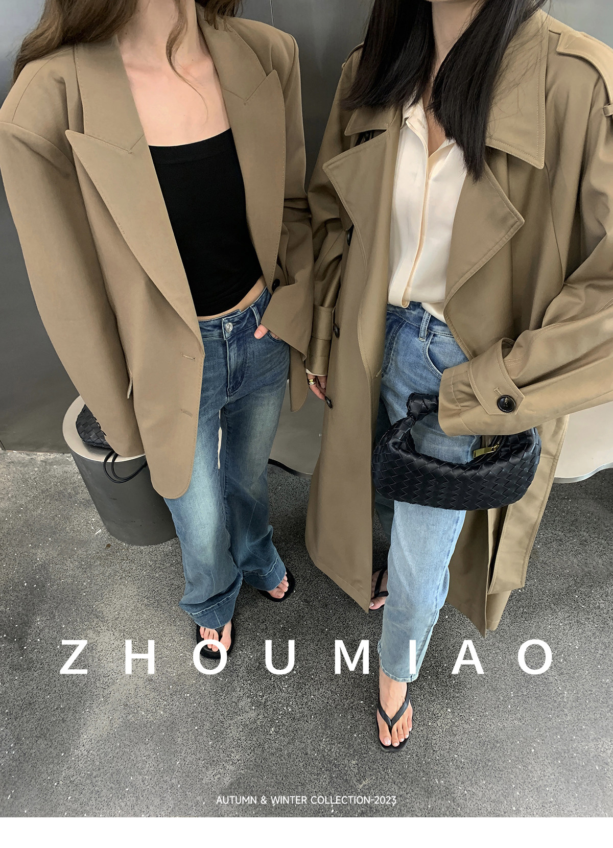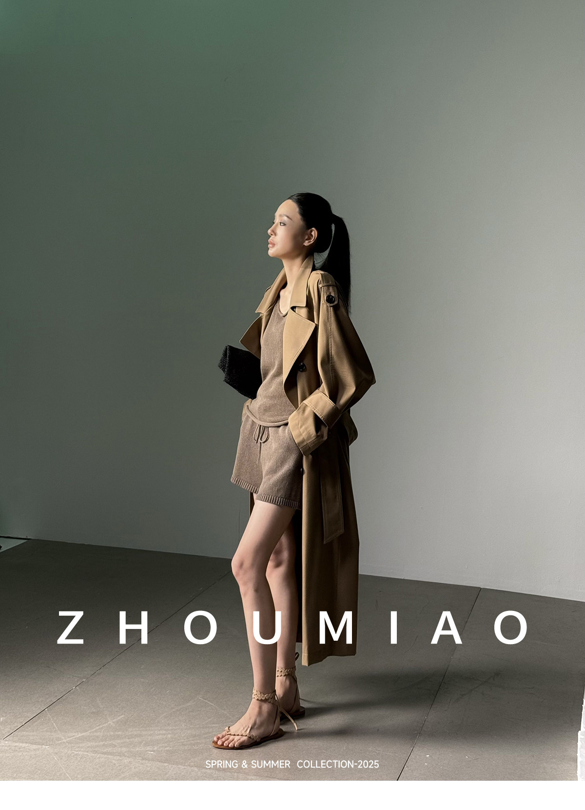 周淼ZHOUMIAO巴黎旧梦经典廓形大翻领双排扣中长款气质风衣外套女