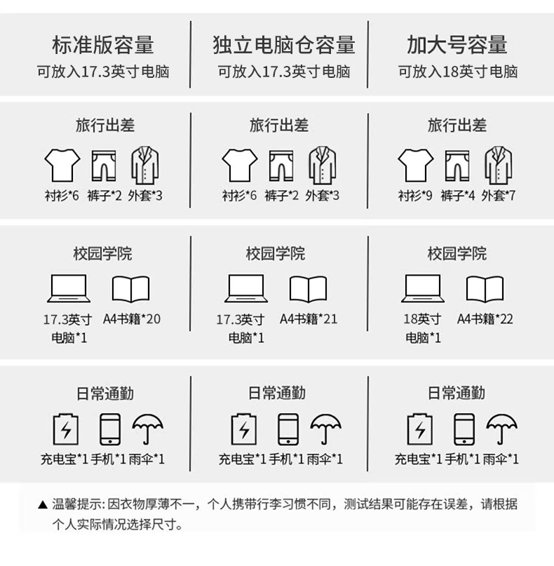 Sort by color The first 20 people who collect and add to your collection will receive free genuine warm gloves from Huaili for a limited time!!,The store manager promises that if you are not satisfied, you will refund for free. The free trial will be 90 days. If you are not satisfied, you will refund for full amount. Good products dare to promise,Hui Li Zhen ranks first in sales and tops the TOP 15 list. 8 million+ have been sold. The sales volume testifies to the quality!,High fiber and super waterproof fabric, worry-free on rainy days!,Travel freely, lightweight and lightweight, weighing only 620 grams!,Support customized text and patterns, free design,Main picture black large capacity (35*16*45cm),Main picture black extra large size (34.5*18*49cm),Main picture black upgraded EVA back panel (35*16*45cm),Main picture black upgraded independent computer compartment (35*16*45cm),Main picture gray large capacity (35*16*45cm),Main picture gray upgraded EVA back panel (35*16*45cm),Gray large capacity plus size (34.5*18*49cm),Black large capacity + inflatable U-shaped pillow,Black large capacity + three-in-one toothbrush set,Black large capacity + data cable storage bag,Black large capacity comes with password lock,Black upgraded independent computer compartment + data cable storage bag,Black upgraded independent computer compartment + mouse pad,Black Large Capacity XL + Mouse Pad,Black upgraded EVA back panel + mouse pad,Main picture black (comes with men’s razor),Black upgraded EVA back plate (comes with men’s razor),Black diagonal zipper-upgraded back tie rod strap (31*15*50cm),Black diagonal zipper-extra large (35*18*50cm),Black diagonal zipper-upgraded EVA back panel + computer compartment airbag (30*18*48.5cm),Black style two (upgraded new model),Black velvet computer compartment,Black waterproof computer bag,Black WARRIOR logo,Black extra large capacity backpack,Black style three,Black style six (strong and durable),Black computer bag upgraded EVA back panel,Upgraded to the new trendy black color that can accommodate a 17.3-inch computer,Upgraded to the new trendy gray color that can accommodate a 17.3-inch computer,Black style five (independent computer position),Black + leather gloves,Black+Cycling Gloves,Black + Ski Gloves,Black + knitted hat,Black + knitted scarf,Black+baseball cap style,Black+baseball cap style,Black+baseball cap style,Black backpack with matching black satchel,Black backpack with matching white satchel,Black + astronaut pendant can hold 17.3-inch computer,Black+gorilla pendant can hold 17.3-inch computer,Black Style Three White Panda Pendant,Black Style Three + Niu Niu Pendant,Black+Sky Duck pendant can hold 17.3-inch computer,Gray large capacity can hold 15.6-inch computer,Main picture gray upgraded independent computer compartment (35*16*45cm),Main picture black large capacity (35*16*45cm),The main picture is black and large (34.5*18*49cm)