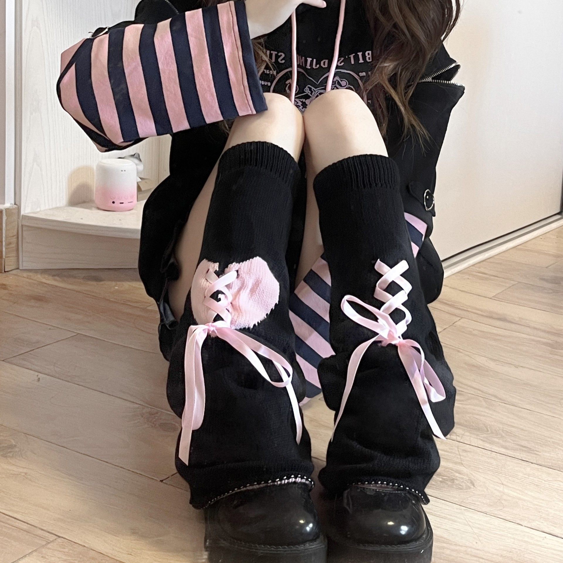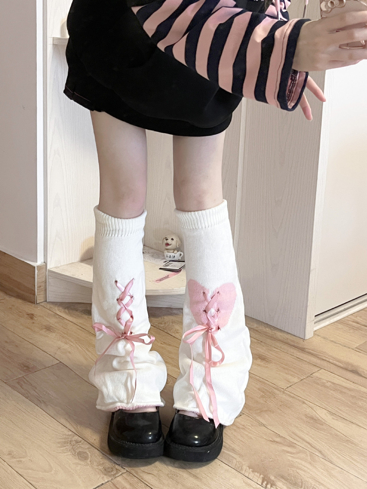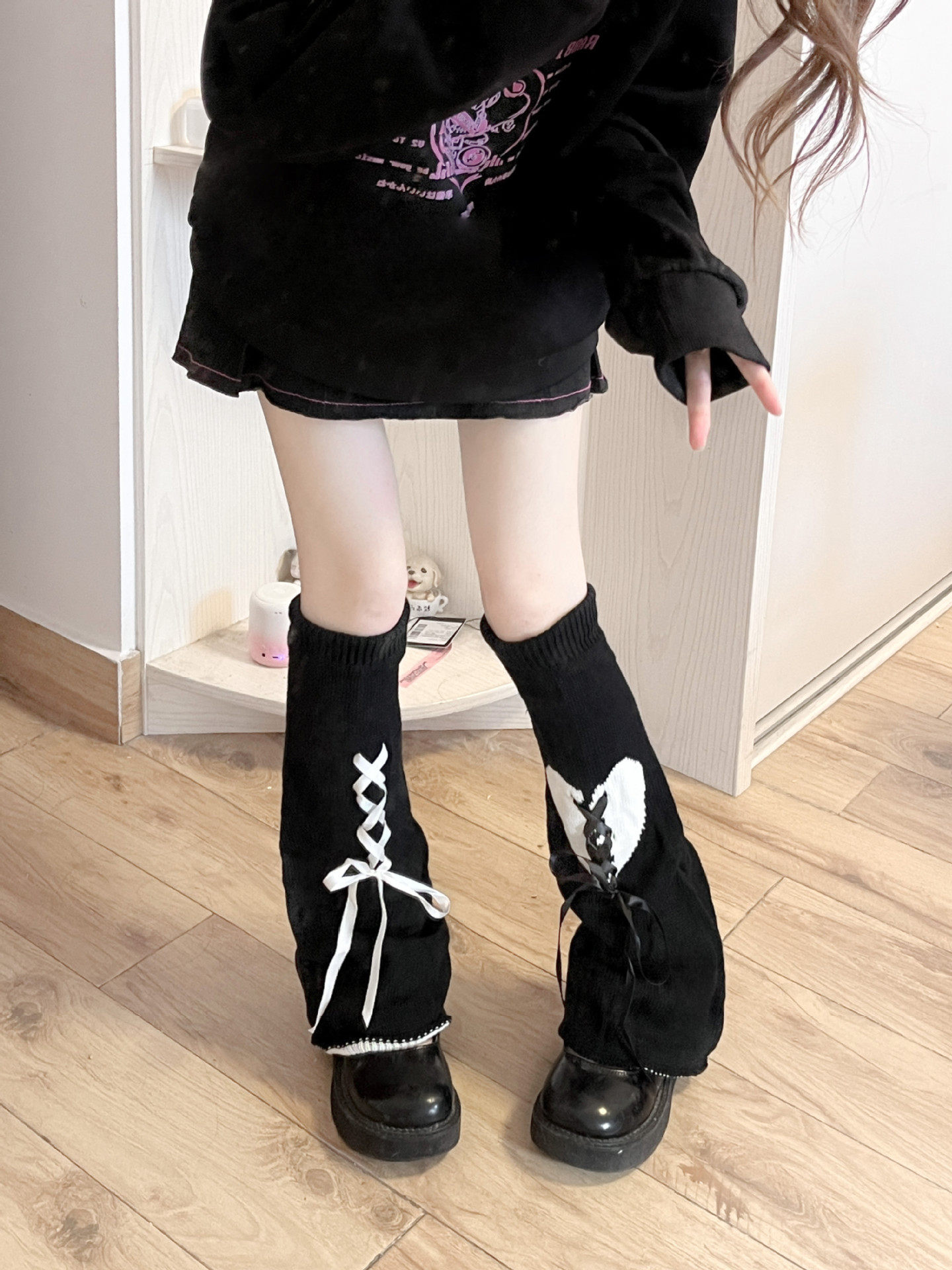 洛丽塔春秋原宿辣妹袜套袜子亚文化y2k粉色绑带蝴蝶jk堆堆袜腿套