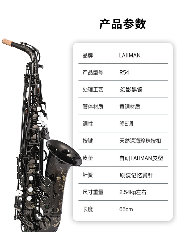 Laiiman莱曼萨克斯管乐器双键筋中音降e调R54幻影黑镍乐队演奏级
