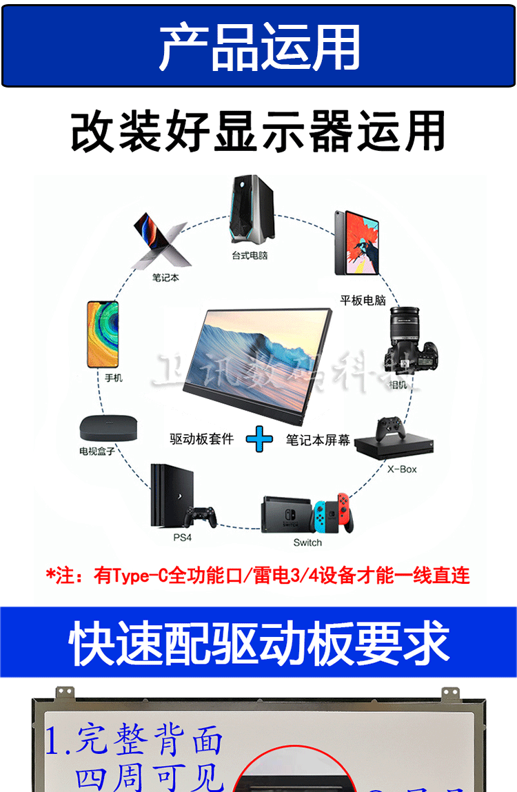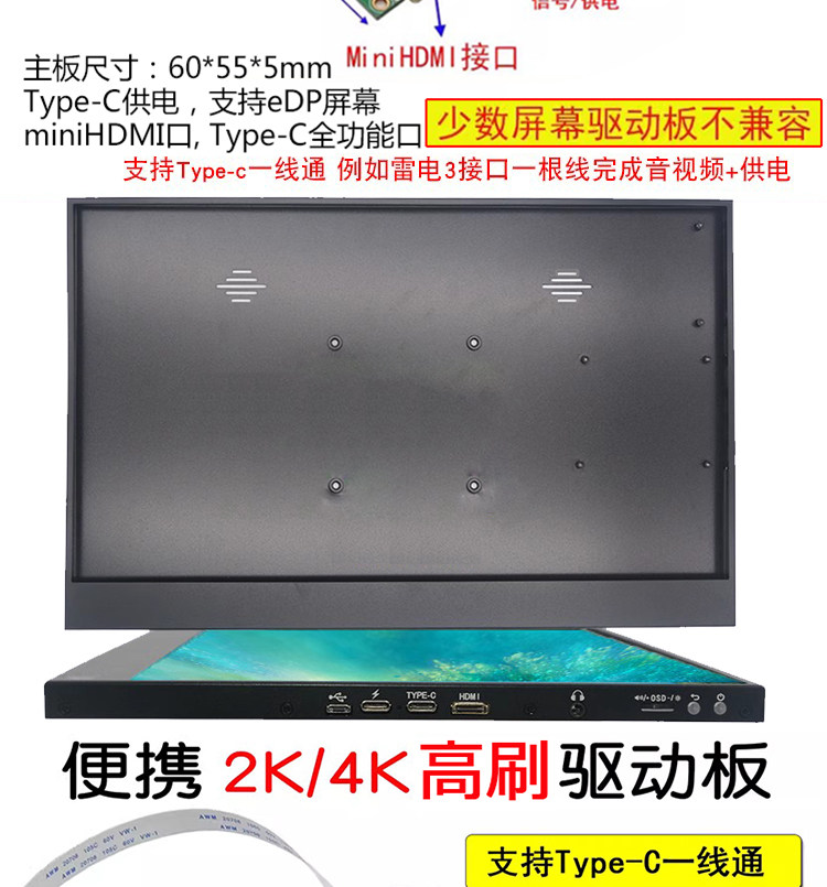Pantalla de ordenador portátil, modificación DIY, kit de carcasa de placa controladora de pantalla portátil, pantalla dividida extendida, pantalla secundaria TYPEC