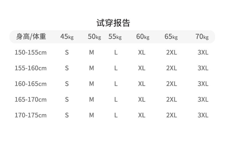 China (cm) 160-165/84-86 165-170 / 88-90 167-172 / 92-96 168-173 / 98-102 170-176 / 106-110