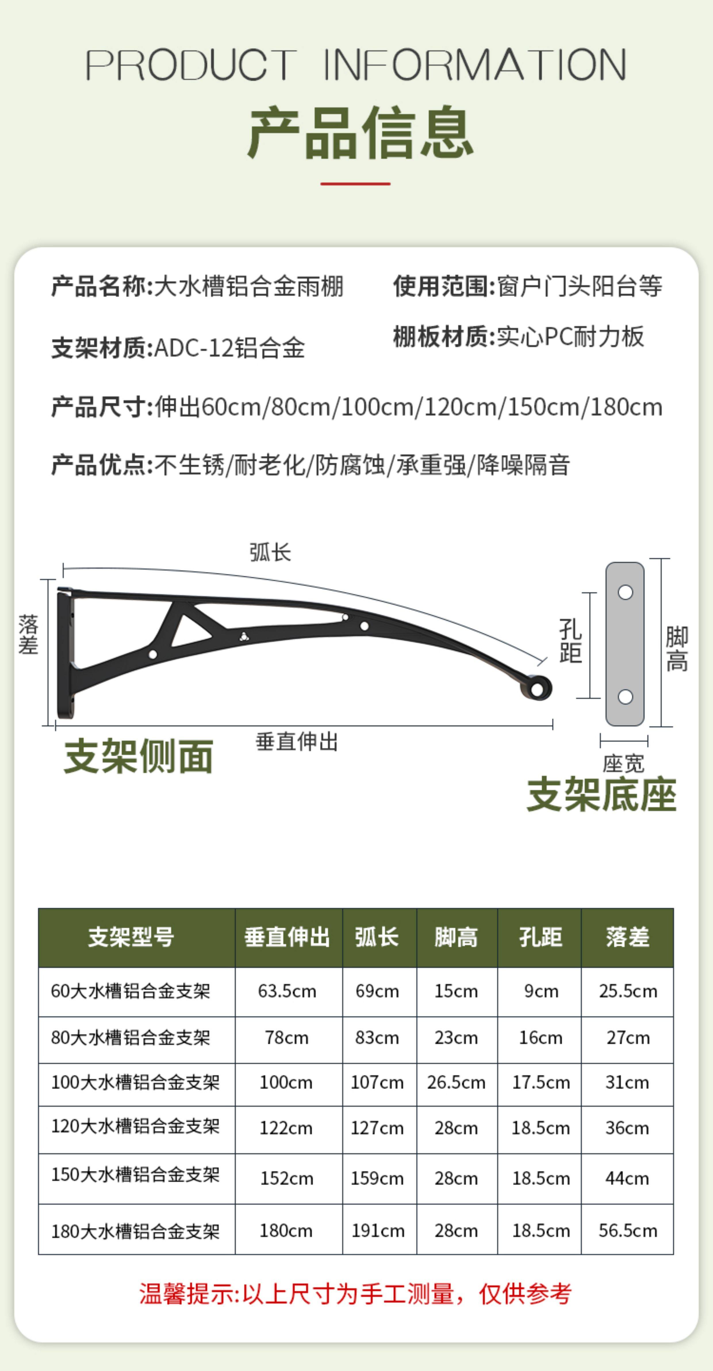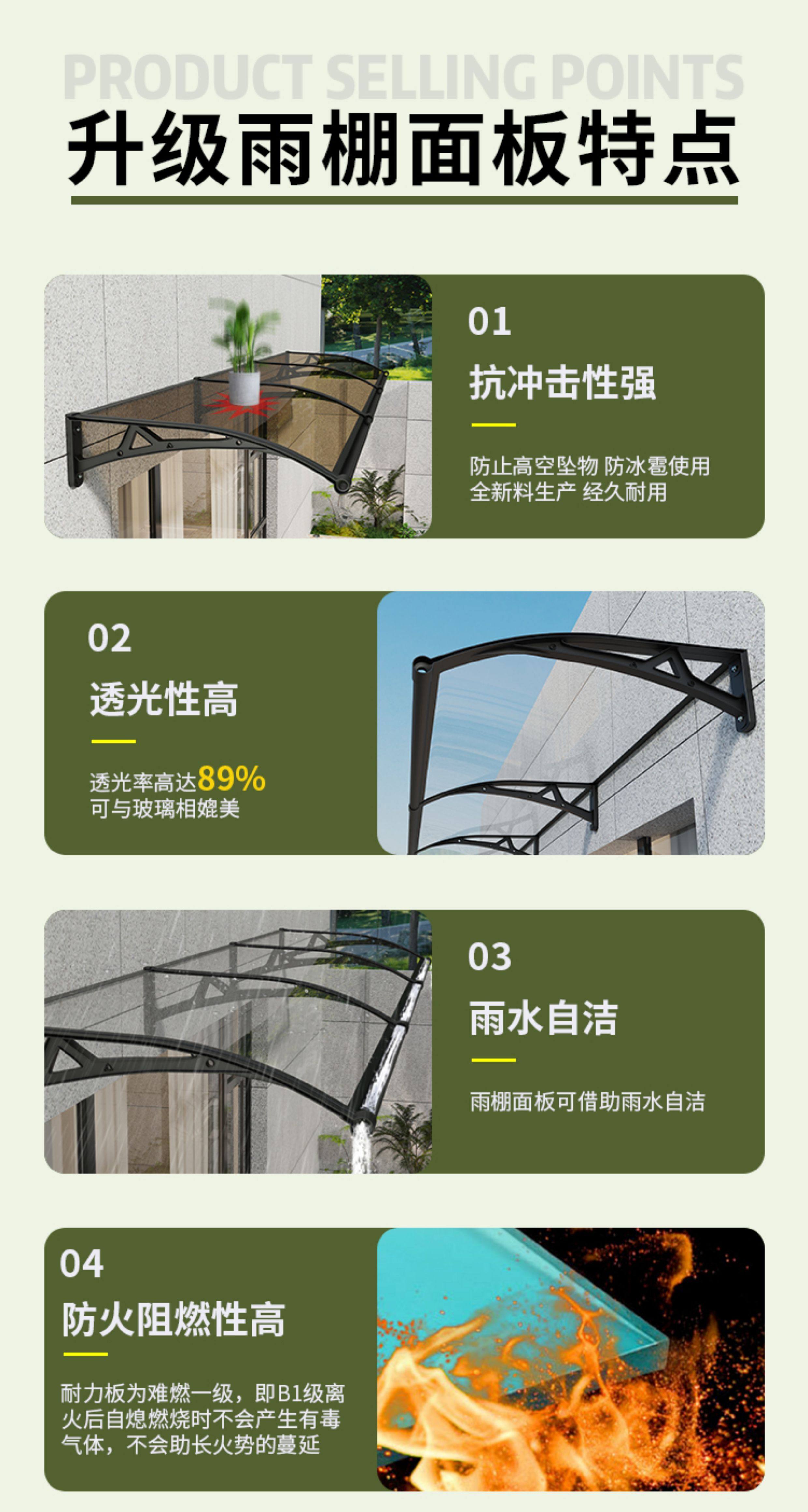 Spot aluminum alloy large sink awning eaves home window courtyard door head balcony outdoor rainproof sunshade awning