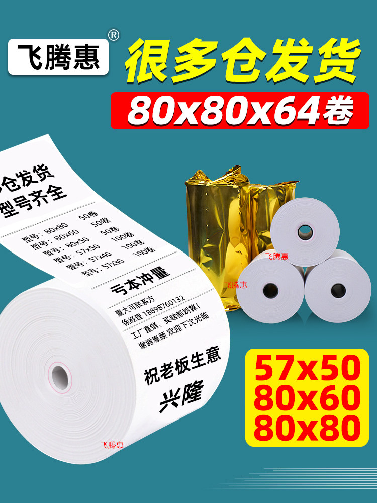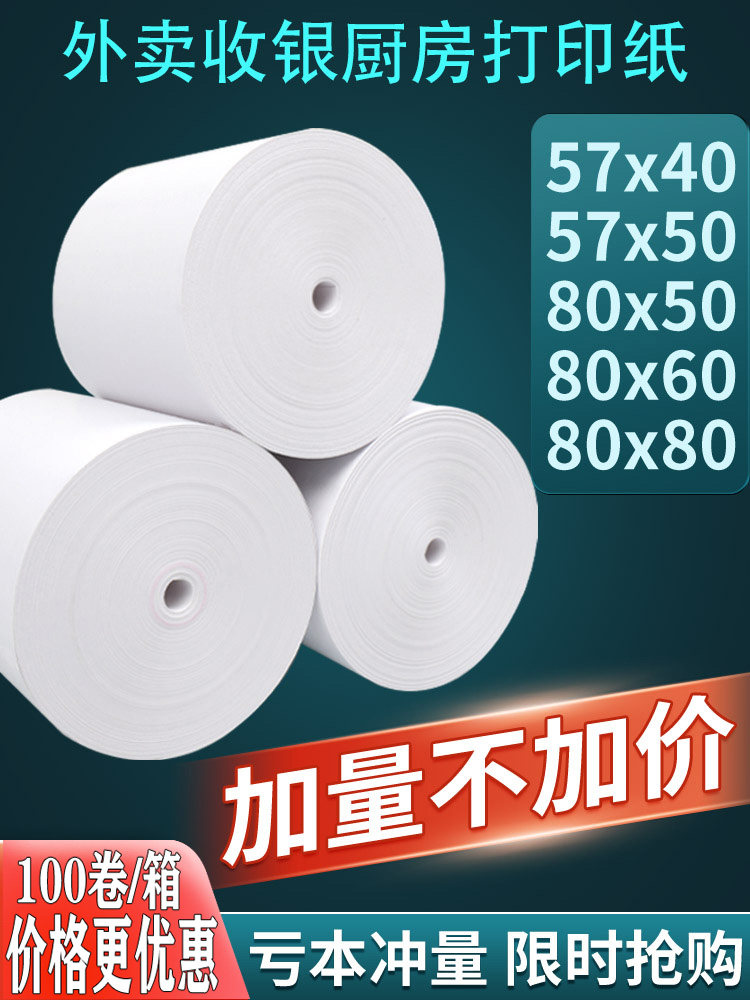 Papel con impresión térmica 57x50 Meituan papel para recibos de supermercado para llevar 80X80X60X50 papel para cajero de cocina