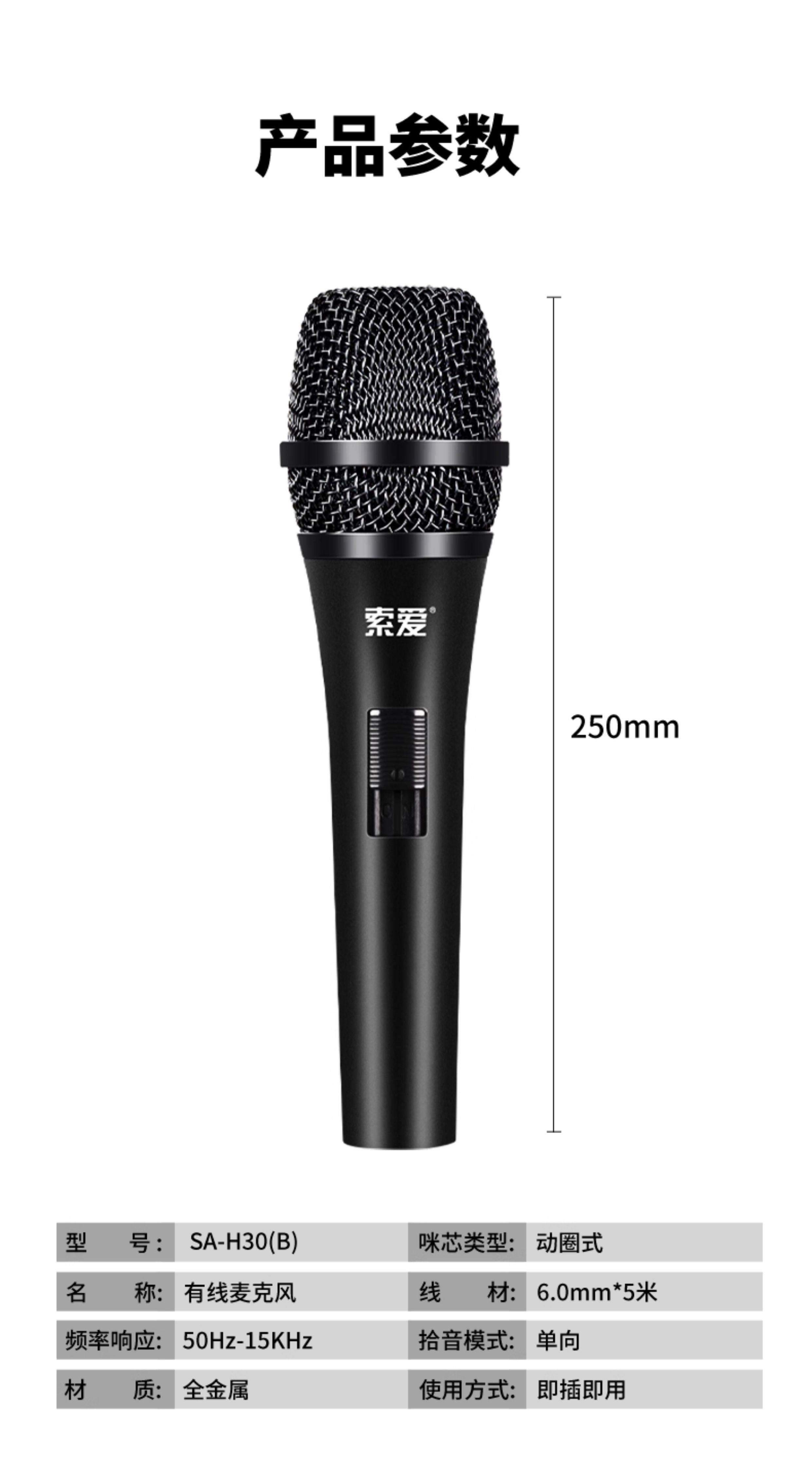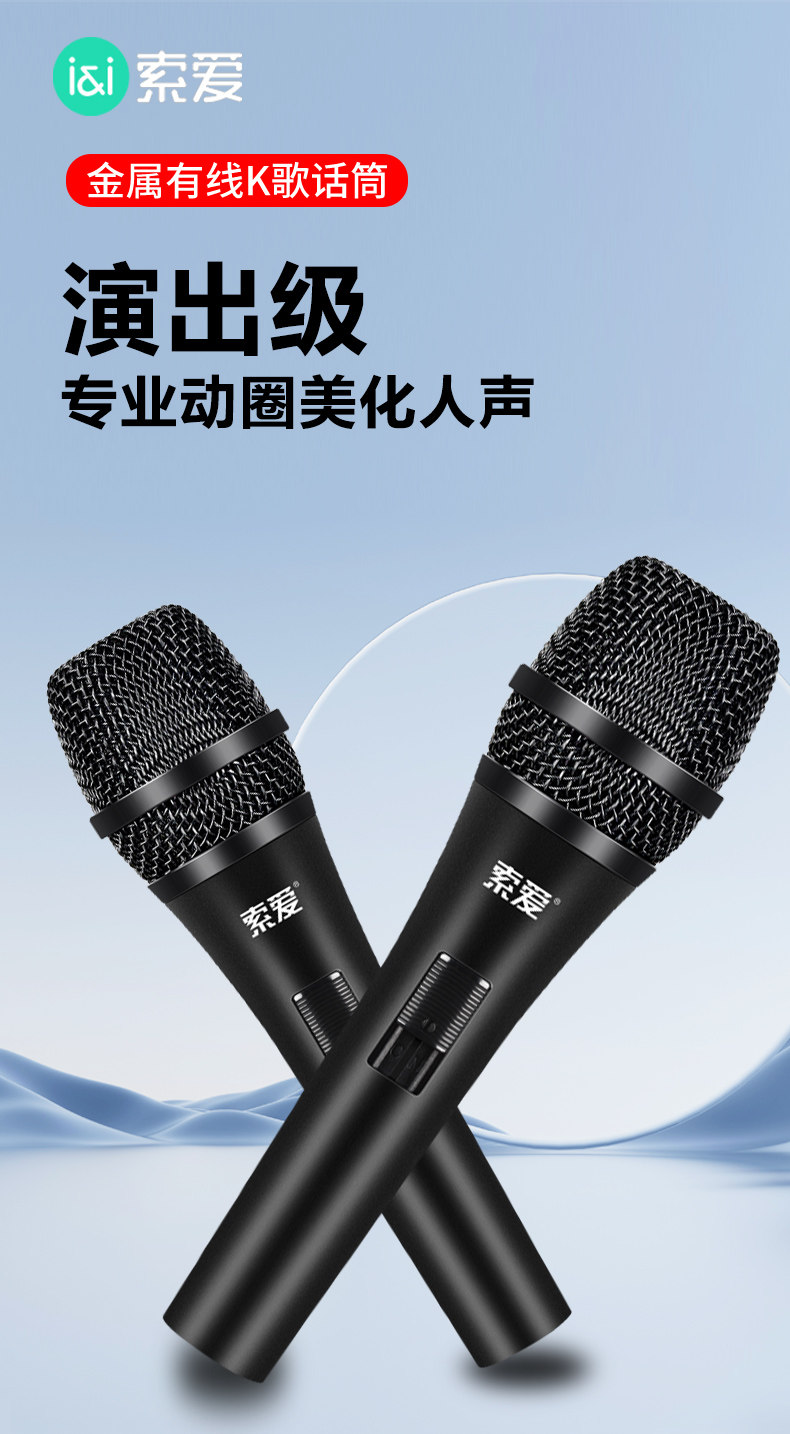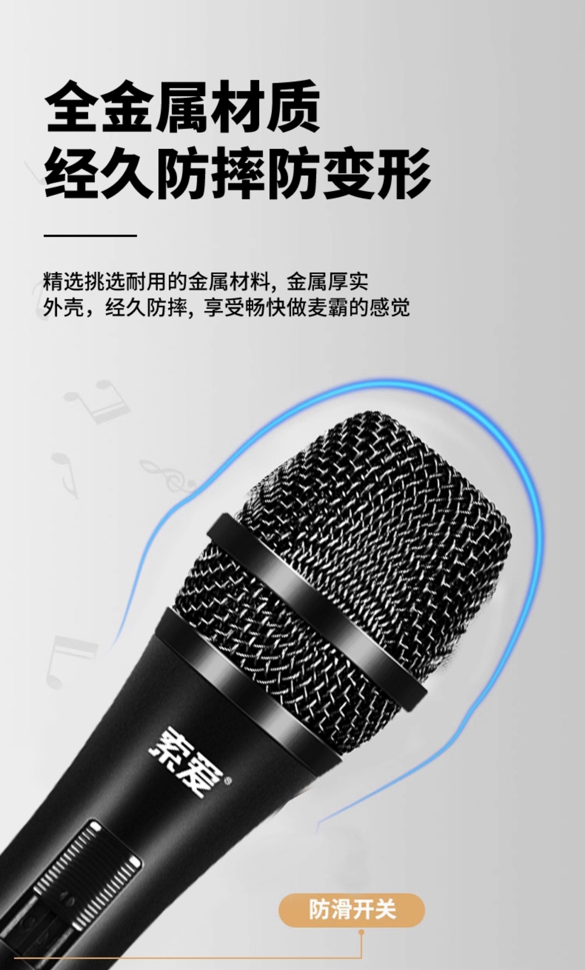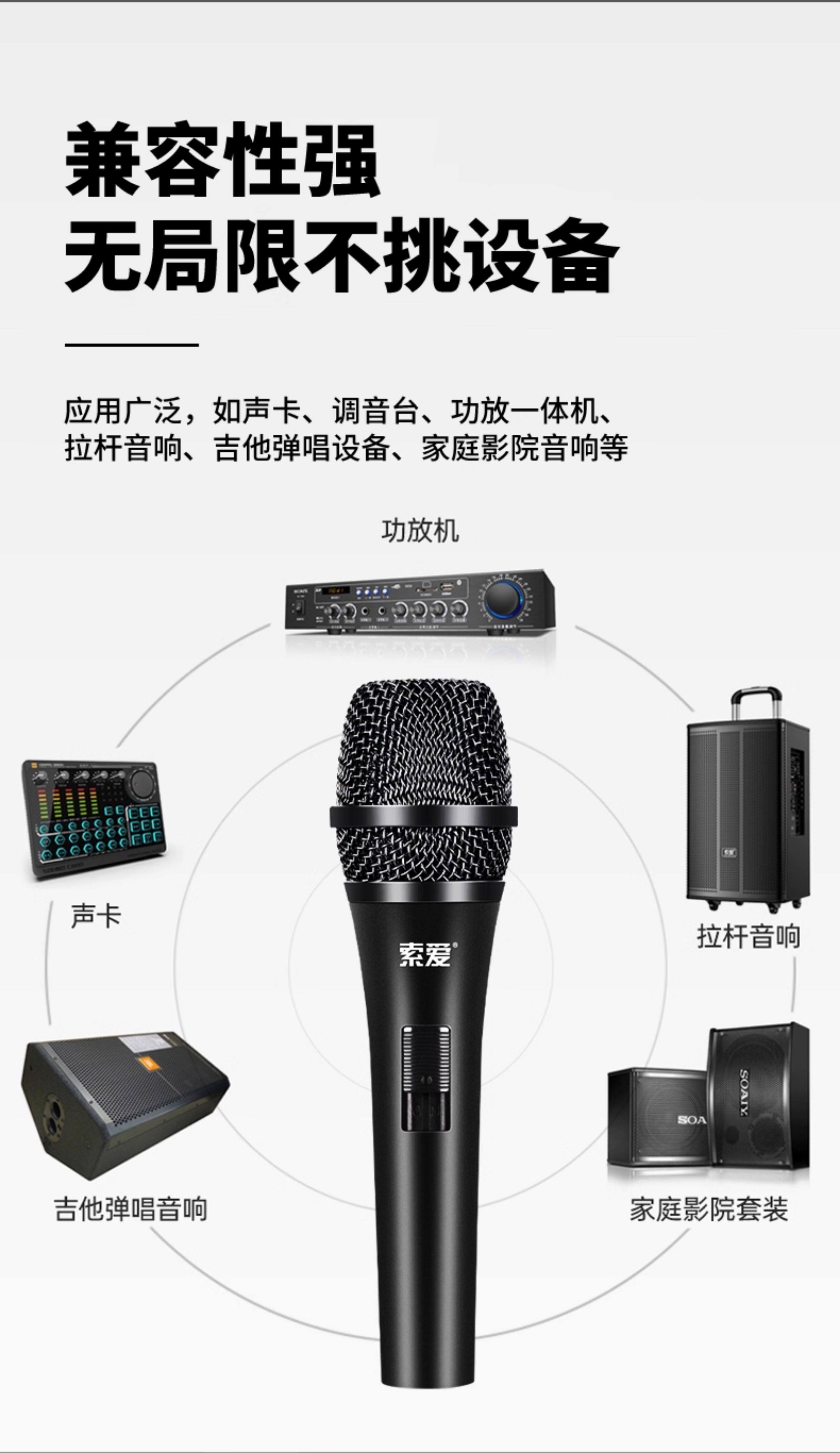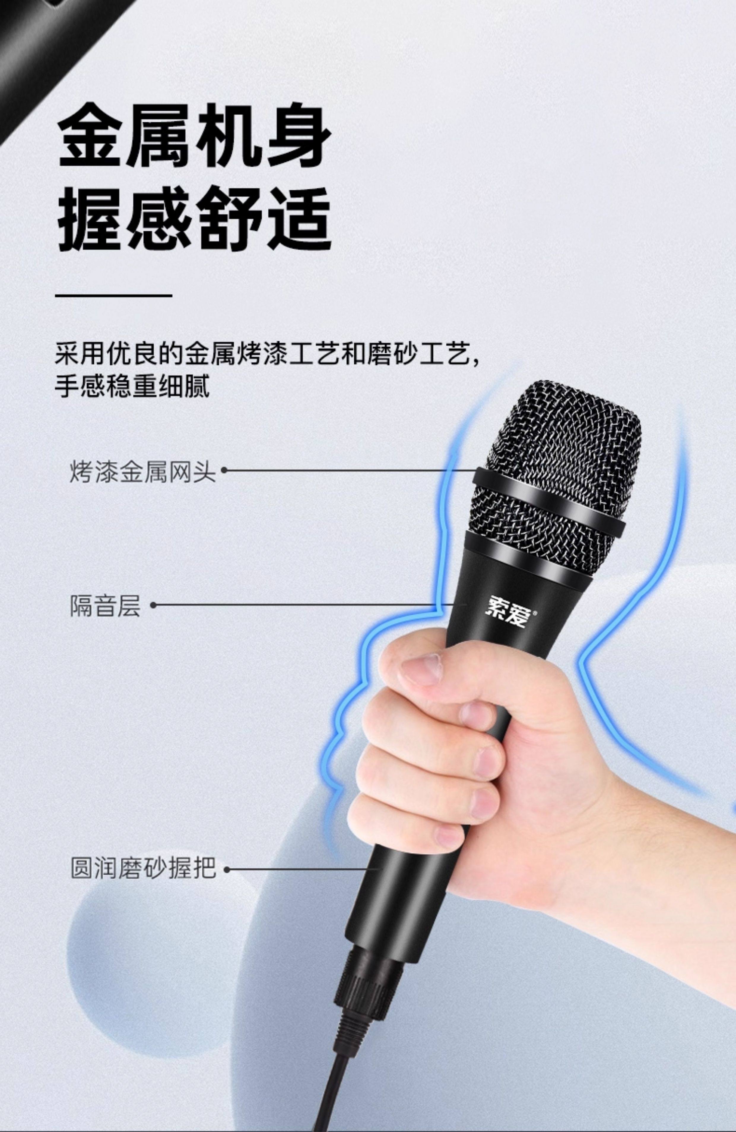 索爱金属有线话筒动圈麦克风专业家用K歌KTV唱歌舞台专用连音响