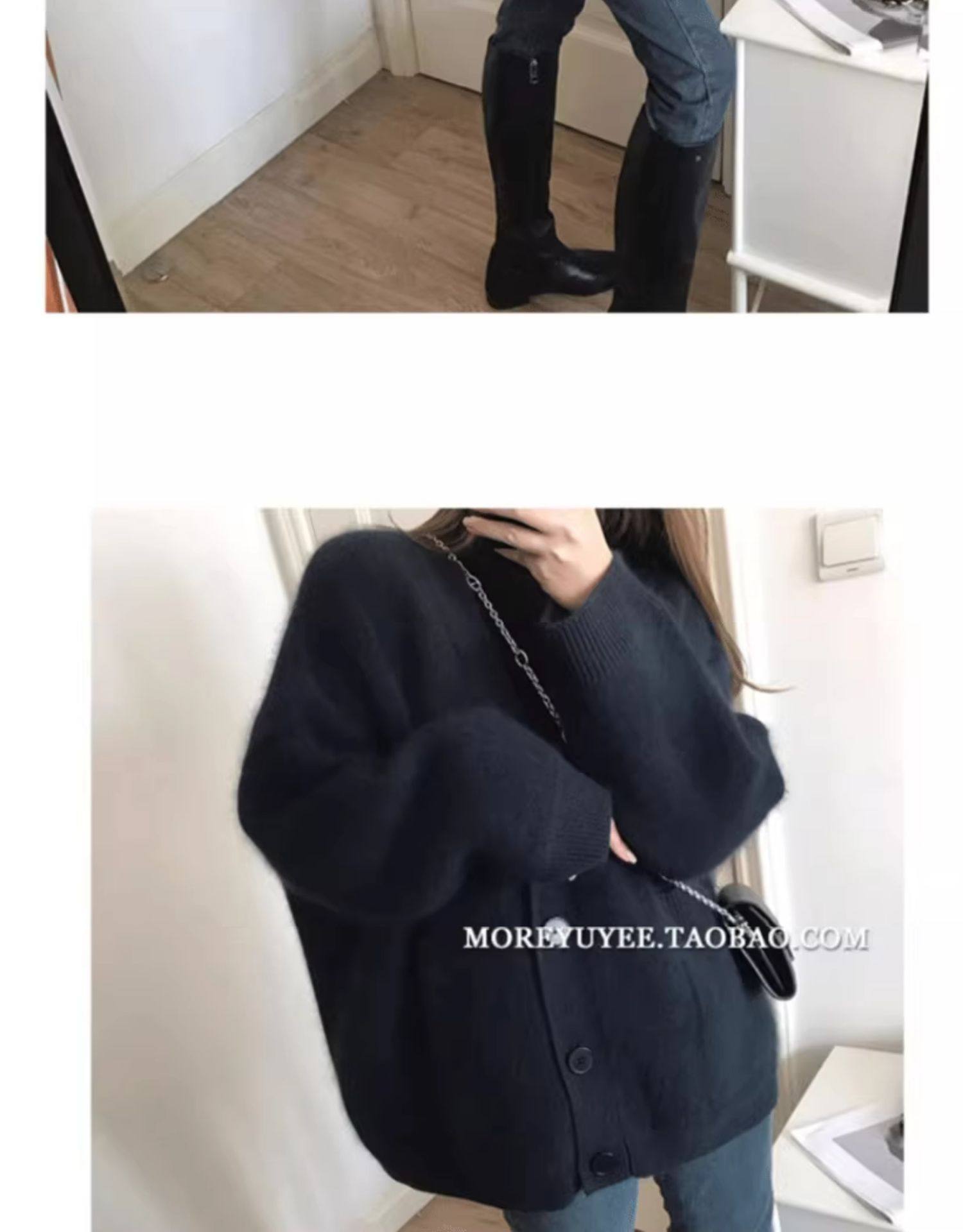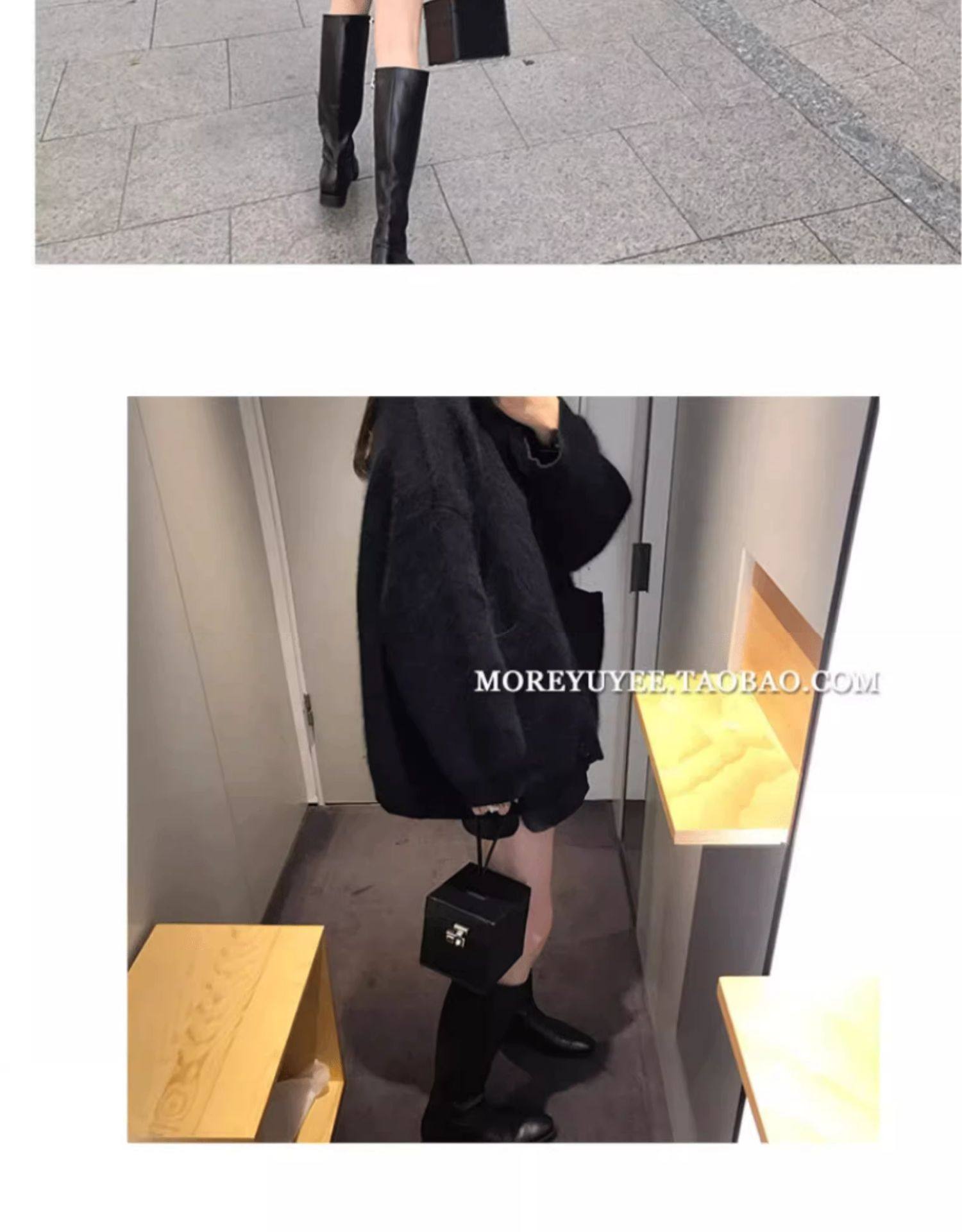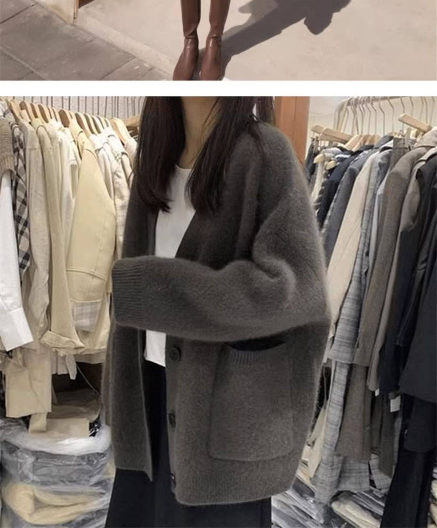 日系复古慵懒风加厚针织开衫女秋冬高级感灰色水貂绒软糯毛衣外套