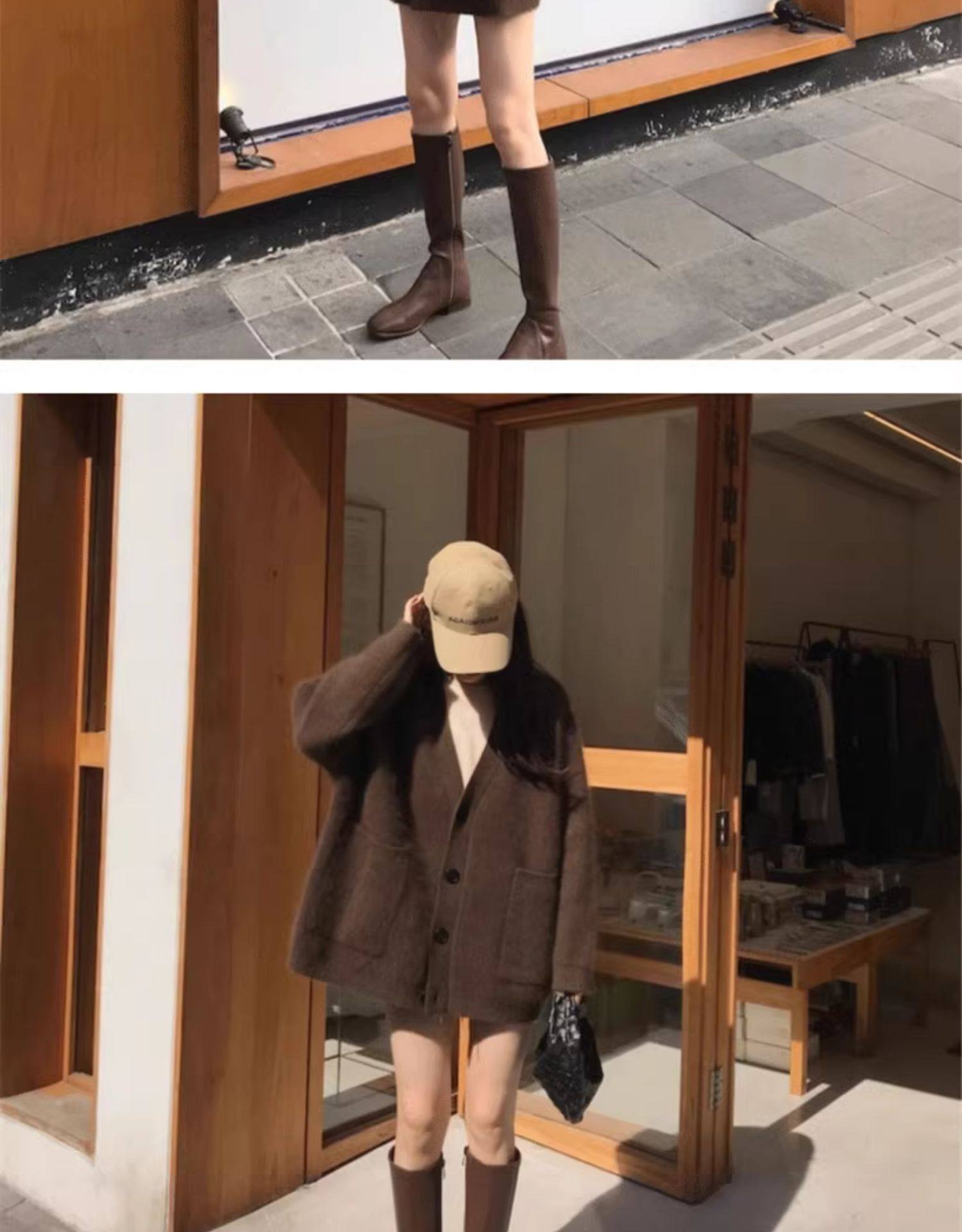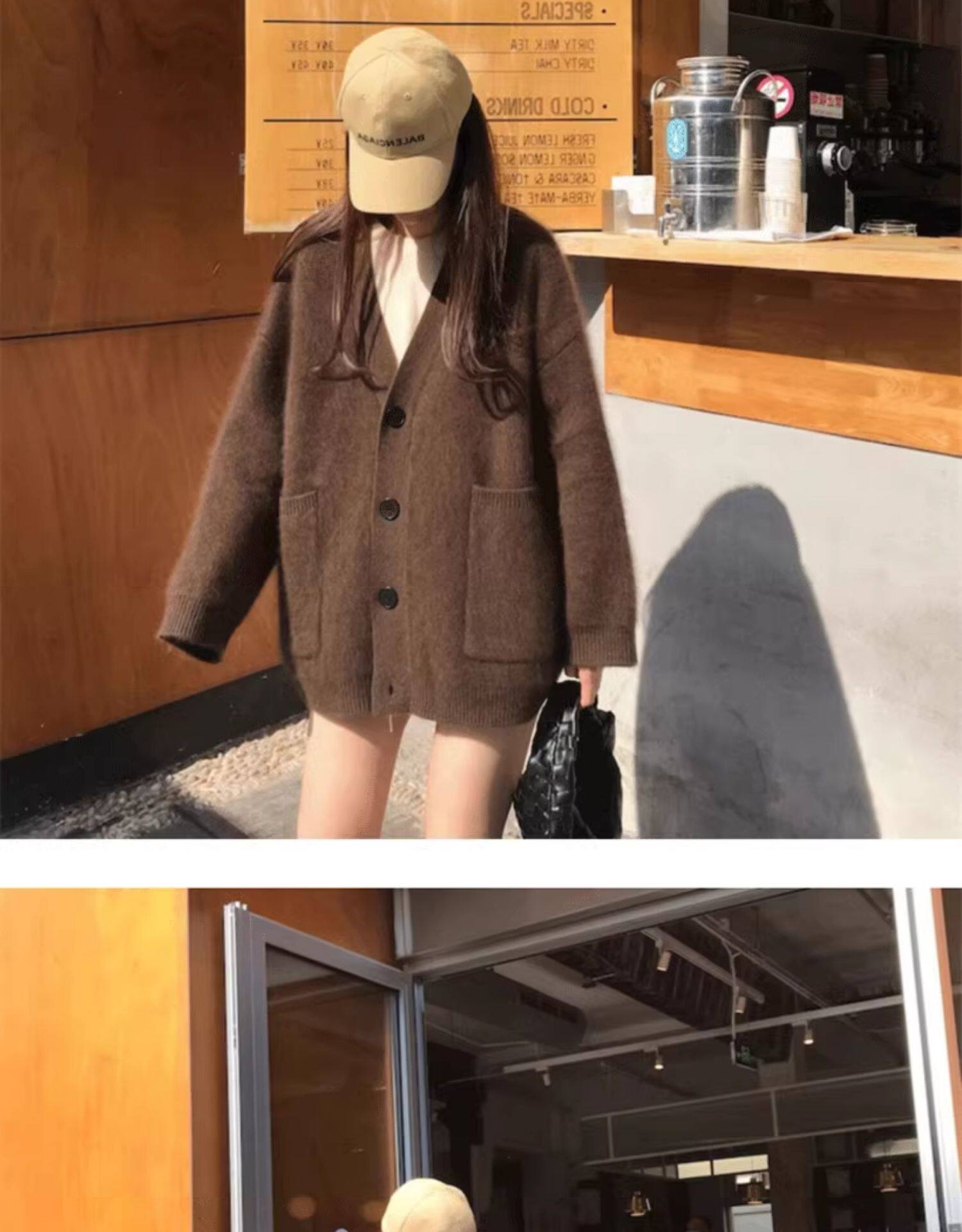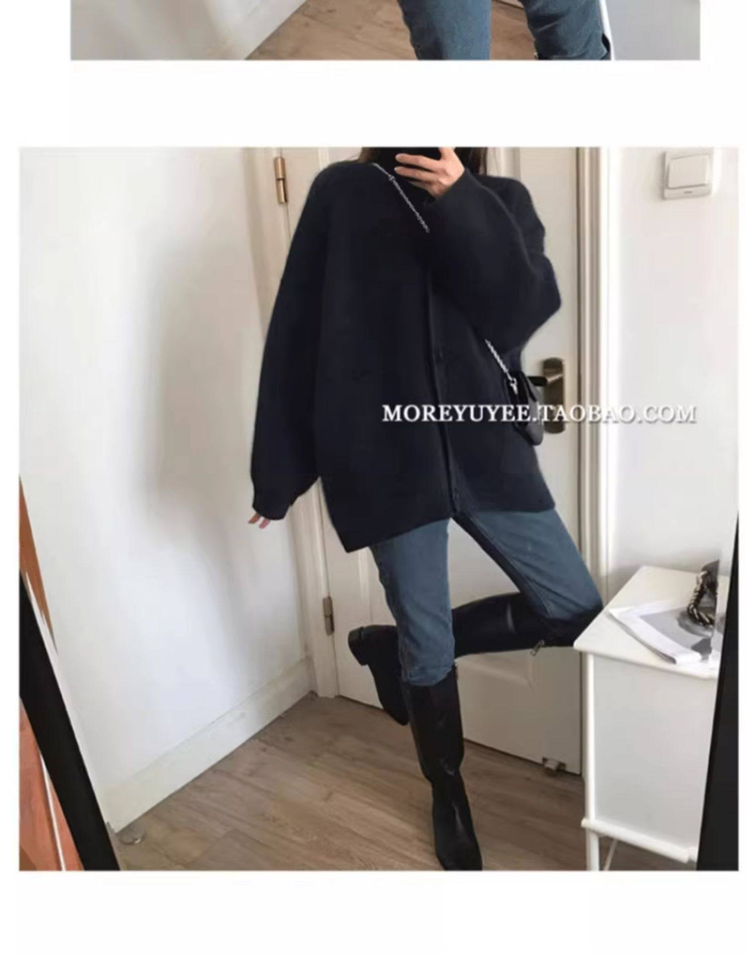 日系复古慵懒风加厚针织开衫女秋冬高级感灰色水貂绒软糯毛衣外套
