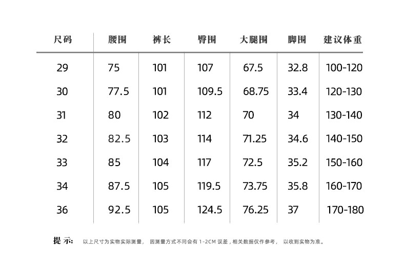 USA(inch) 28-30 30-32 32-34 34-38 38-42
