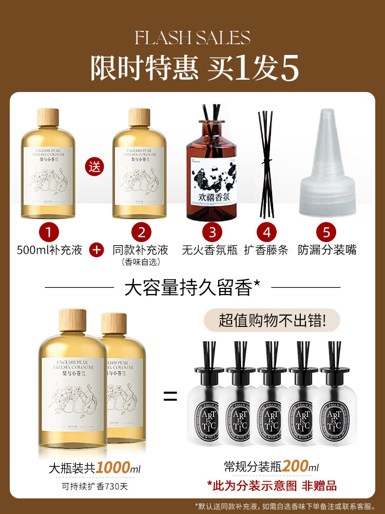 欢禧香氛无火香薰精油补充液大瓶室内家用持久酒店车载六重奏香水