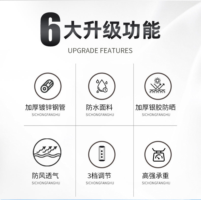Material Verdickte verzinkte Stahlrohrrippen + silberbeschichtetes Oxford-Tuch