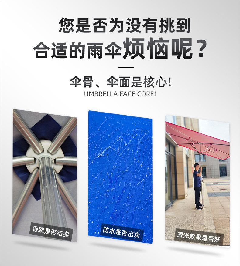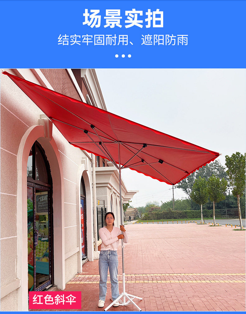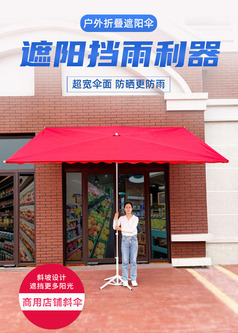 Sonnenschirm, abgeschrägter Regenschirm, Geschäft, kommerzielle Ladenfront, übergroßer Regenschirm, Außenstand, quadratisches, faltbares Dachvordach