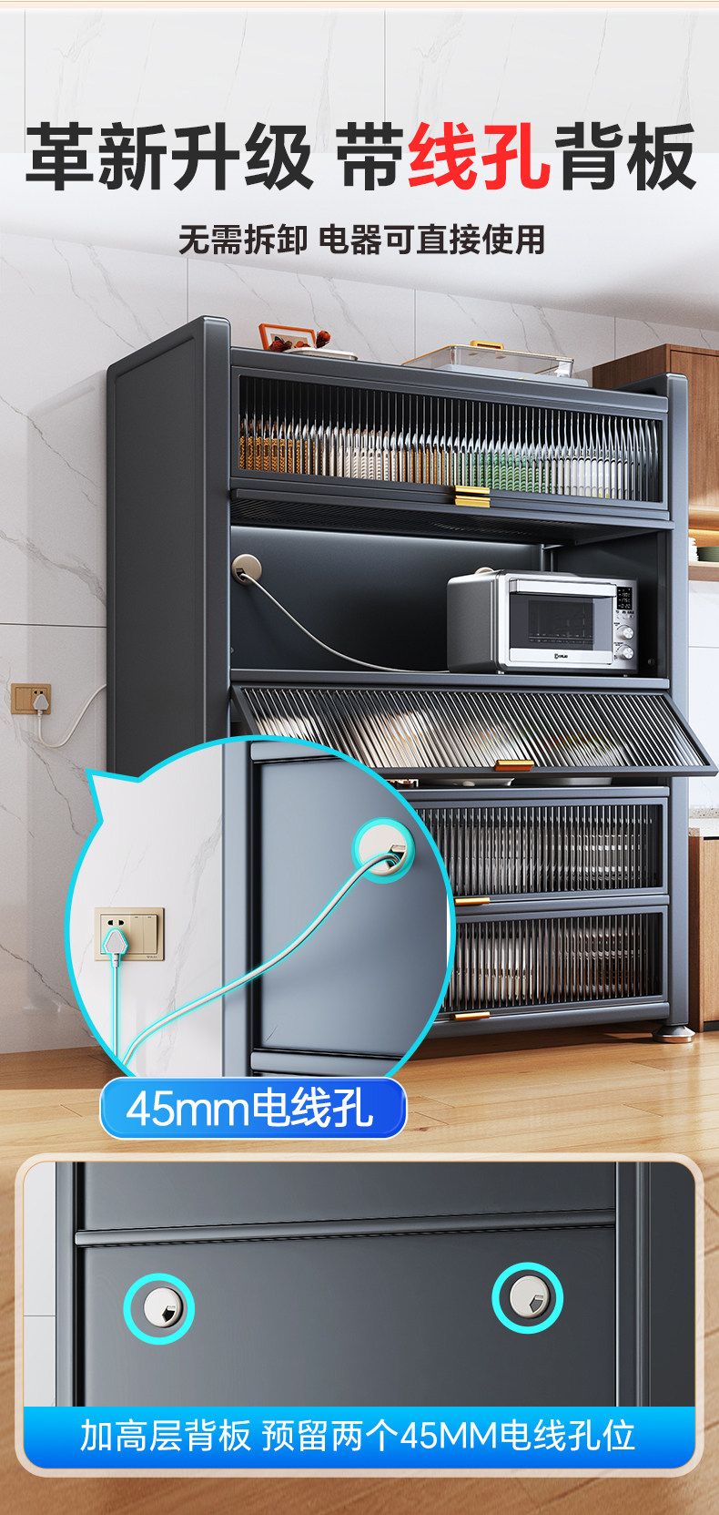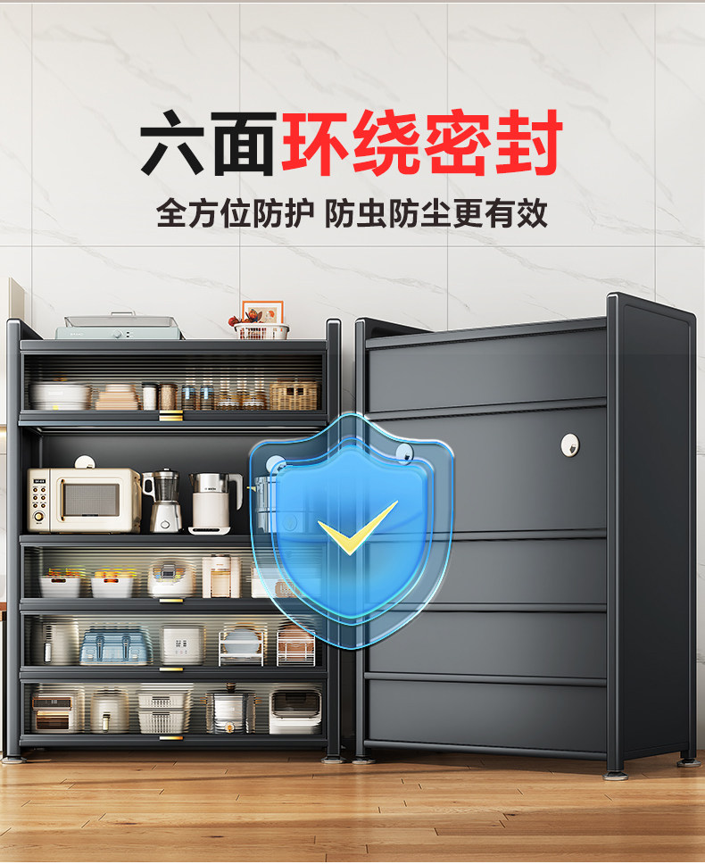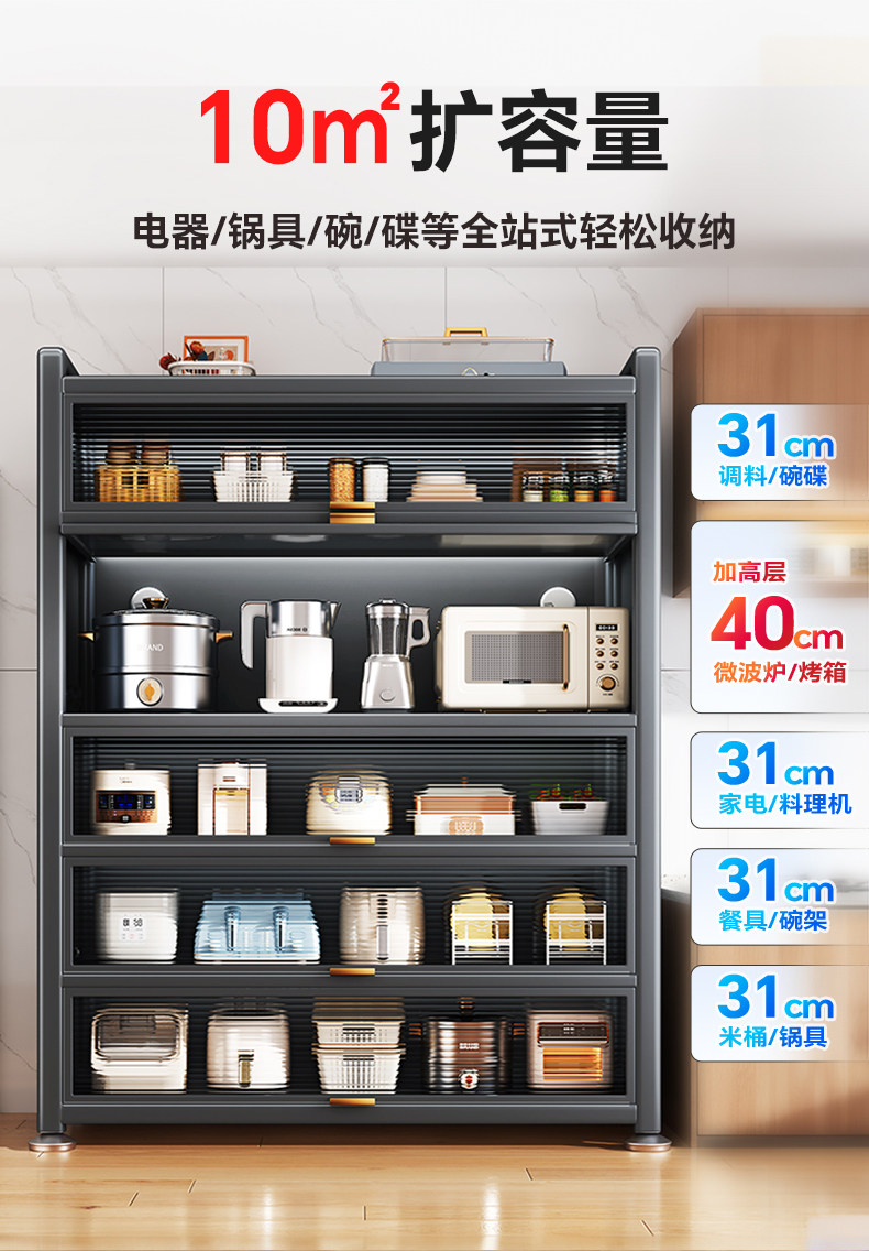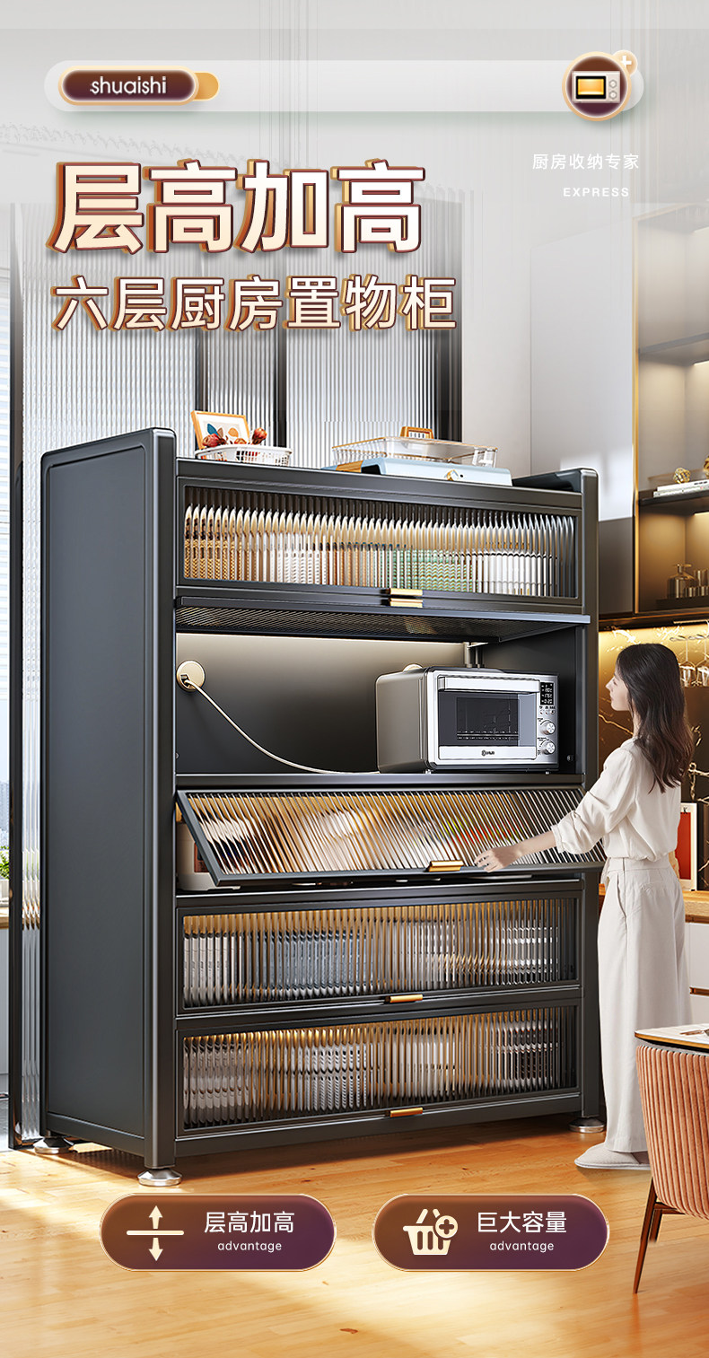 帅仕厨房置物架落地多层收纳柜子微波炉家用碗柜多功能橱柜储物柜