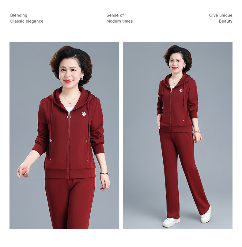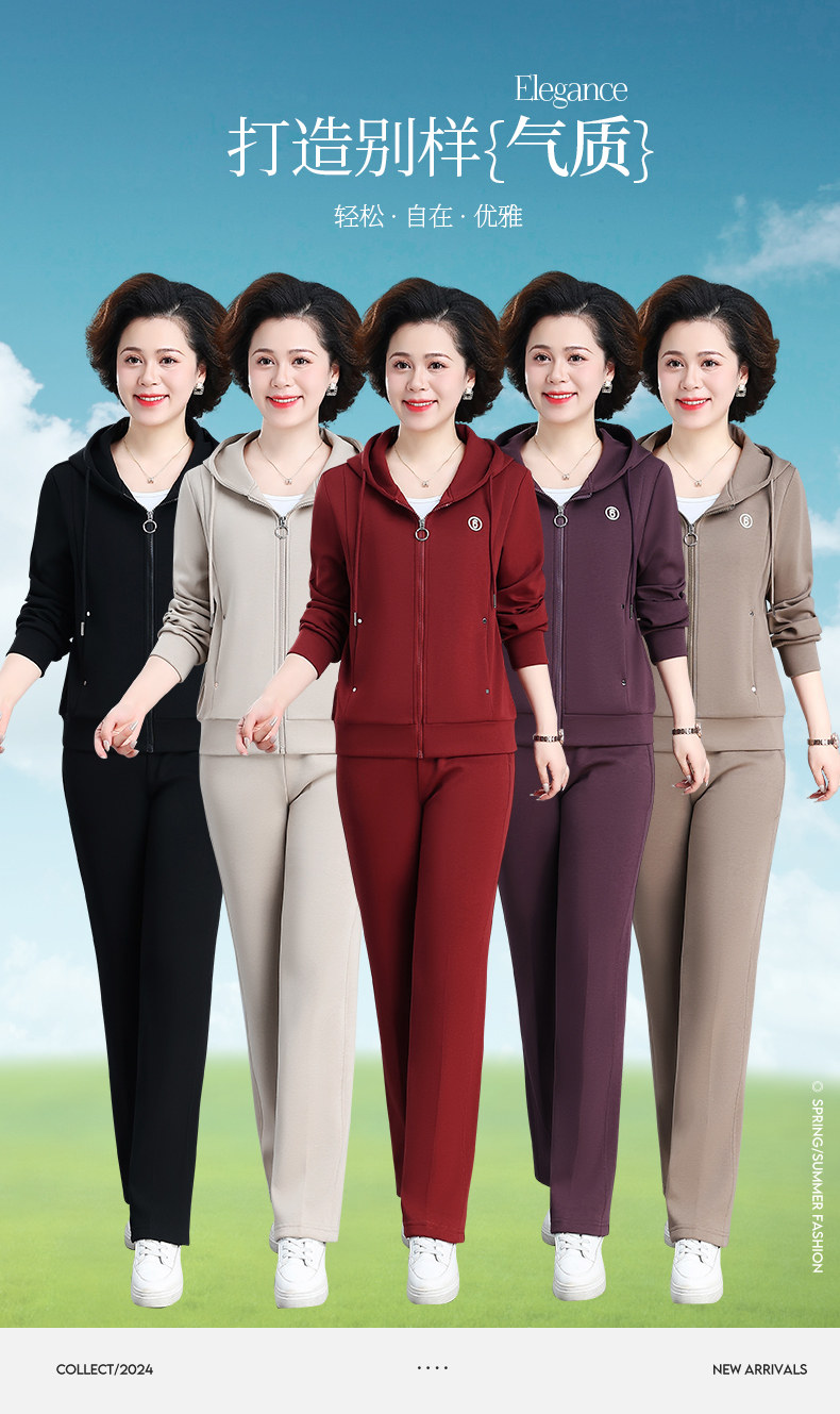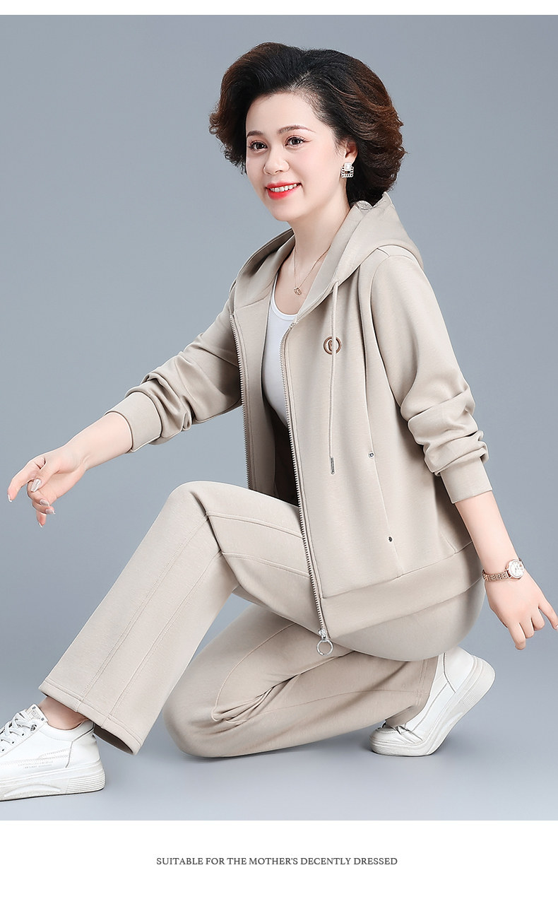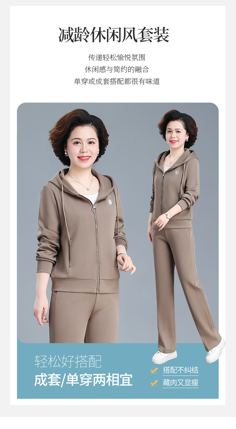 Mamas Herbst-Sportbekleidungsanzug im neuen Stil, zweiteiliges Set, 50-jährige Damen mittleren Alters und ältere Frauen, Frühlings- und Herbst-Sweatshirtjacke
