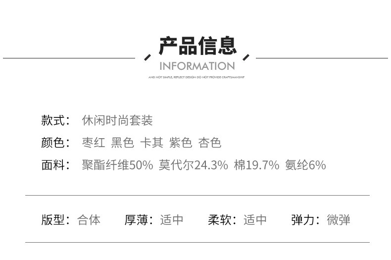 Materialzusammensetzung 50 % Polyesterfaser, 24,3 % Modalfaser, 19,7 % Baumwolle, 6 % elastische Polyurethanfaser (Spandex)
