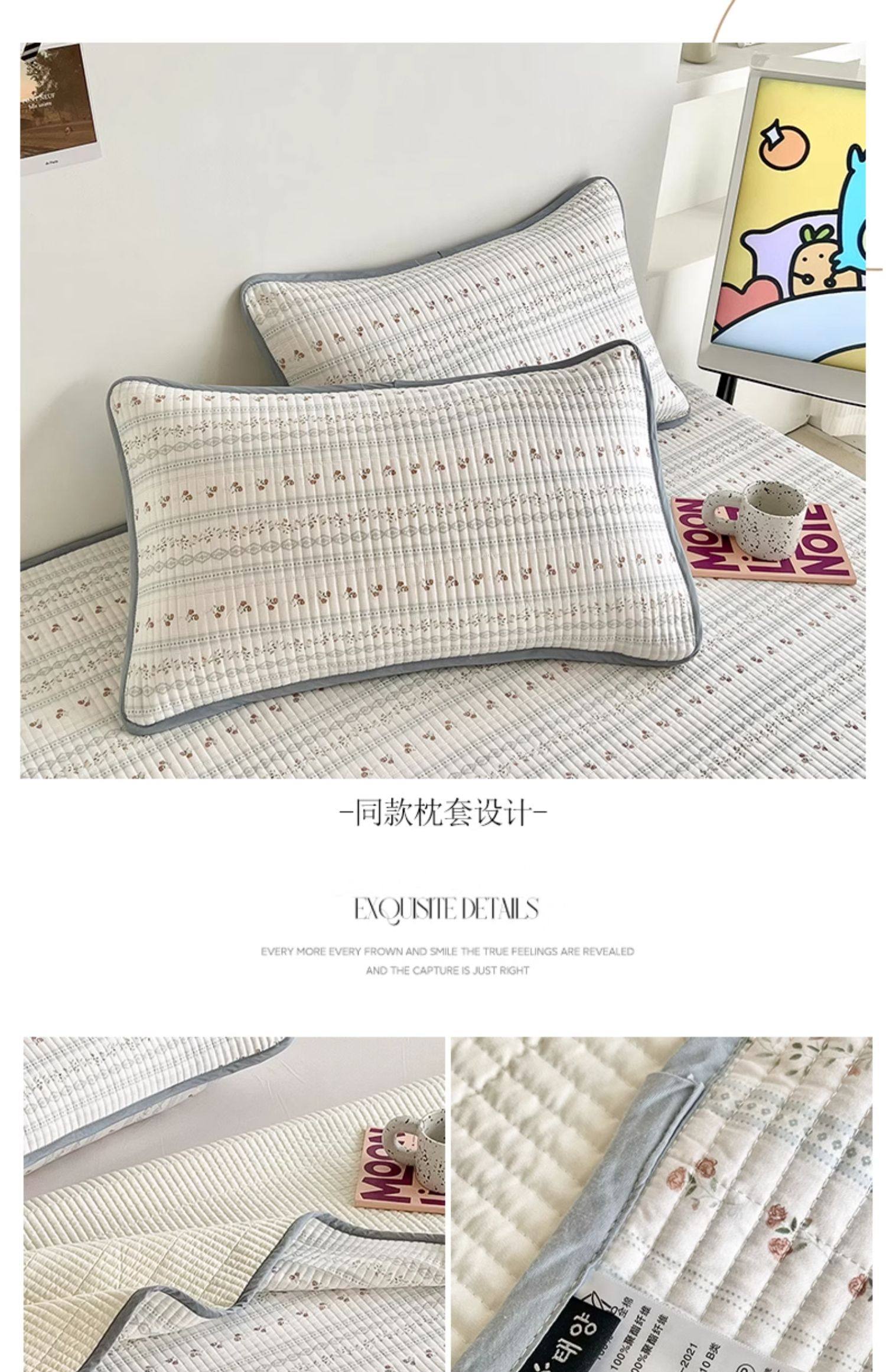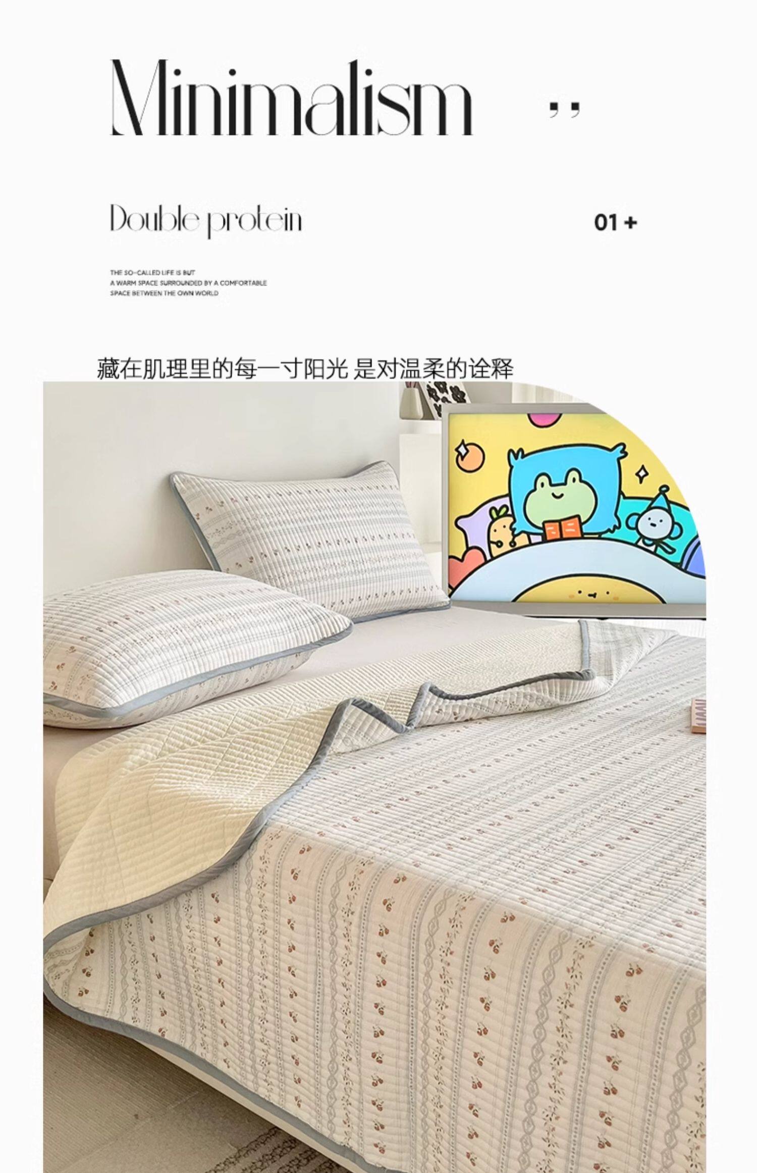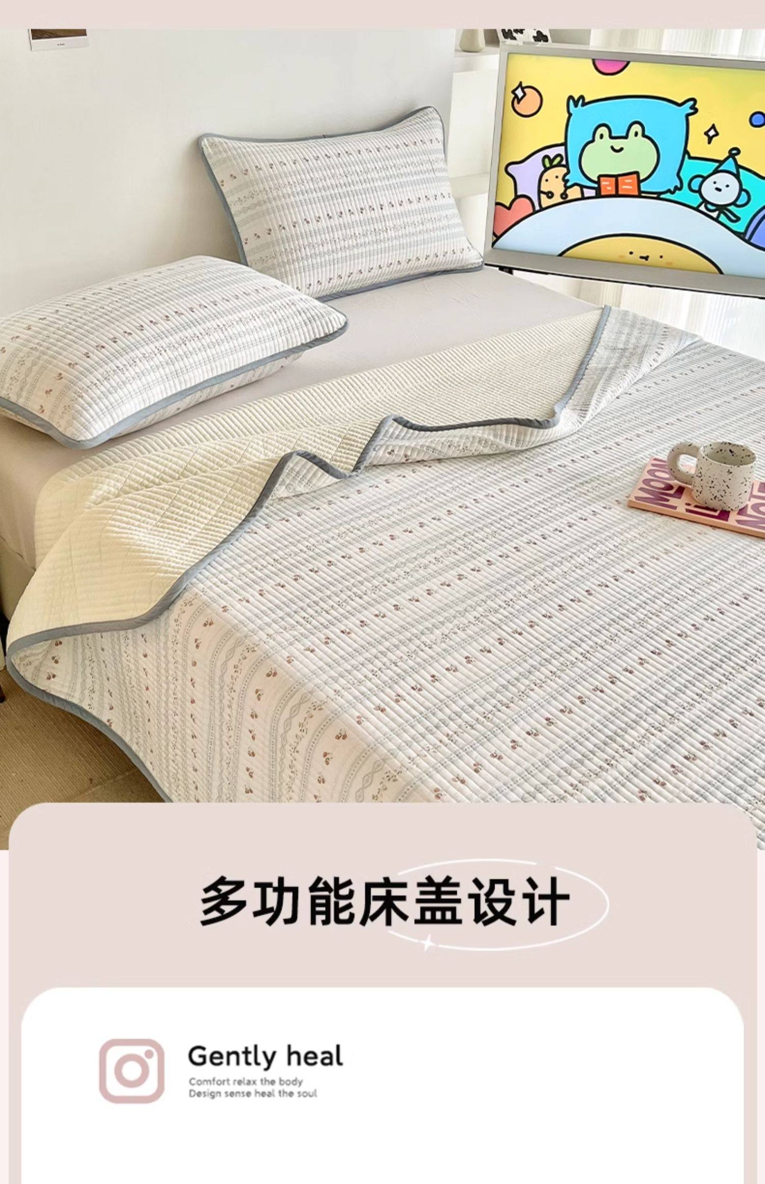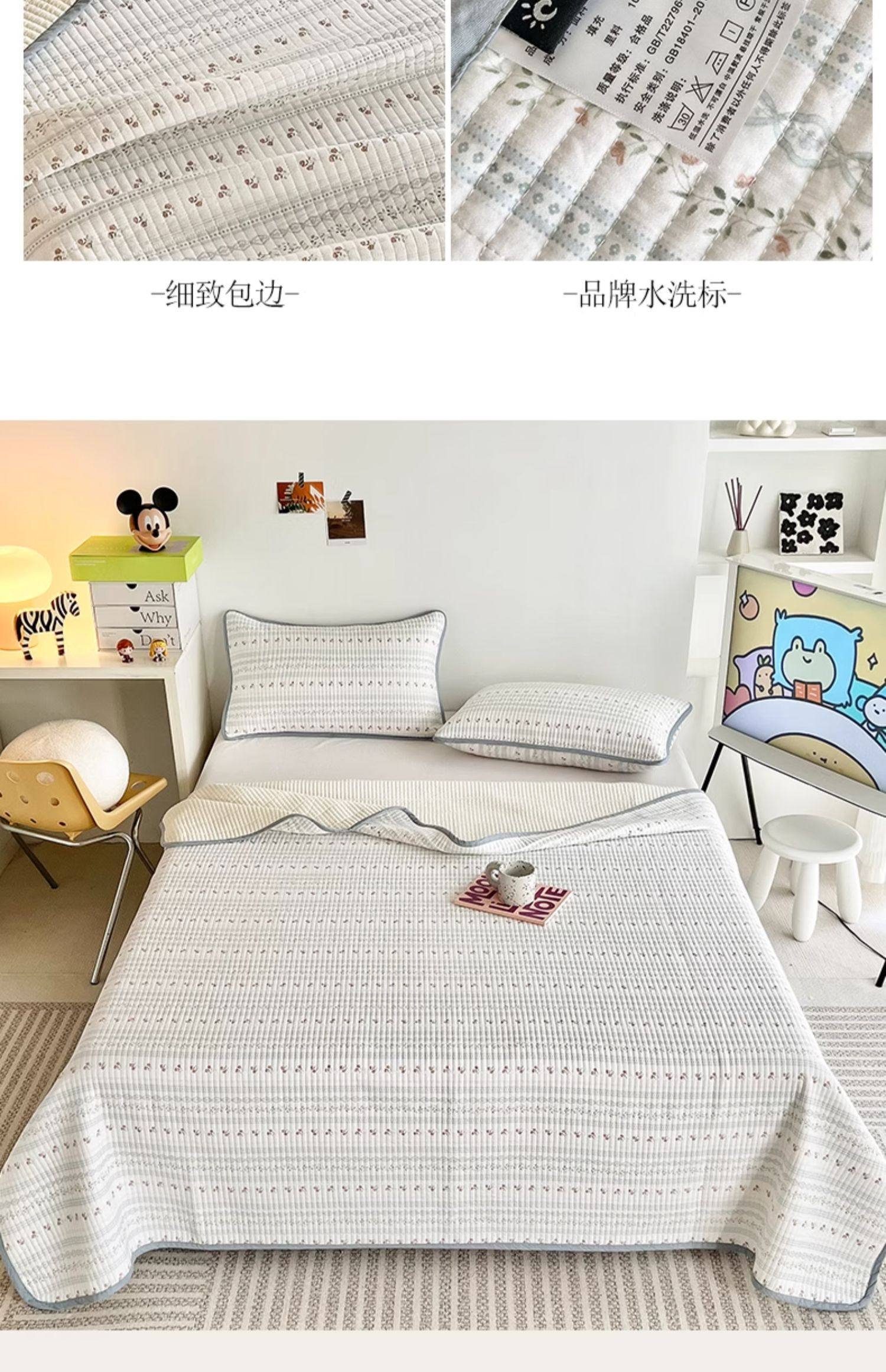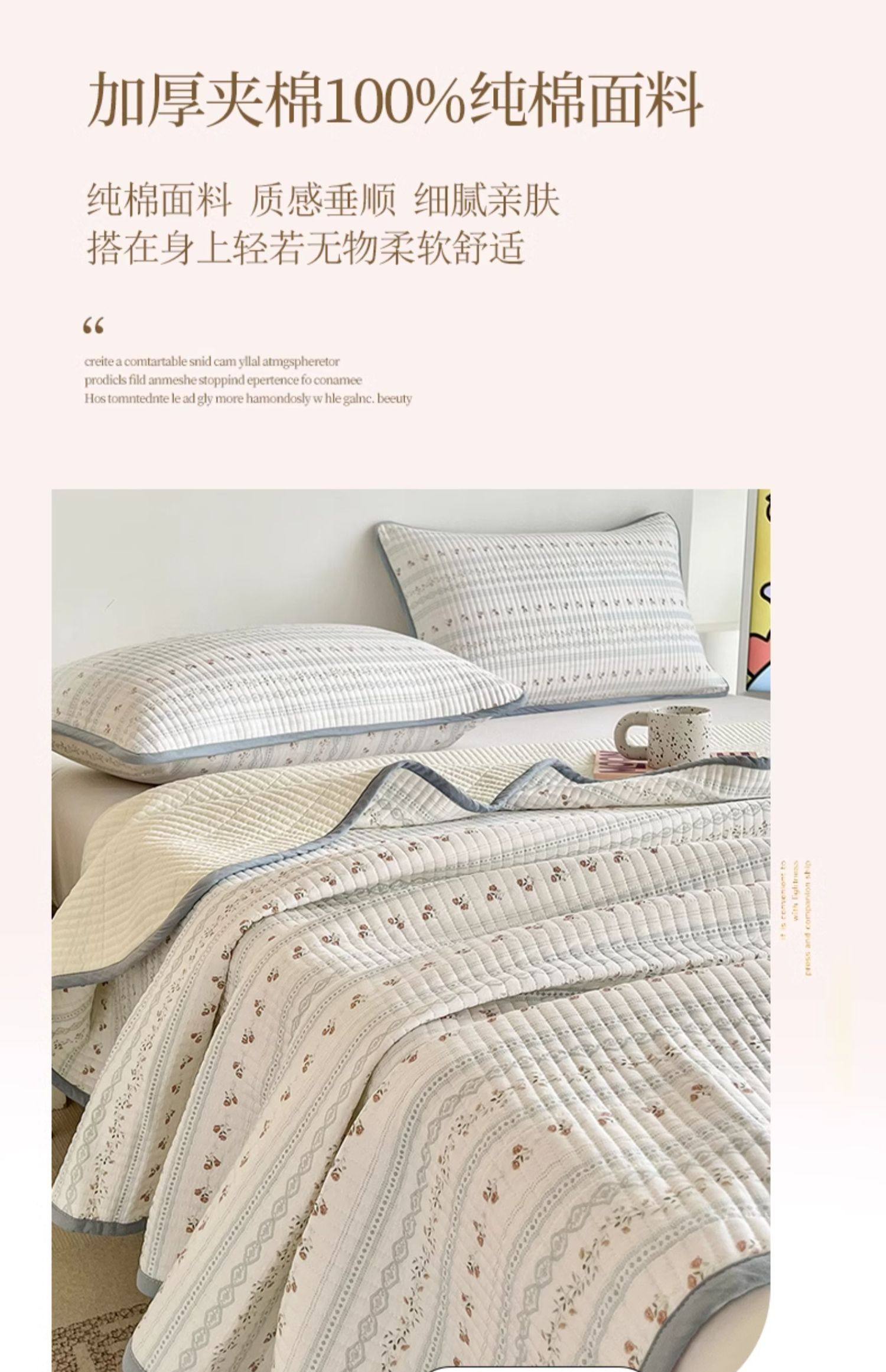 New Pure Cotton Bed Cover, Single Piece, Quilted, All-Cotton Tatami Bed Sheet, Suitable for All Seasons, Three-Piece Set, Thickened and Non-Slip
