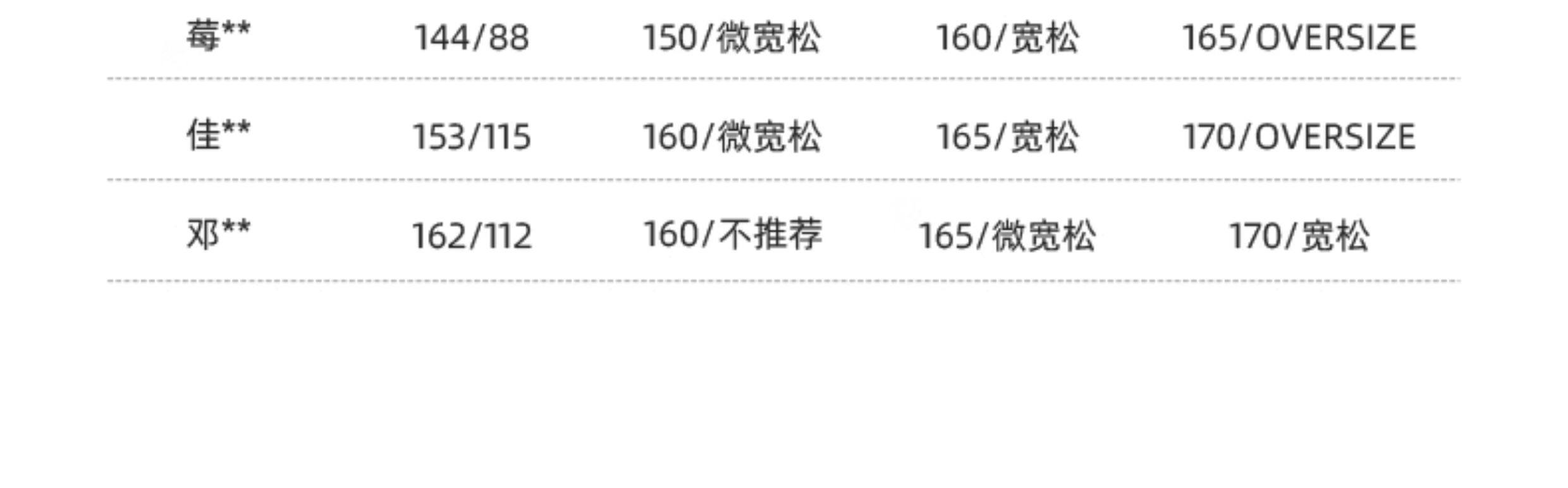 China (cm) 160-165/84-86 165-170 / 88-90 167-172 / 92-96 168-173 / 98-102 170-176 / 106-110