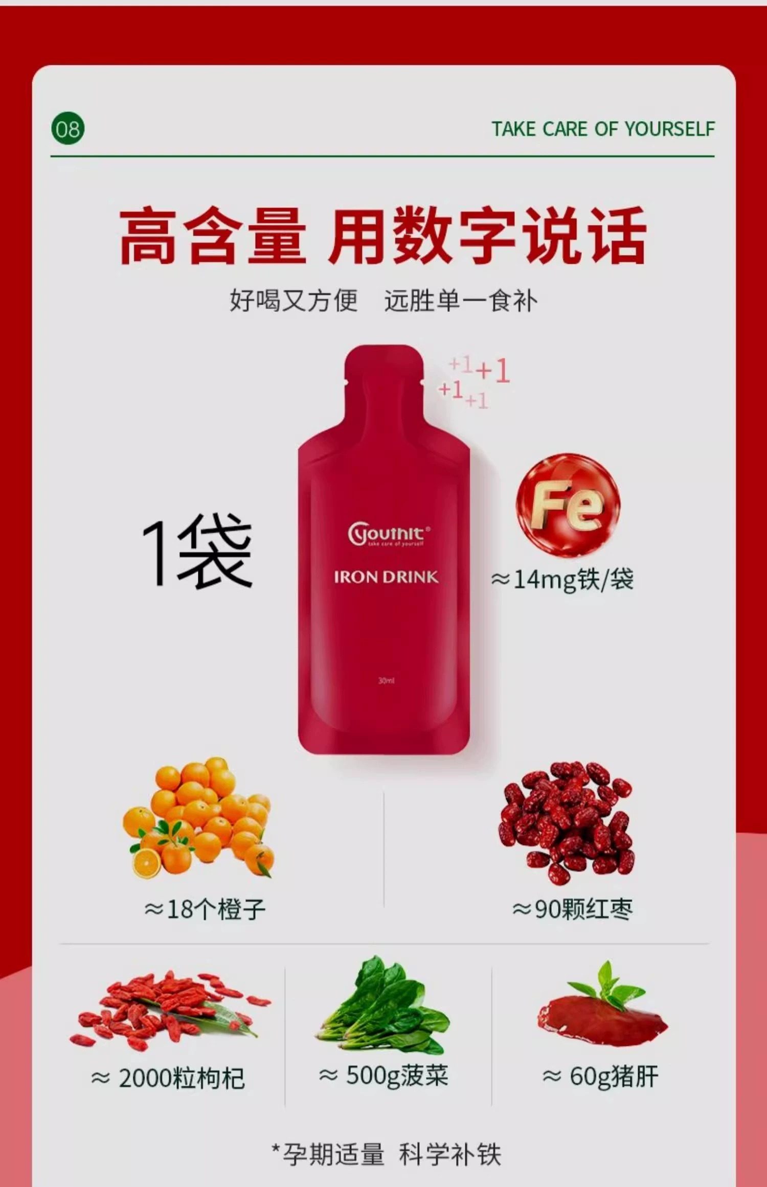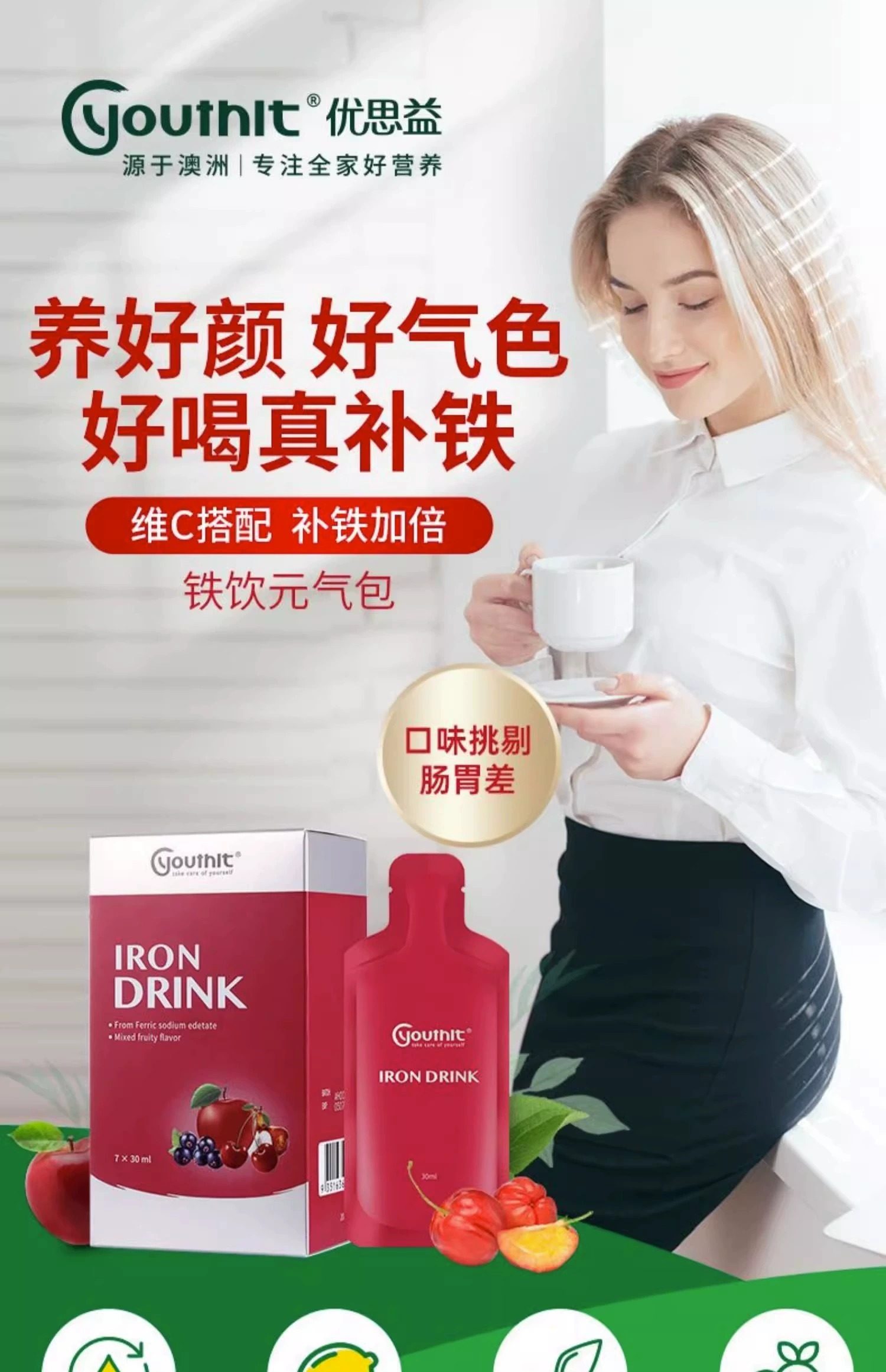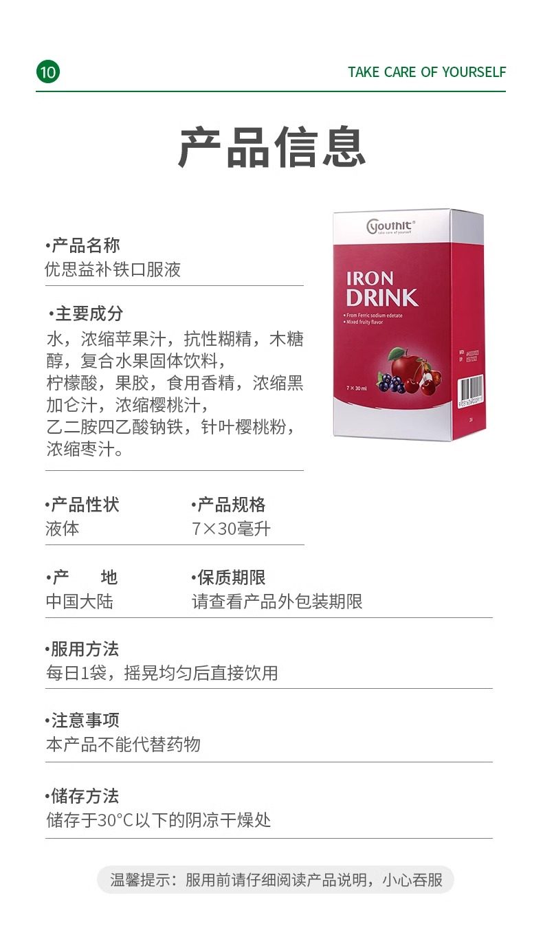 Youthit/优思益补铁口服液铁饮元气包成人备孕孕妇第三代新型铁