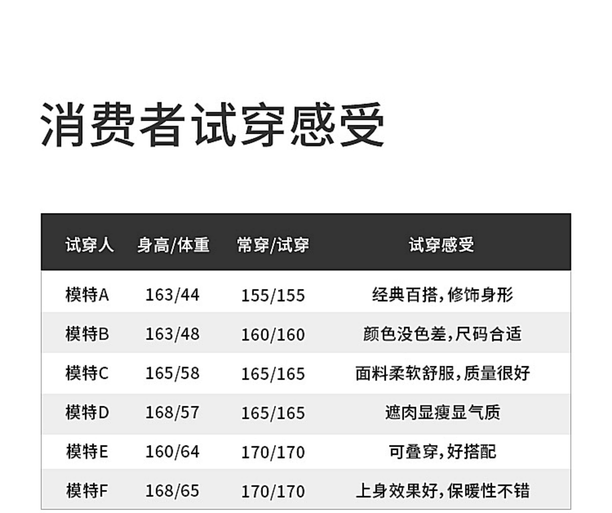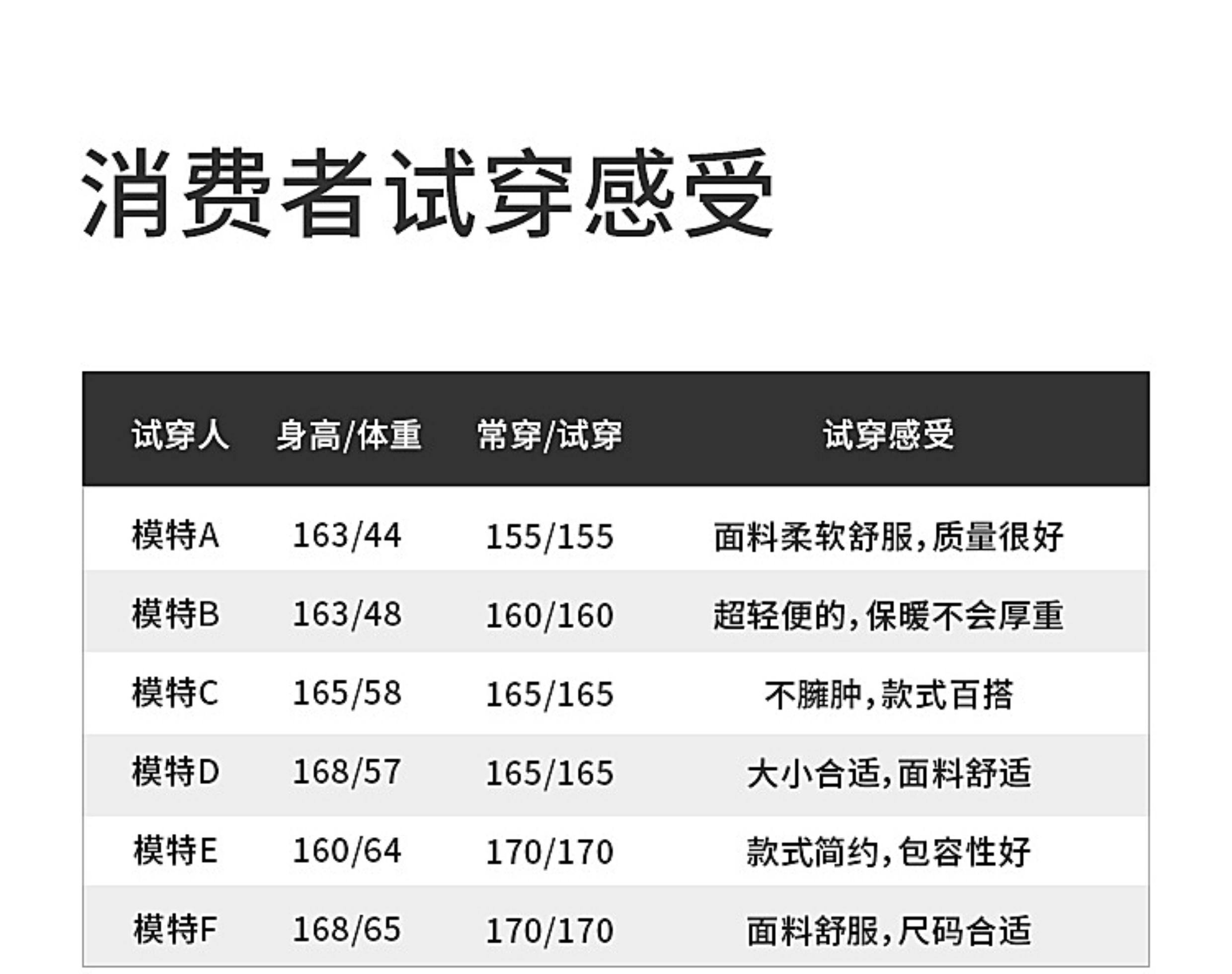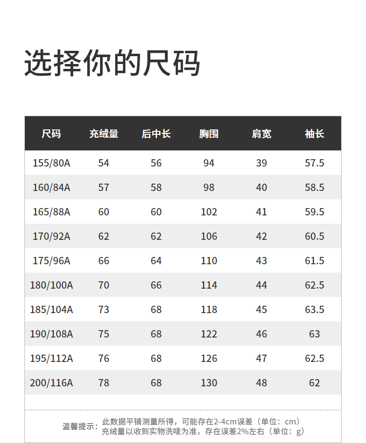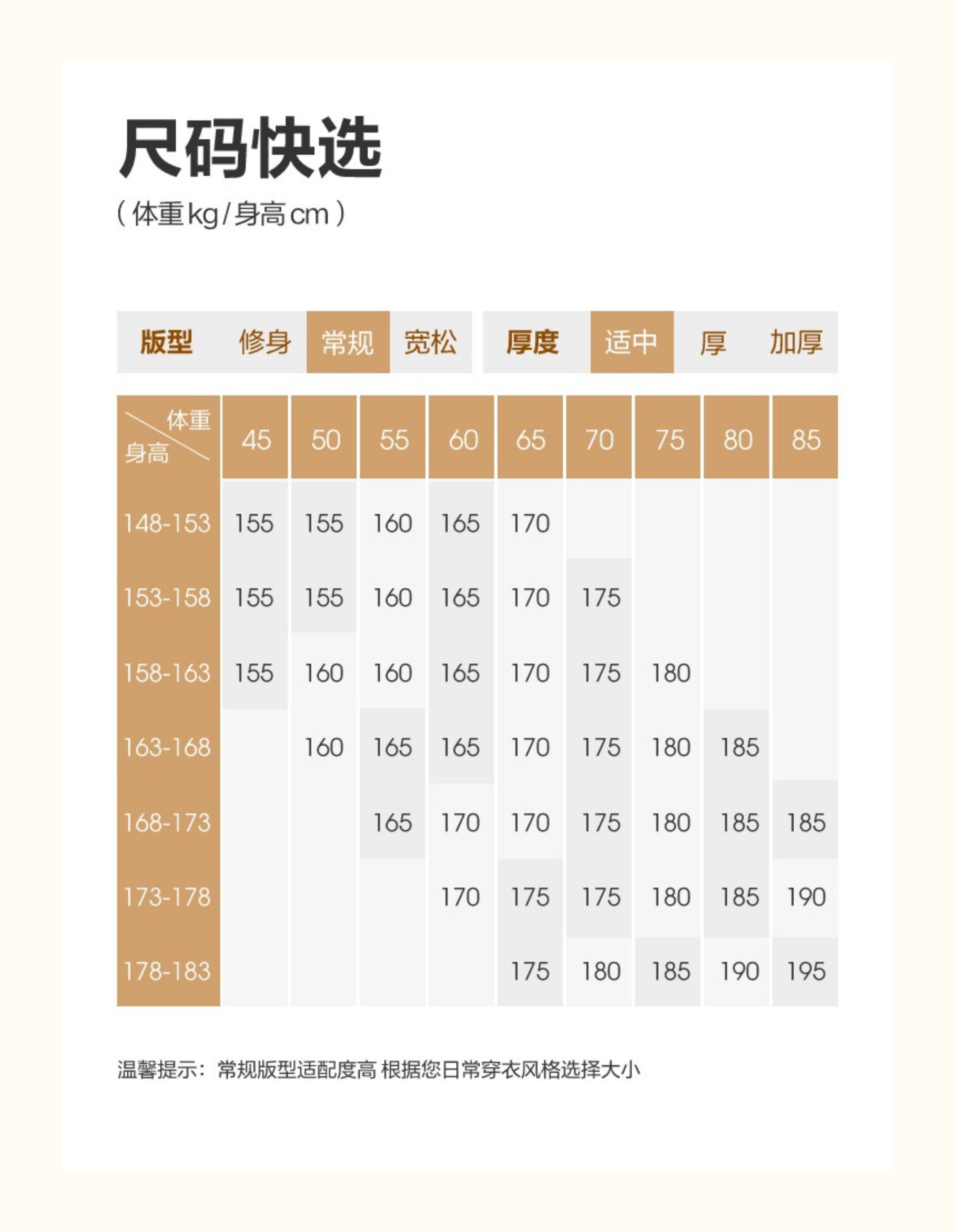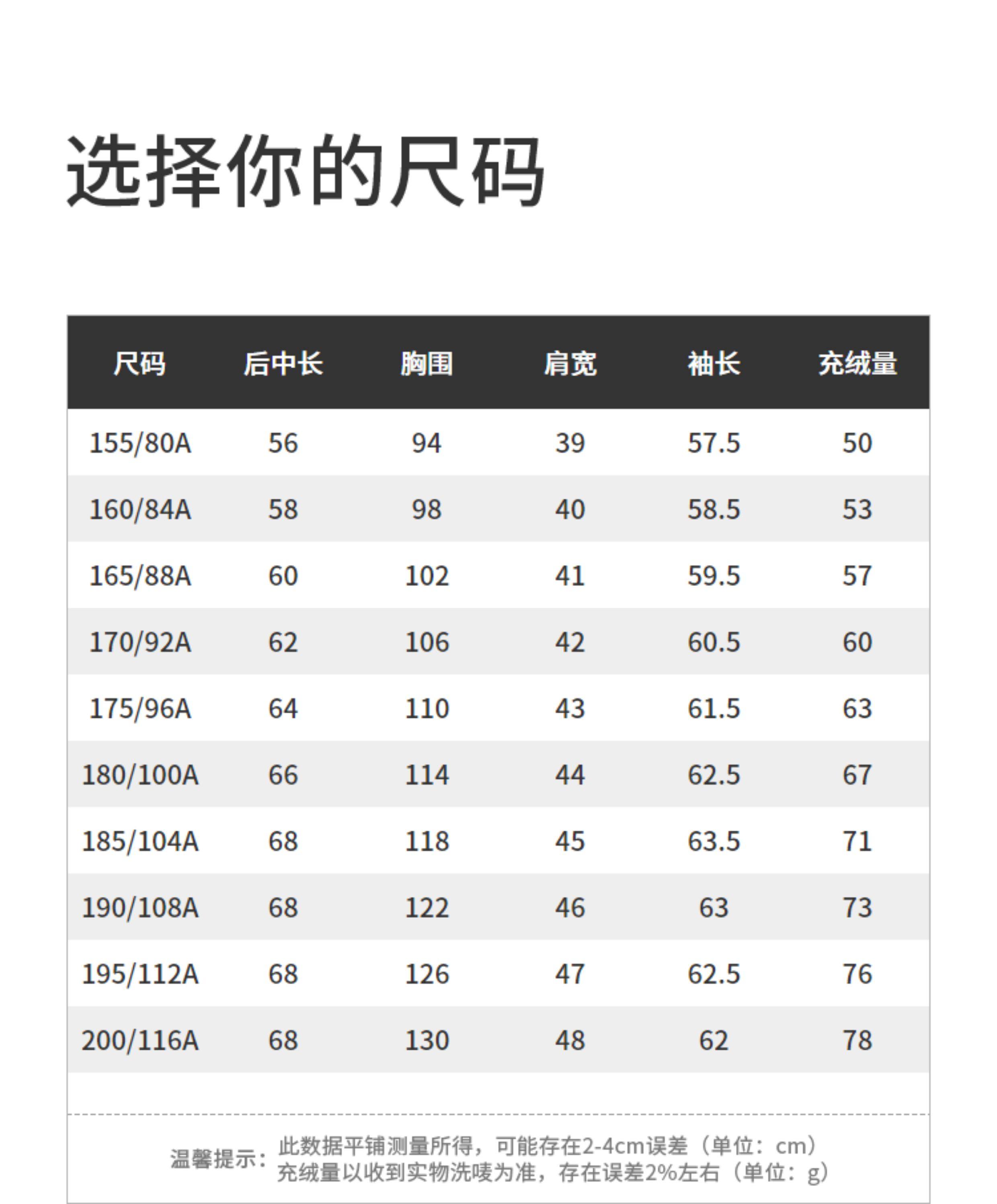 China (cm) 160-165/84-86 165-170 / 88-90 167-172 / 92-96 168-173 / 98-102 170-176 / 106-110