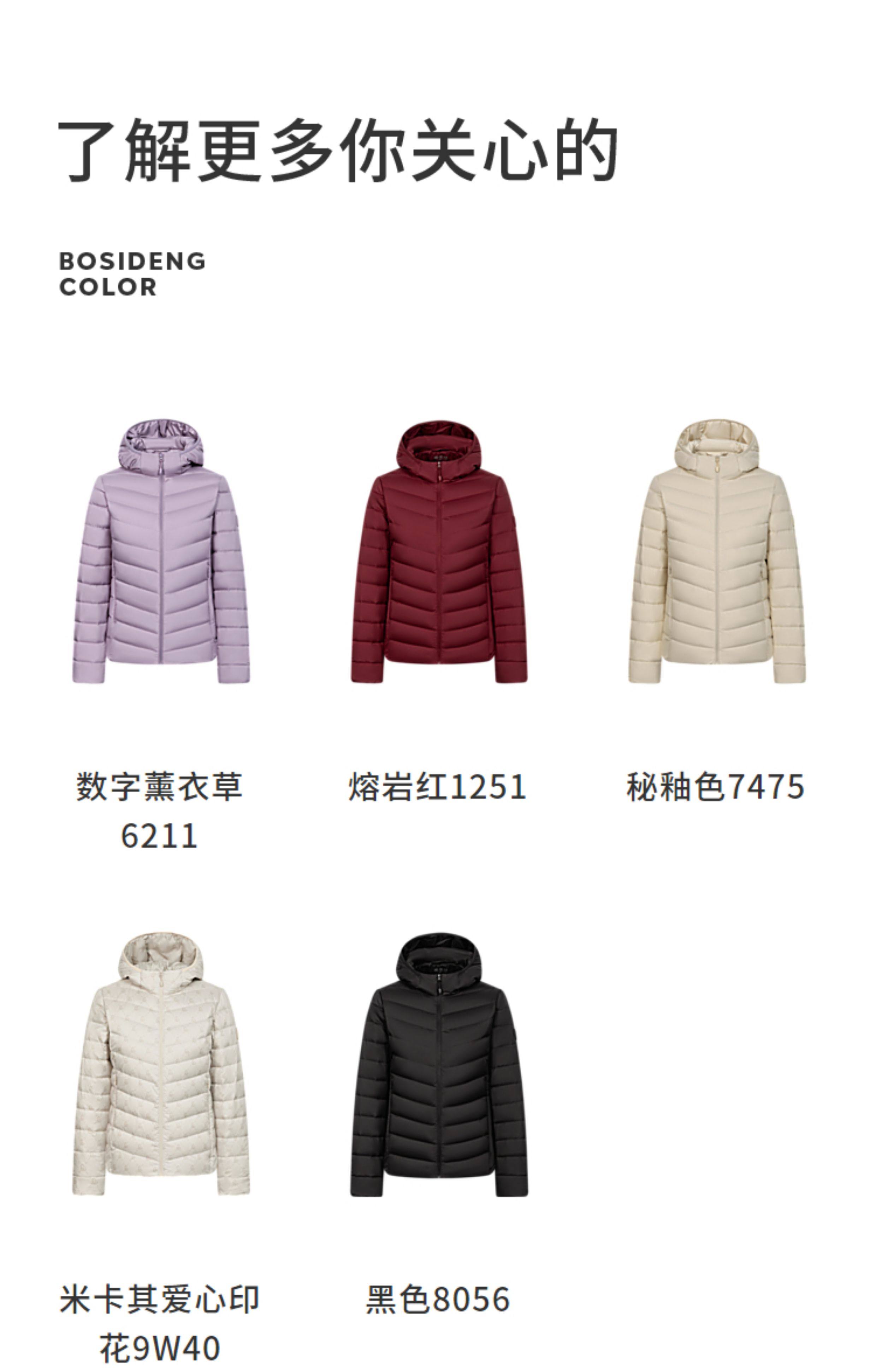Color Classification Black 8056 [Water Ripple] Quality Goose down,Cream Rice 7794 [Water Ripple] Quality Goose down,Rock Gray 8088 [Water Ripple] Quality Goose down,Gravel Brown 7B51 [Water Ripple] Quality Goose down,Sunday Blue 5943 [Water Ripple] Quality Goose down,Sumei Powder 1617 [Water Ripple] Quality Goose down,Cloud Smoke Green 4698 [Water Ripple] Quality Goose down,Qingshan Blue 5702 [Water Ripple] Quality Goose down,Lavender Purple 6001 [Water Ripple] Quality Goose down,Birch Color 8119 [Water Ripple] Quality Goose down,Secret Glaze Color 7475 [Hooded] High Quality Duck down,Digital Lavender 6211 [Hooded] Premium Duck down,Black 8056 [Hooded] High Quality Duck down,Dark Red [Hooded] High-Quality Duck down,Black 8056 [Stand Collar Style] High Quality Duck down,Mikaqi Heart Print 9W40 [Stand Collar] Premium Duck down,Deep Burgundy 1242 [Mandarin Collar] Premium Duck down,Digital Lavender 6211 [Stand Collar Style] Premium Duck down,Soft Mist Powder 1827 [Stand Collar Style] Premium Duck down,Gray Grey Heart Embossed 9Cn5 [Stand Collar Style] Premium Duck down,Cloud Blue 5364 [Stand Collar] Premium Duck down