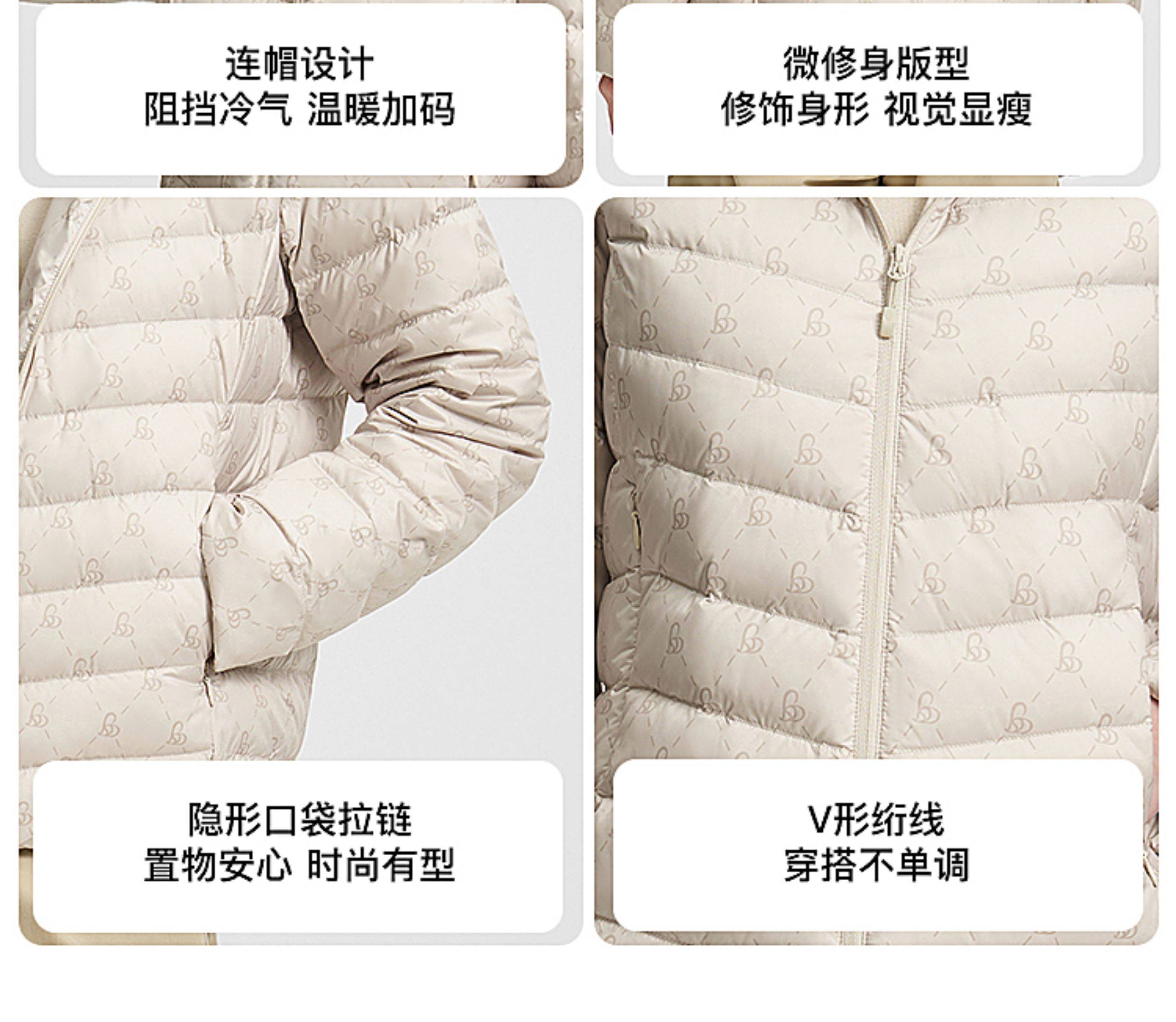 Bosideng Lightweight down Jacket for Women, Short Style with Hood, Warm, Fashionable, Versatile, Casual, Light and Warm Winter Goose down Slimming Coat