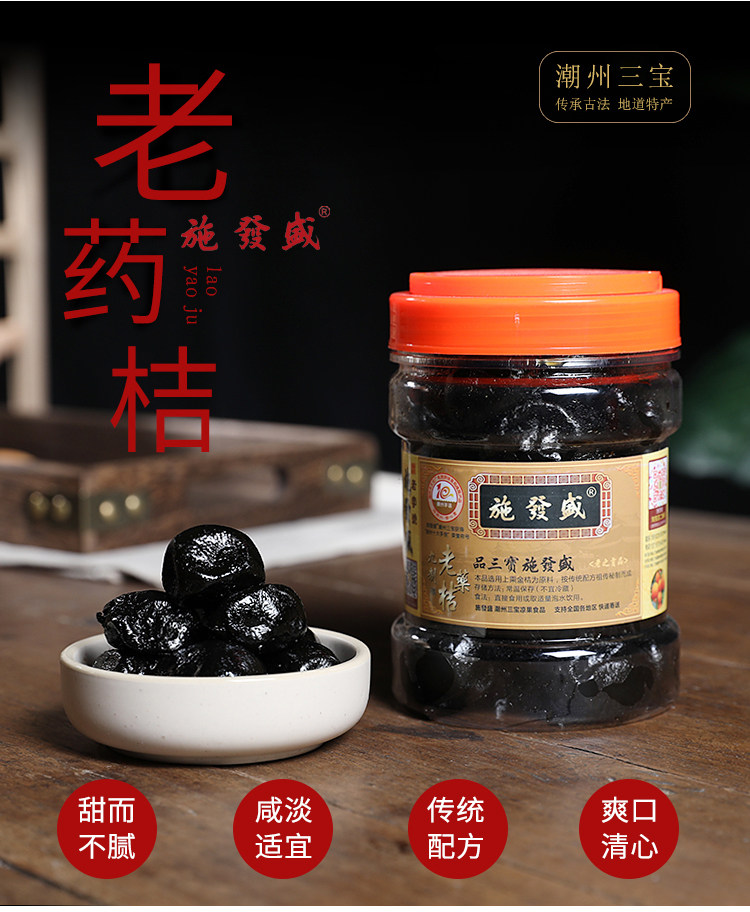 Шифа Шэн Чаочжоу, традиционное средство из медицины Китая: апельсин, замоченный в воде, соленый кумкват, маринованный в старом каменном сахаре, сушеный чай из кумквата, консервированные фрукты, Чаошаньские три сокровища 06
