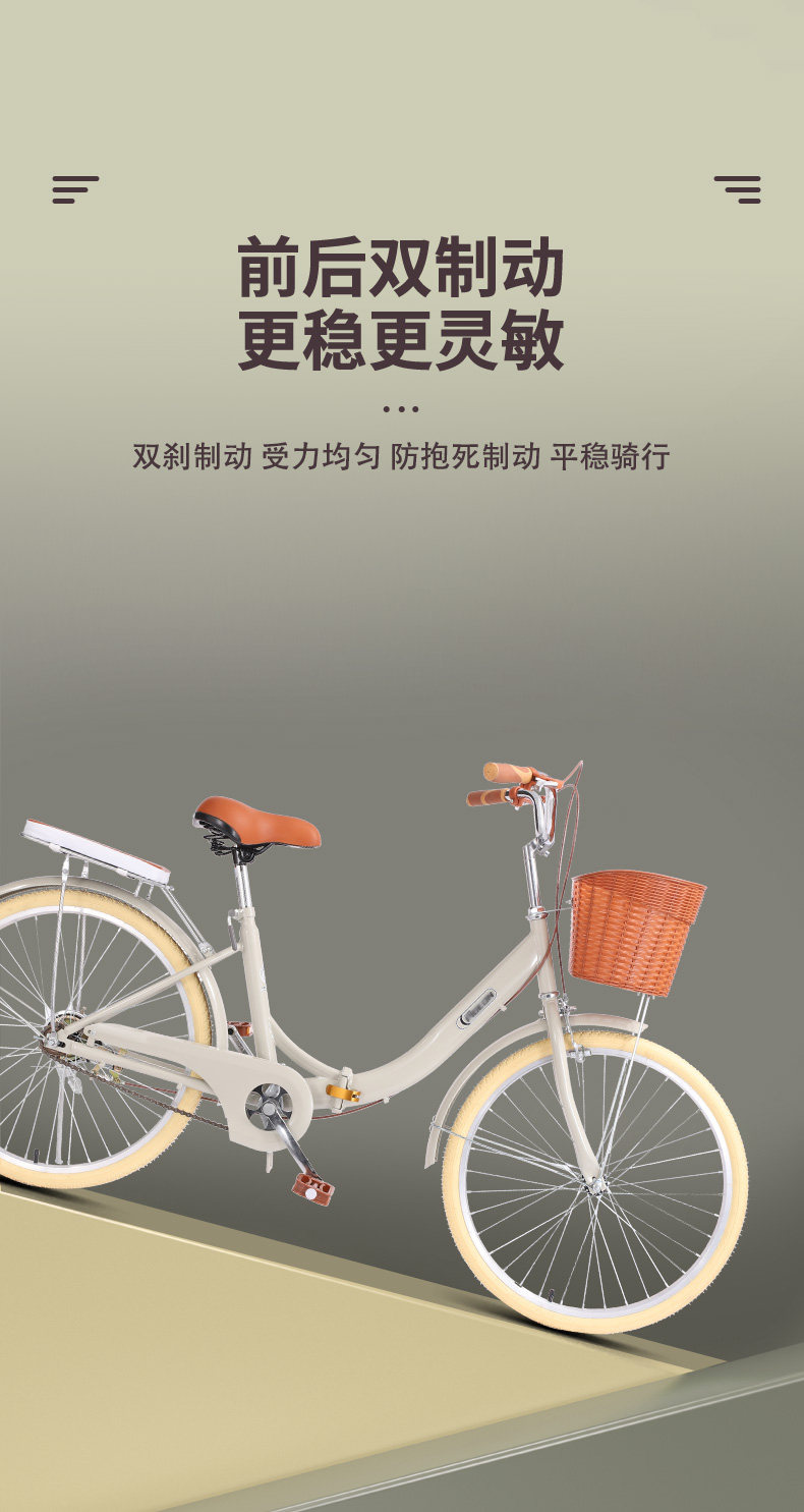 Feiyu Adult Bicycle for Male and Female Students 24/ 26inch Full Bearing No-Pump Universal Folding Bicycle for Commuting