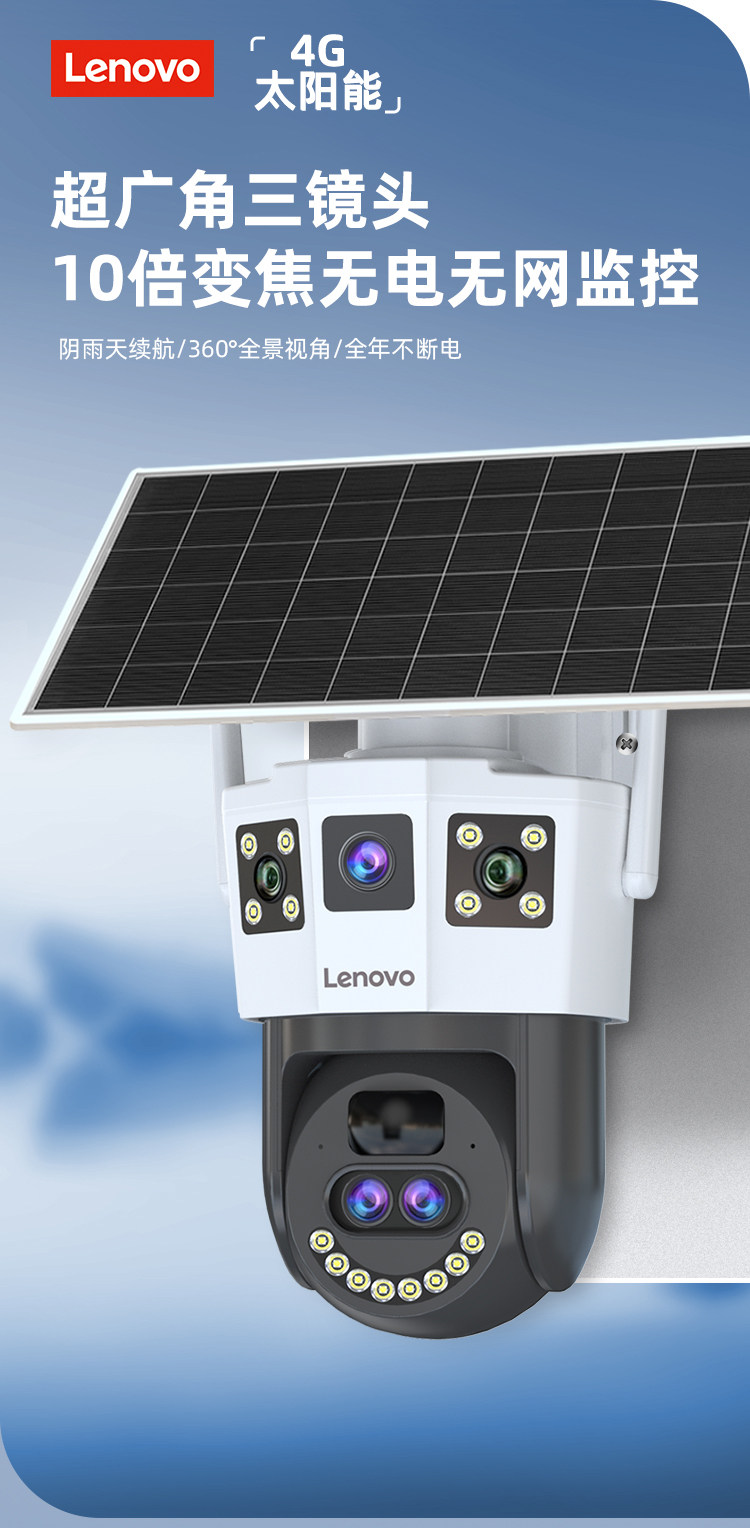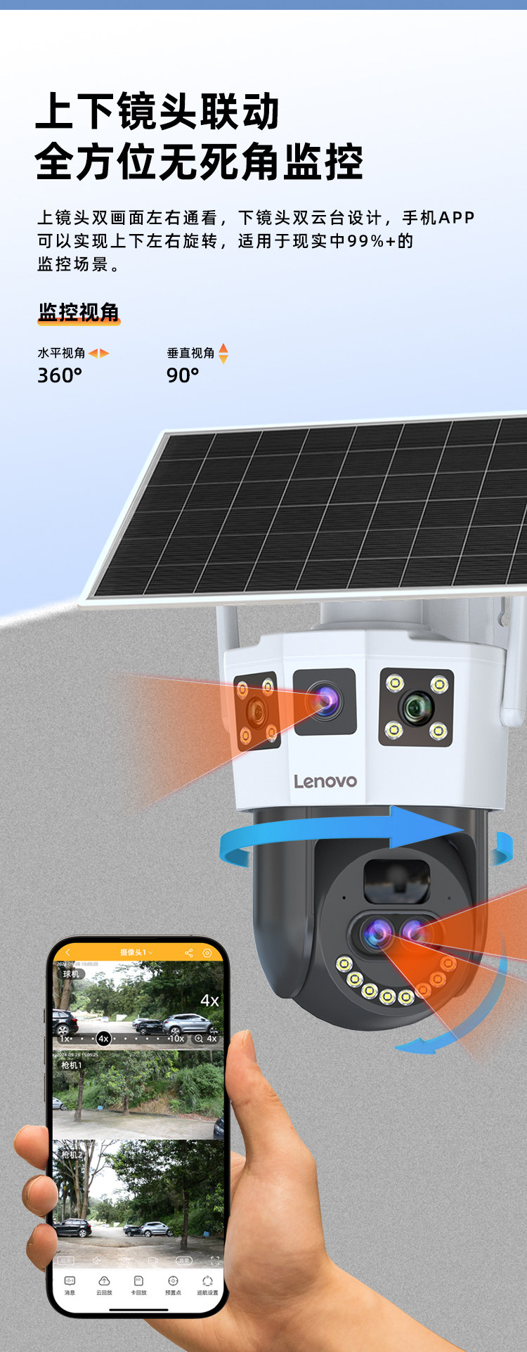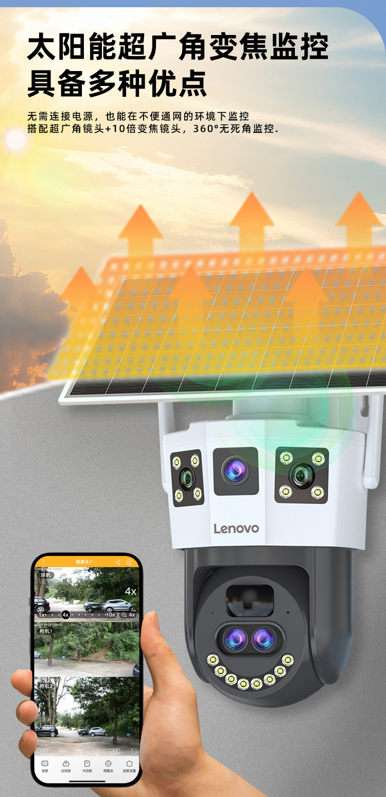 Lenovo – caméra solaire 360 degrés, sans Angle mort, sans Internet, téléphone portable, Vision nocturne extérieure à distance, moniteur 4G