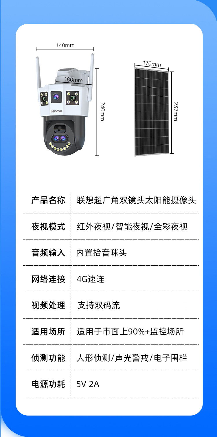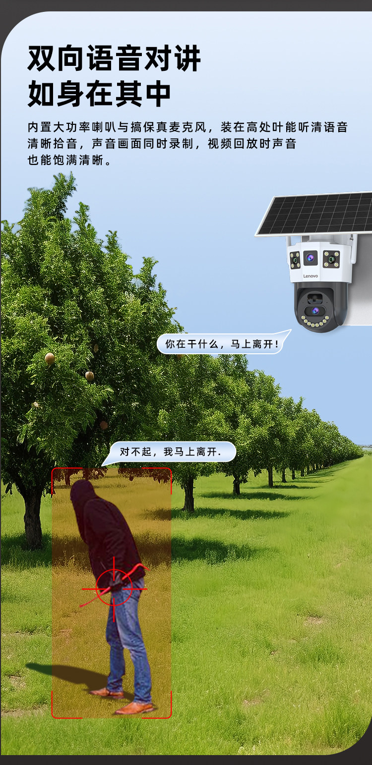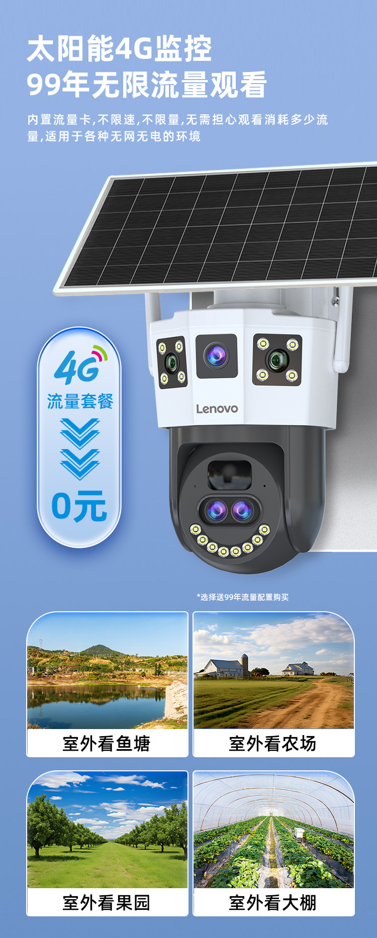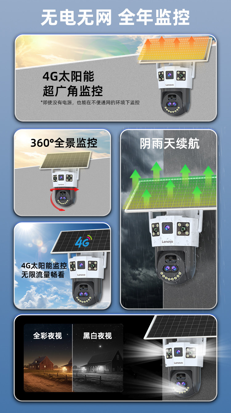 Lenovo – caméra solaire 360 degrés, sans Angle mort, sans Internet, téléphone portable, Vision nocturne extérieure à distance, moniteur 4G