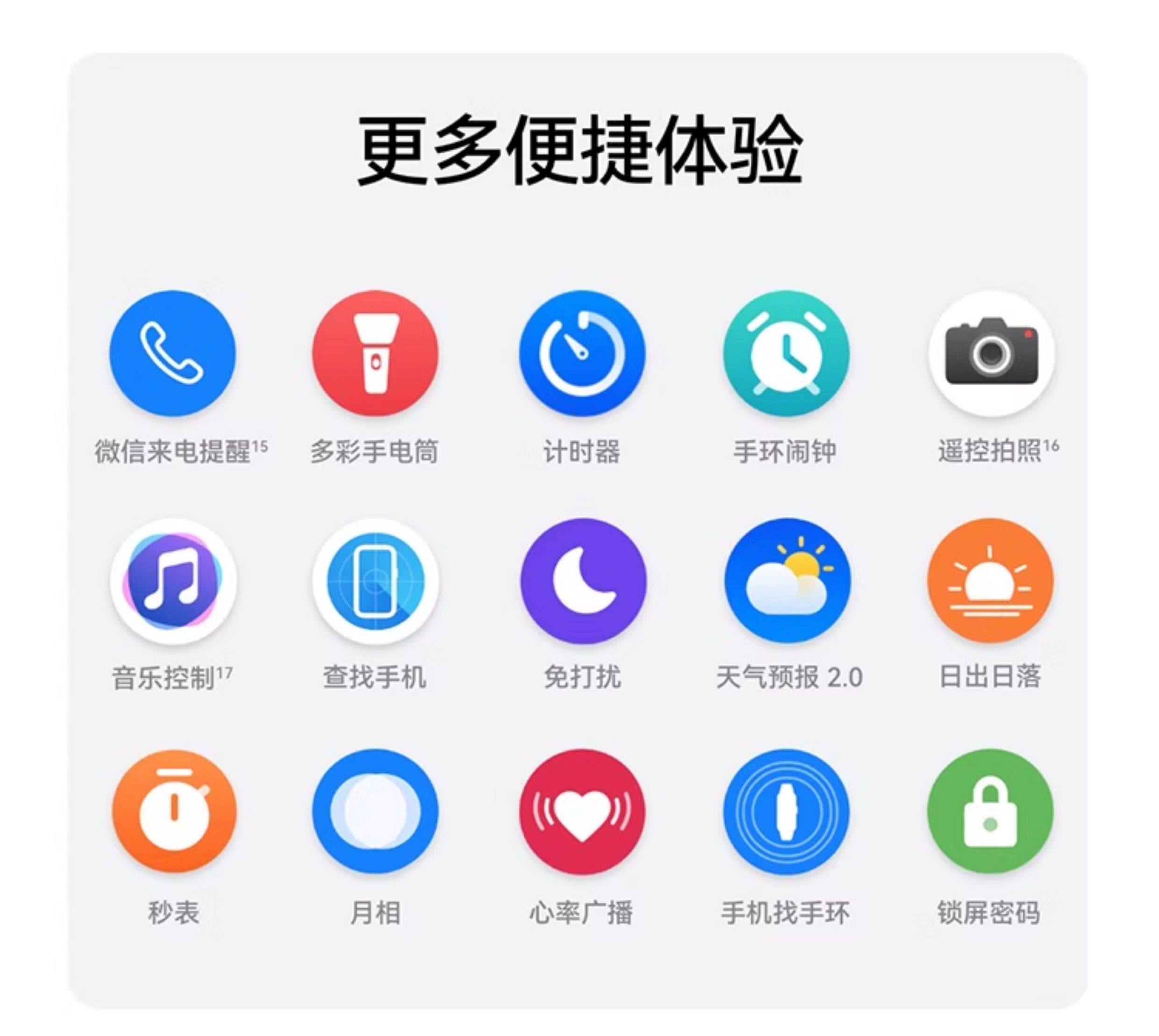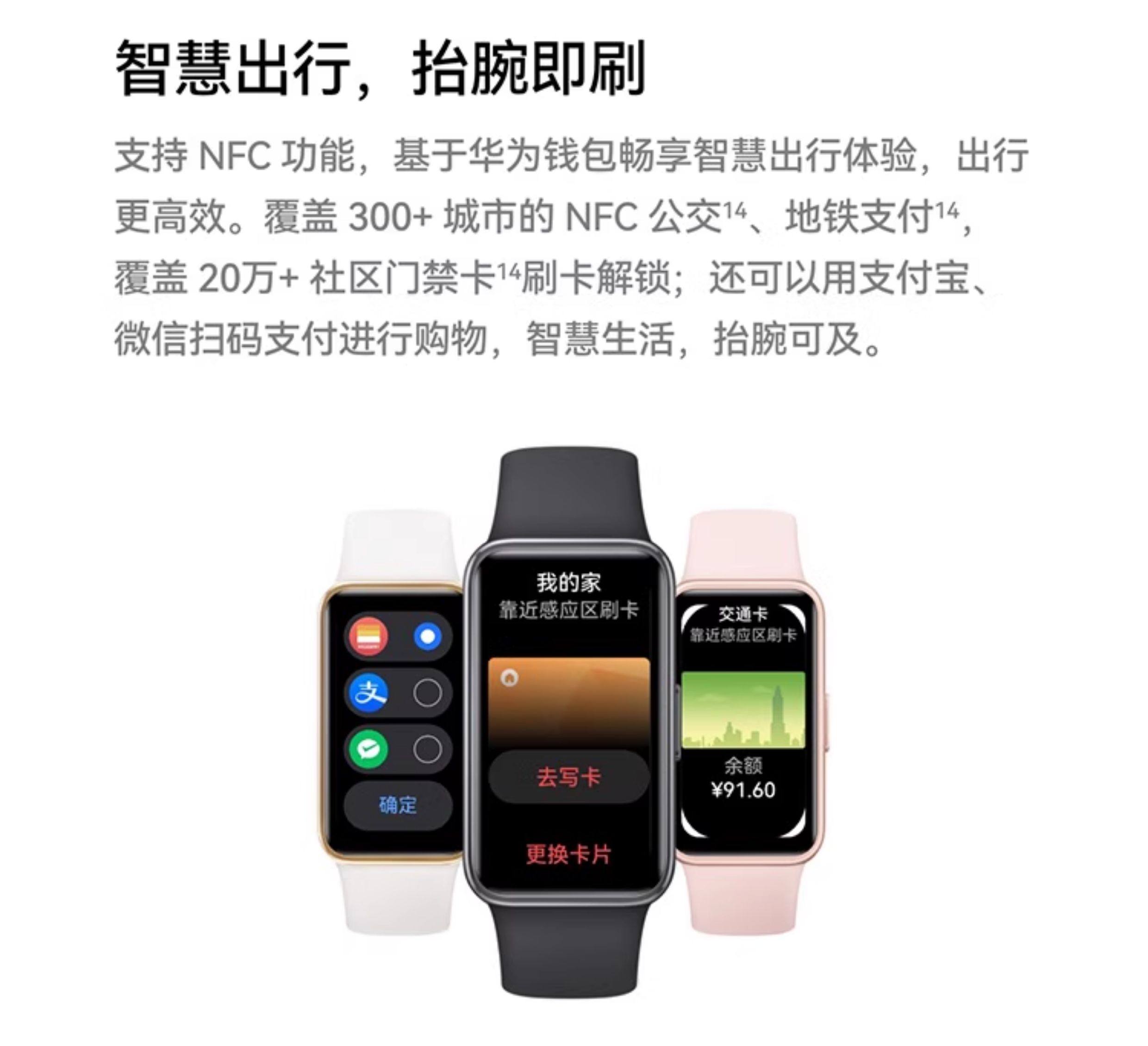 功能 运动追踪,微信支付,计步,影音娱乐,久坐提醒,社交娱乐,防水,信息推送,心率监测,血氧检测,智能提醒,睡眠监测,NFC