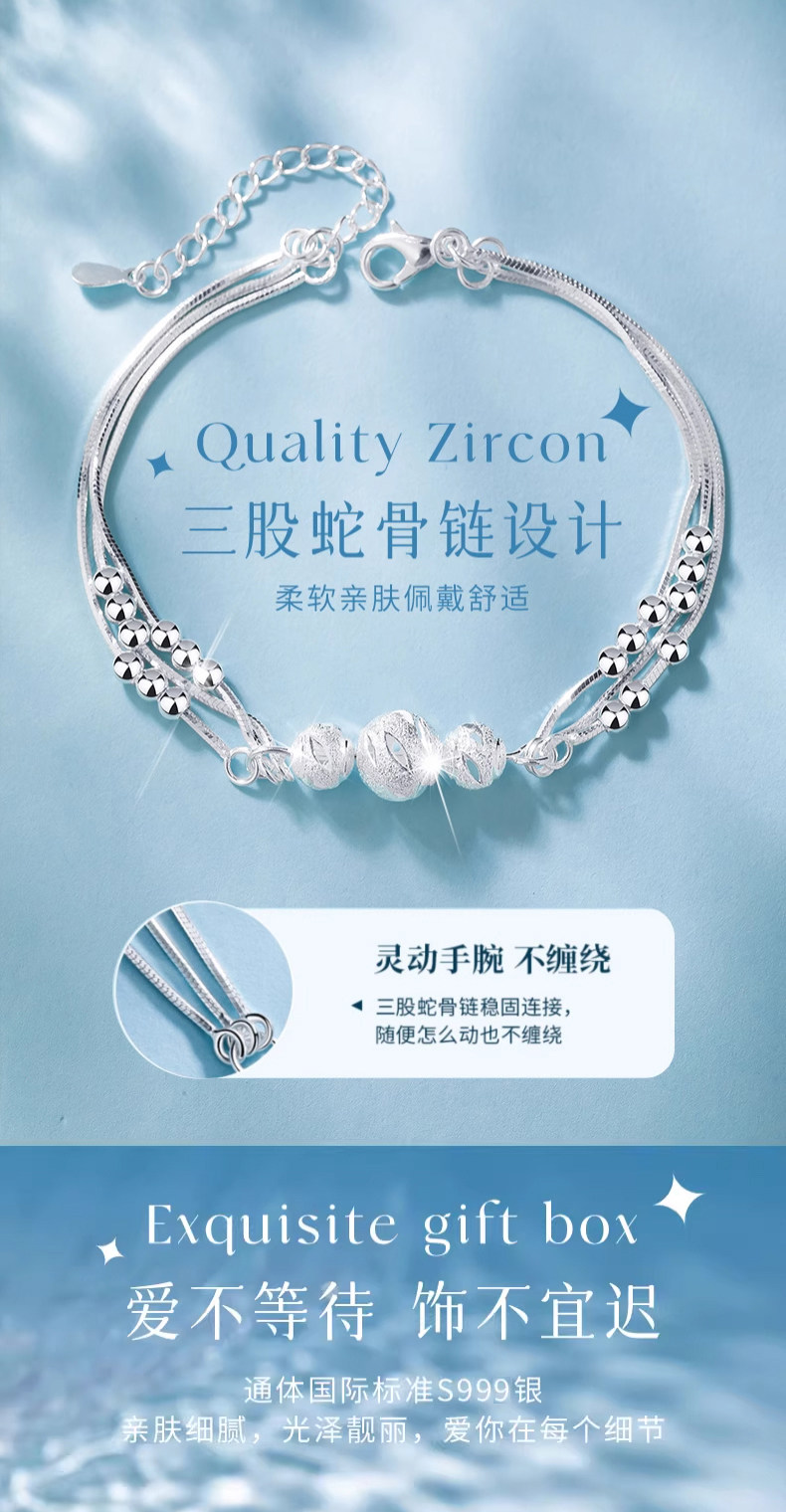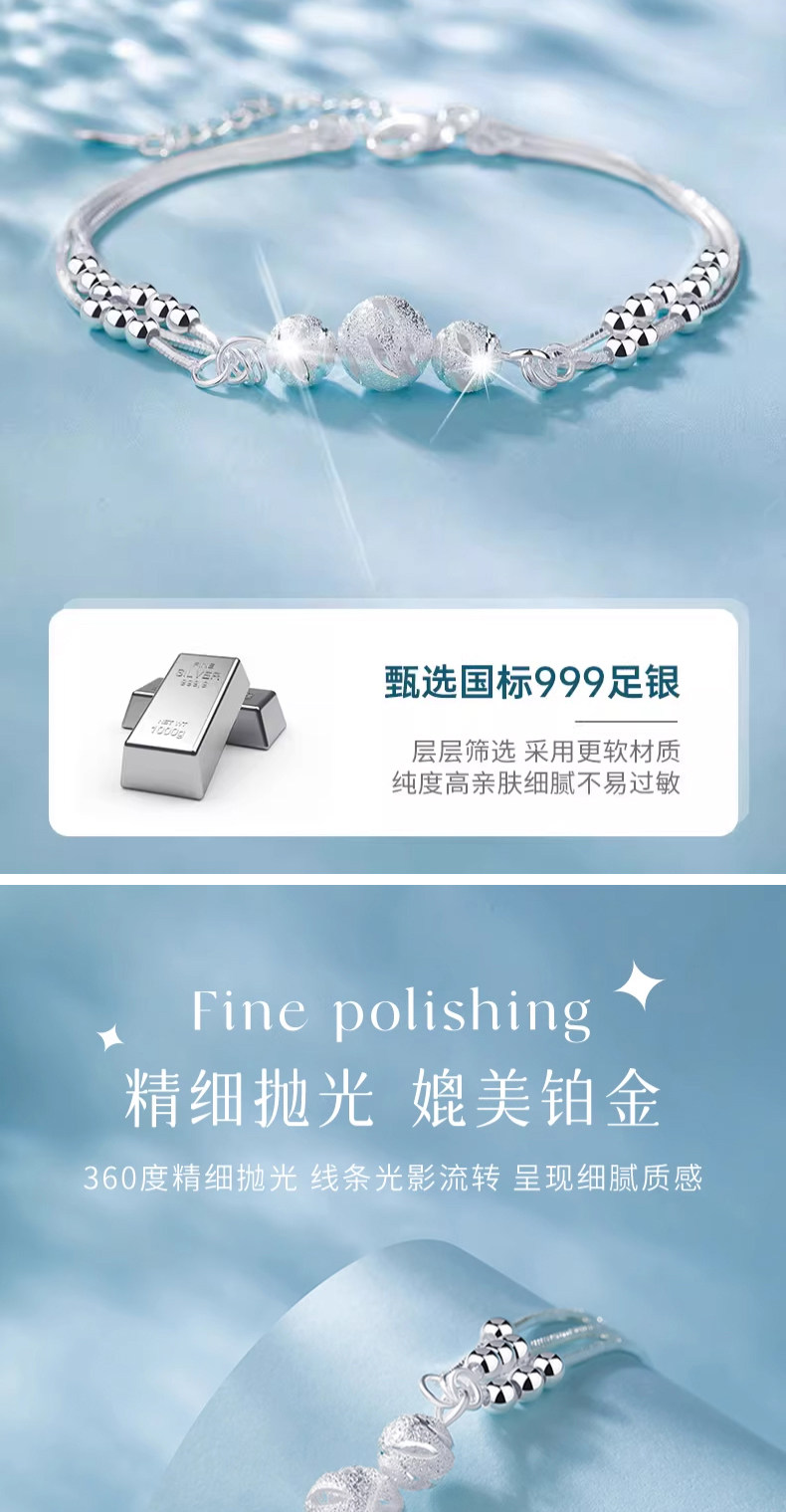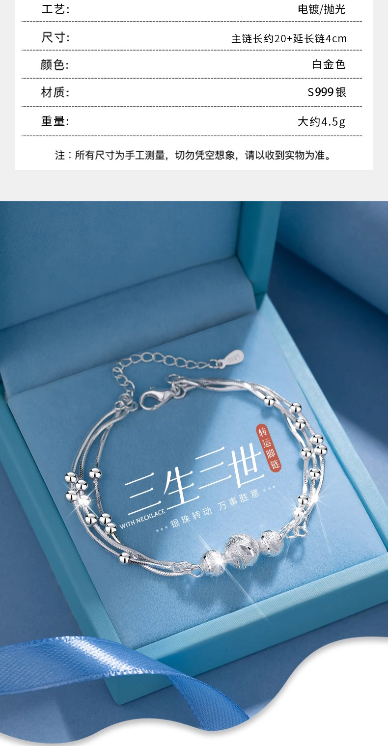 三生三世情侣纯银脚链女生足银新款转运珠女足链情人节礼物送女友