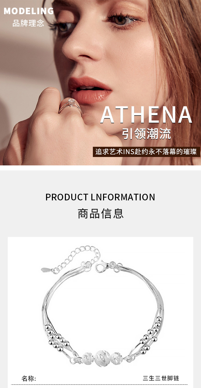 Drei Leben Drei Welten Paar Sterling Silber Fußkettchen Mädchen Fuß Silber Neue Transferperlen Damen Fußkettchen Valentinstag Geschenk für Freundin