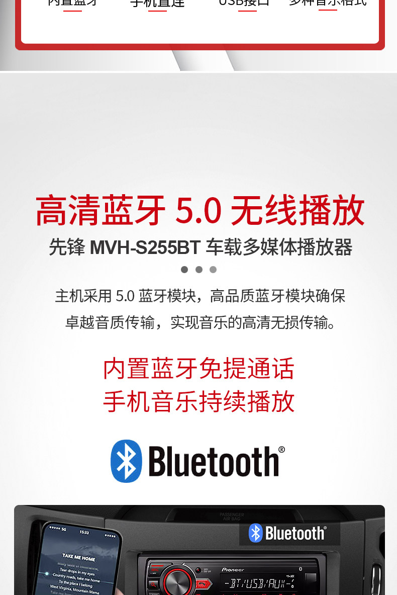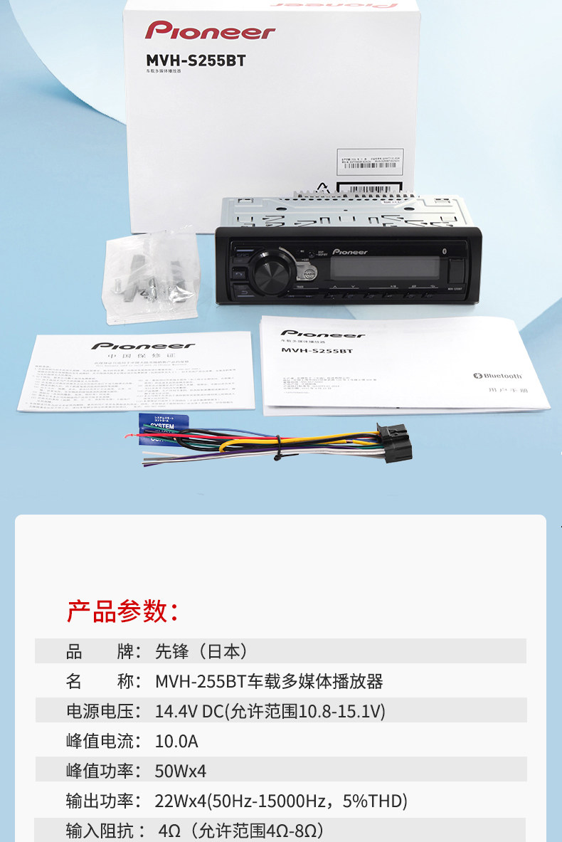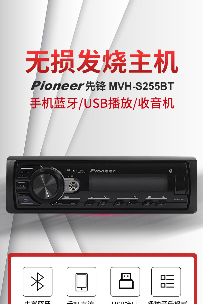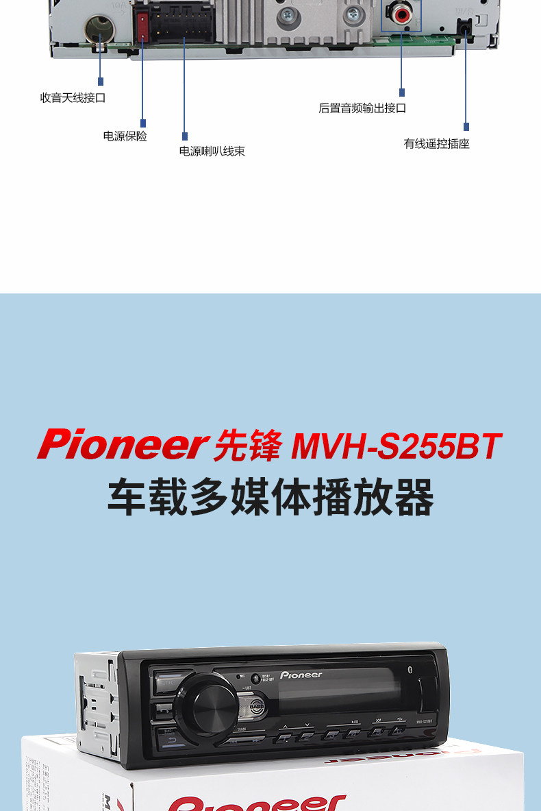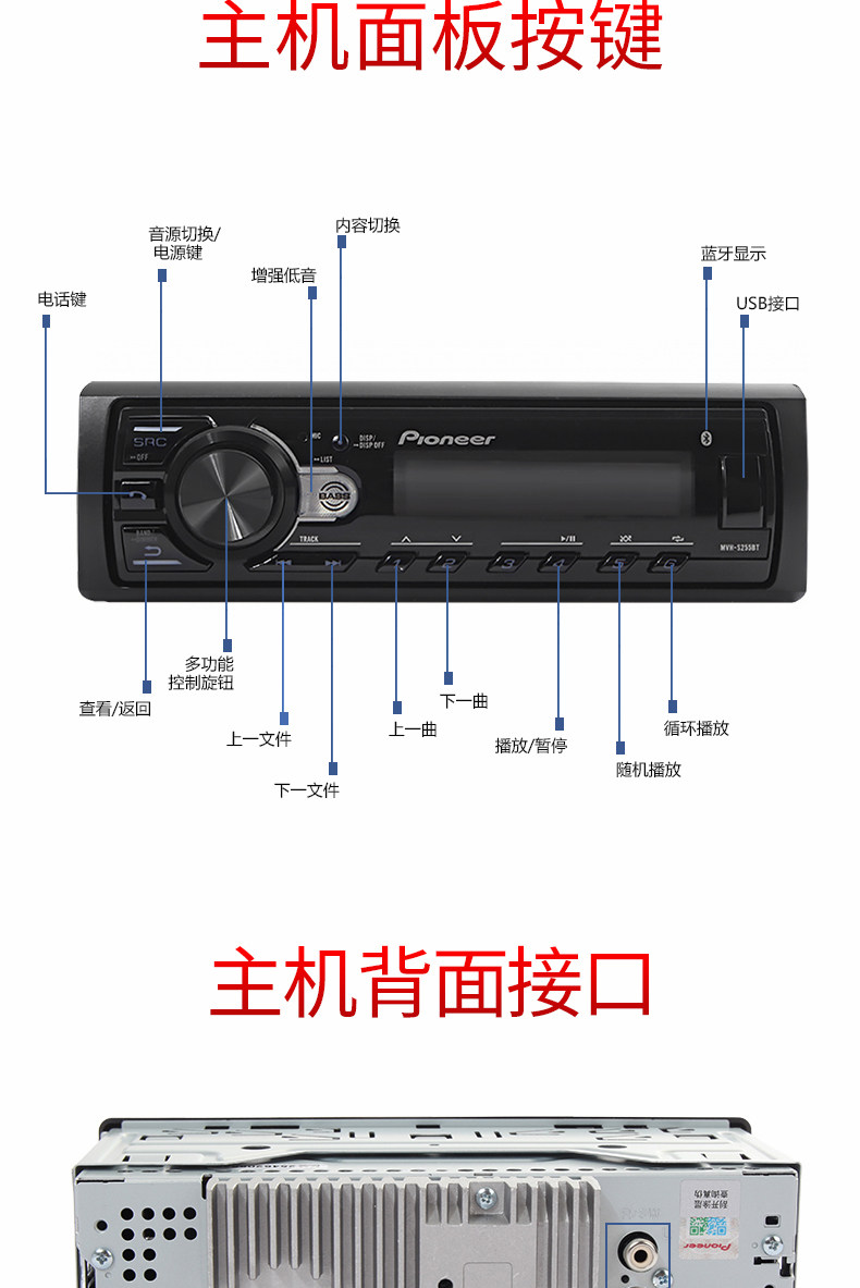 Pioneer先锋MVH-245BT汽车音响车载CD机WAV无损音乐USB蓝牙主机