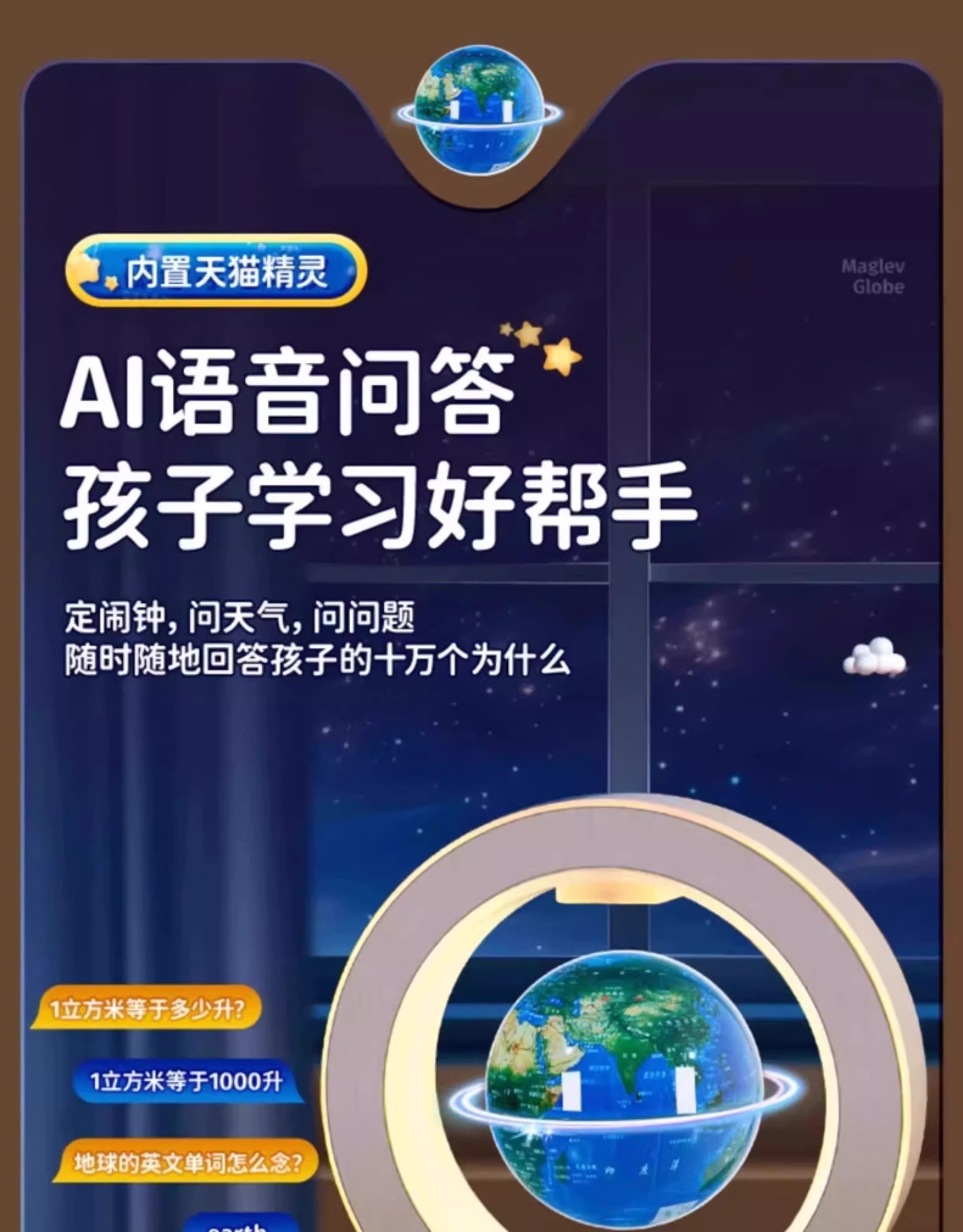 Children's Birthday Gift Tmall Genie Deepseek Magnetic Levitation Globe 3D Stereo Graduation Gift for Boys and Girls