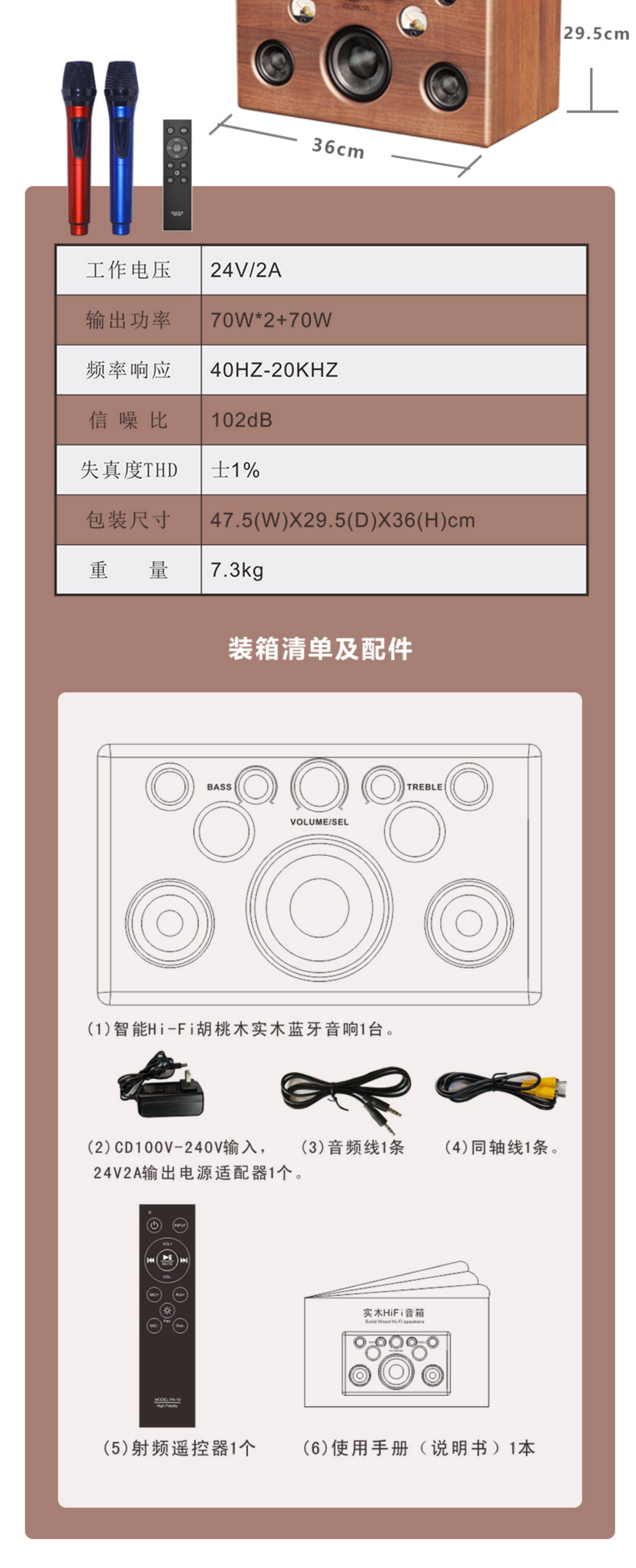 颜色分类 实木5喇叭蓝牙低音炮,花梨木升级版5喇叭