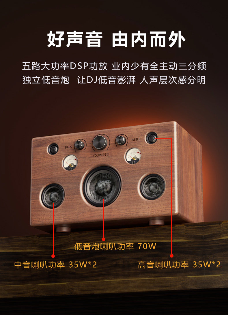 柏林之声实木发烧级HIFI蓝牙音箱家用客厅手机U盘高音质重低音炮