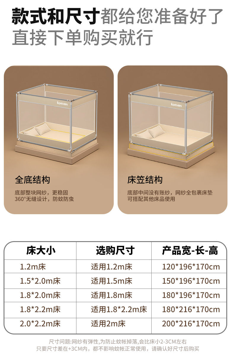适用床尺寸 【适用120*200cm单人床】A类抗菌·防蚊又防摔,【适用150*200cm双人床】A类抗菌·防蚊又防摔,【适用180*200cm双人床】A类抗菌·防蚊又防摔,【适用200*220cm双人大床】A类抗菌·防蚊又防摔,【带防尘顶】【适用120*200cm单人床】遮光防尘·A类抗菌·防蚊又防摔,【带防尘顶】【适用150*200cm双人床】遮光防尘·A类抗菌·防蚊又防摔,【带防尘顶】【适用180*200cm双人床】遮光防尘·A类抗菌·防蚊又防摔,【带防尘顶】【适用200*220cm双人大床】遮光防尘·A类抗菌·防蚊又防摔