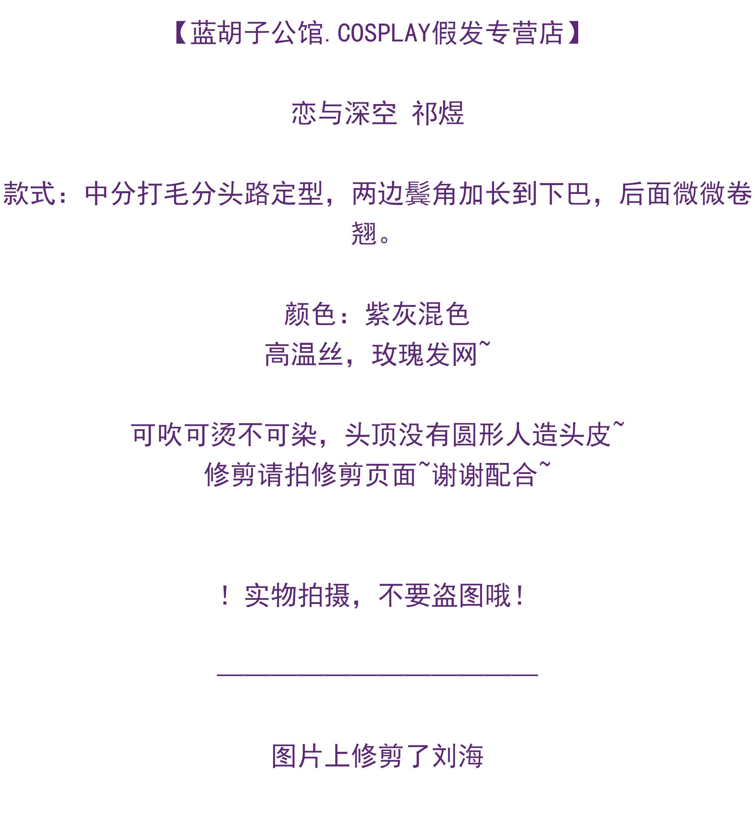 [Bluebeard] Love and Deep Space Qiyu Cos Wig Mixed Color Middle Part Hair Bun Gray-Purple