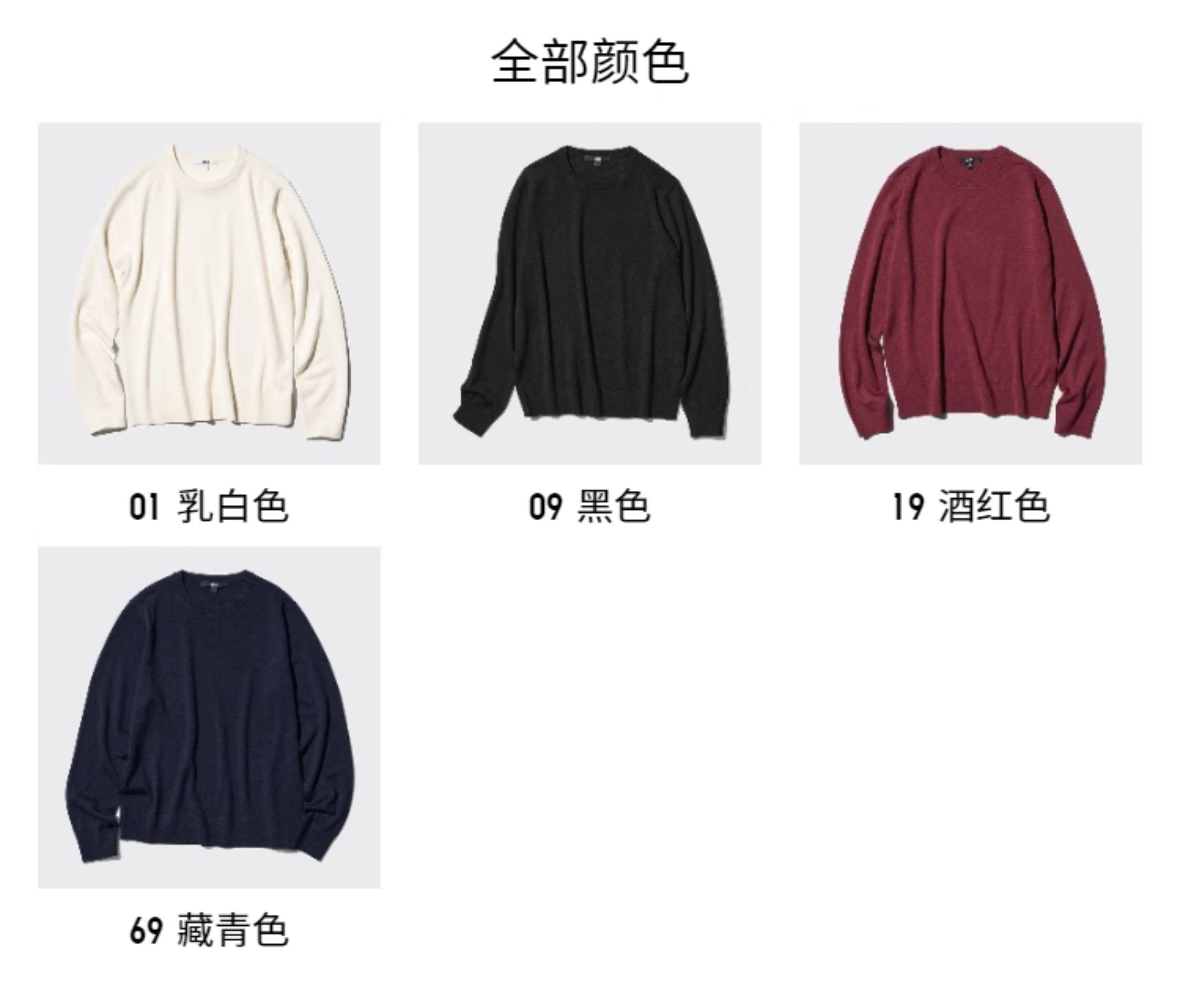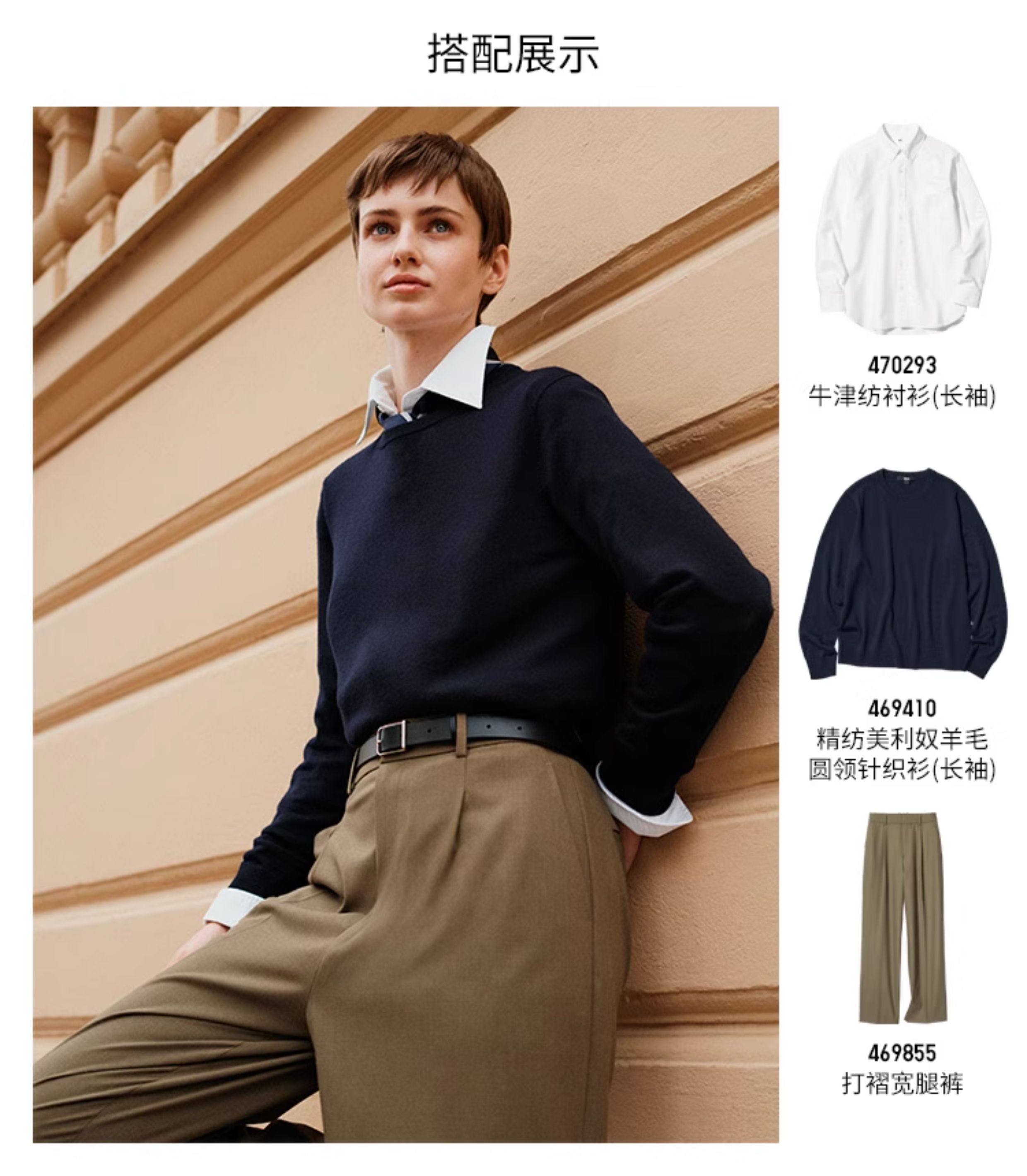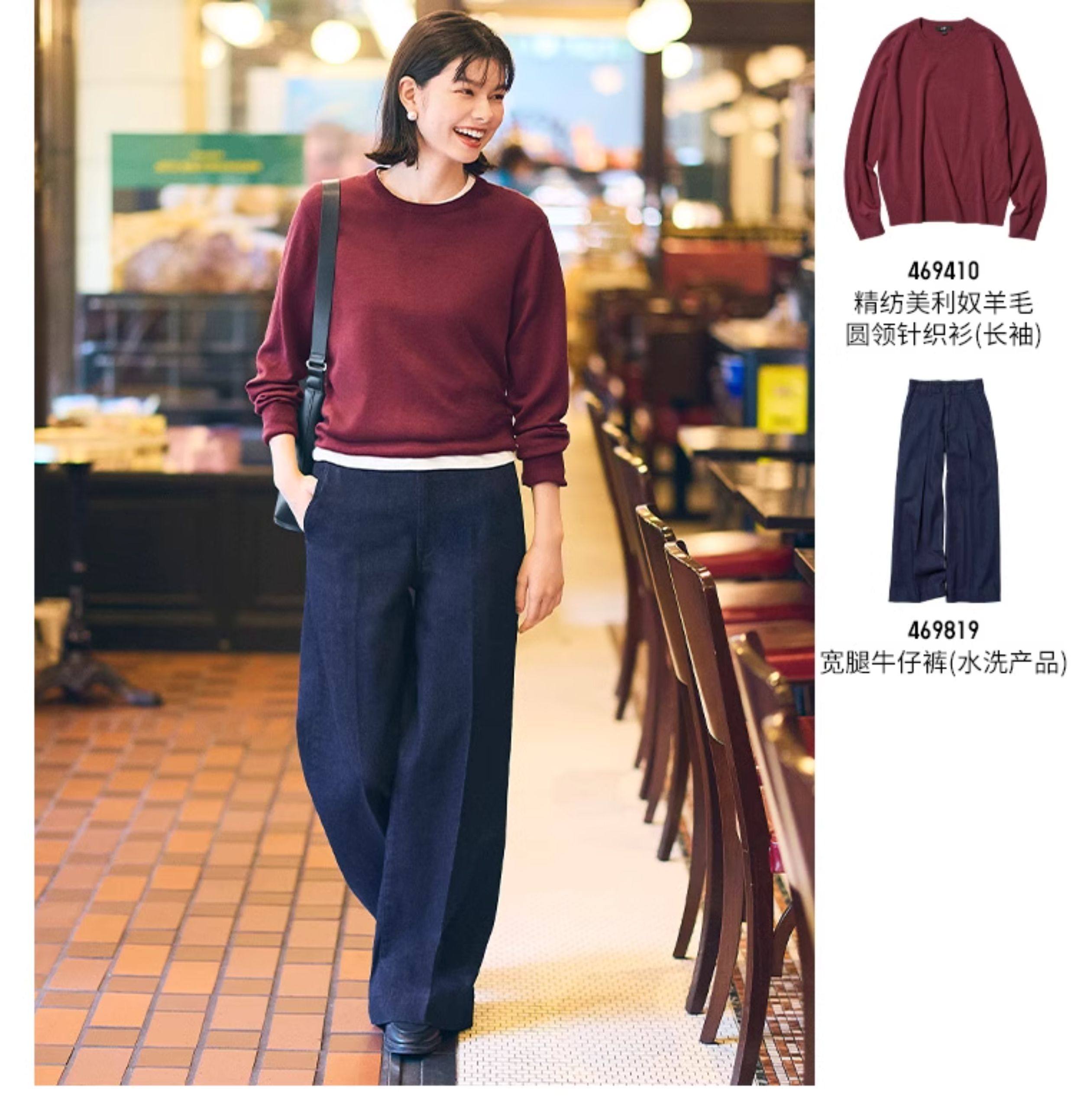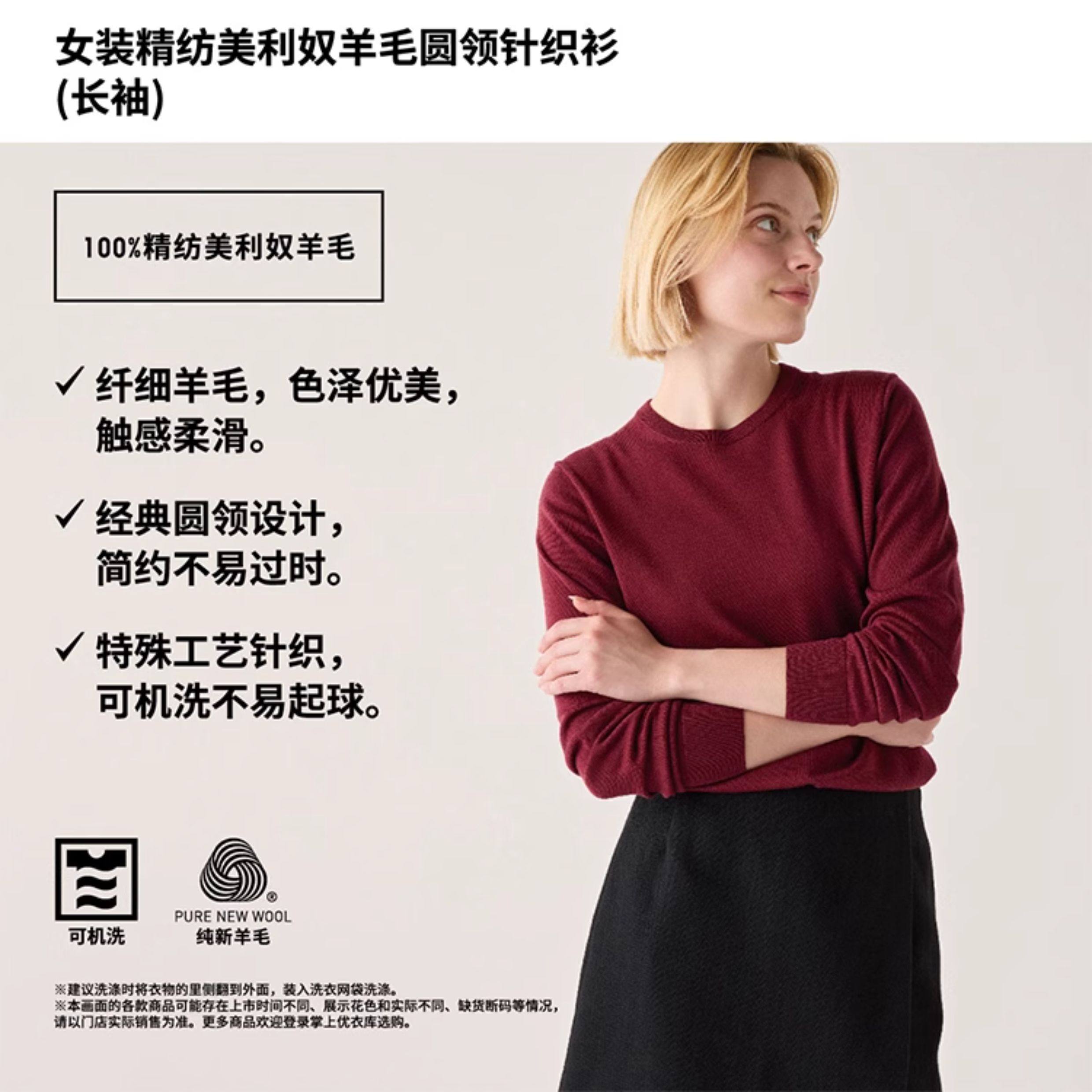 Женский камвольный свитер Uniqlo с круглым вырезом и длинными рукавами из мериносовой шерсти 469410